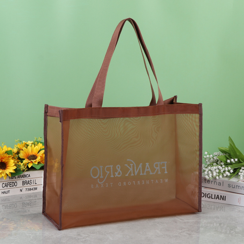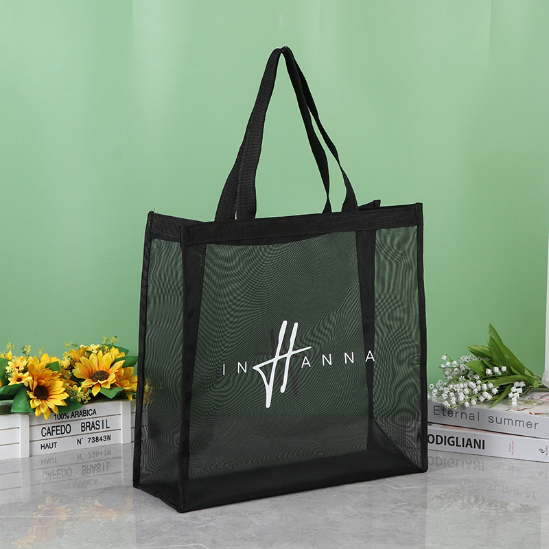 厂家新款个性创意半透明网布袋沙滩网布包装袋尼龙网纱购物手提袋