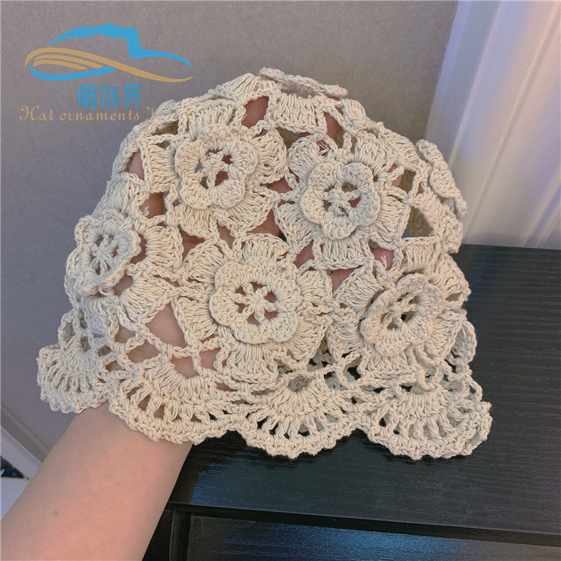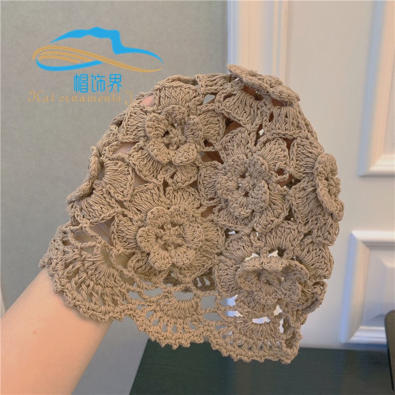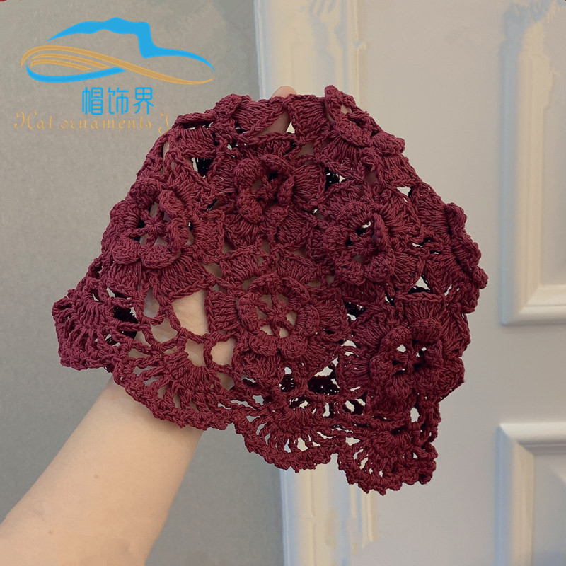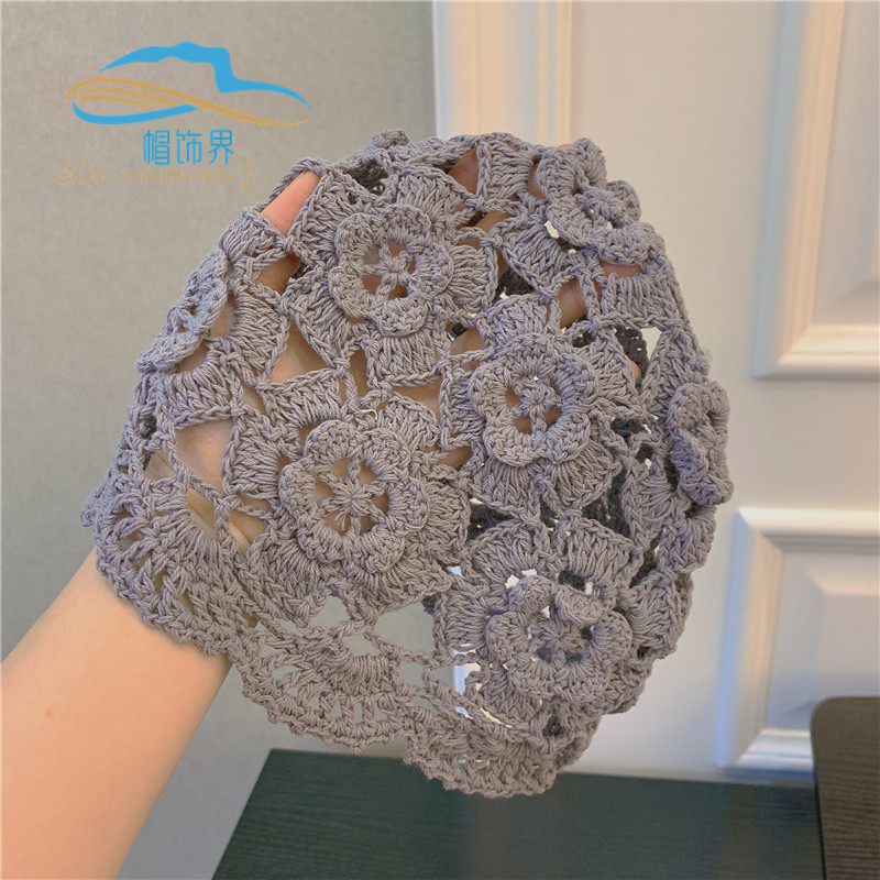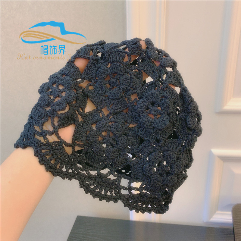 日韩手工编织棉线头套镂空春秋款发带透气针织女头巾包头发饰品