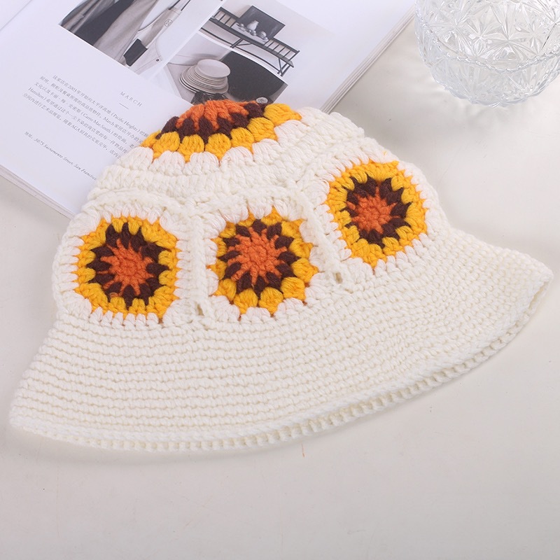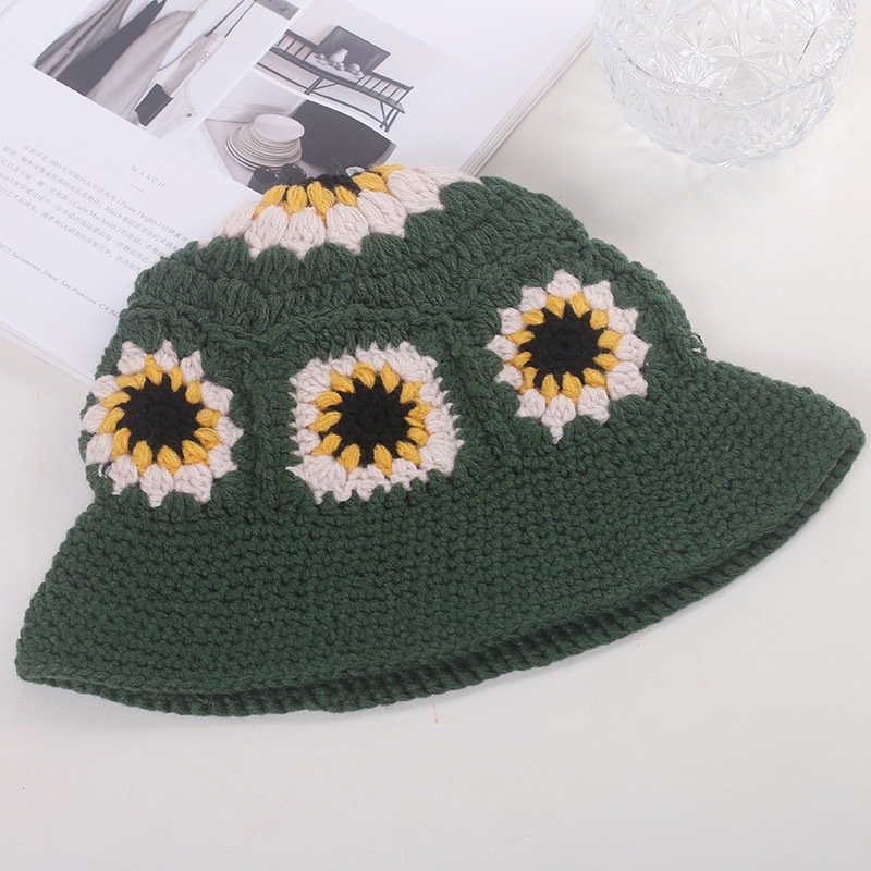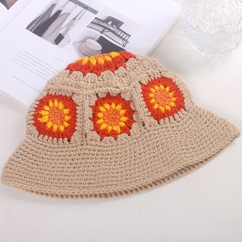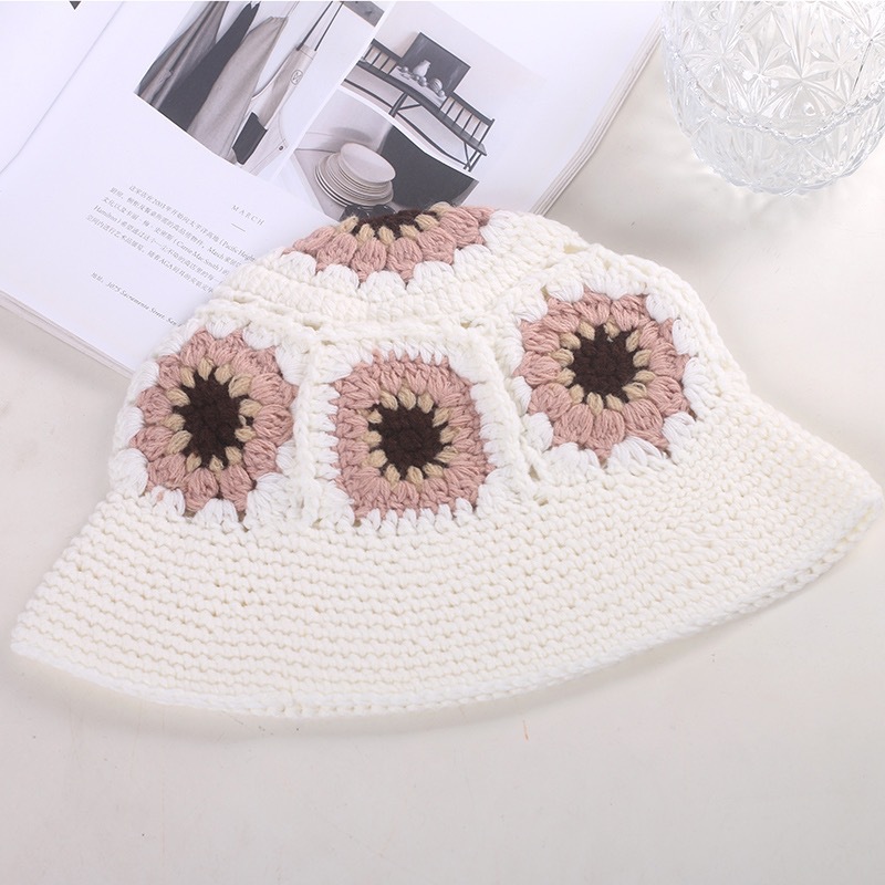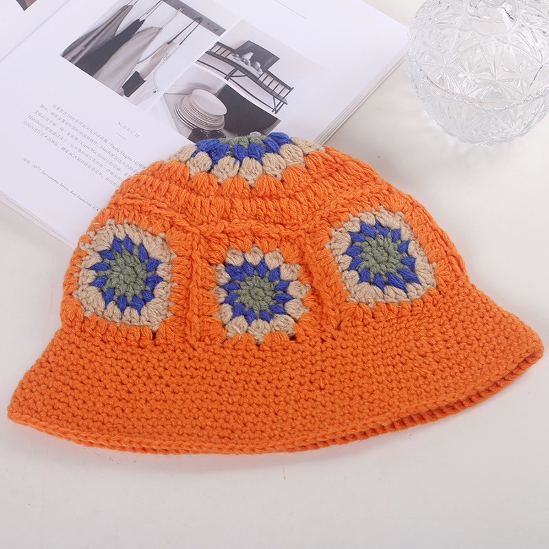 现货日系手工钩花帽子女秋冬保暖镂空针织毛线帽显脸小网红渔夫帽
