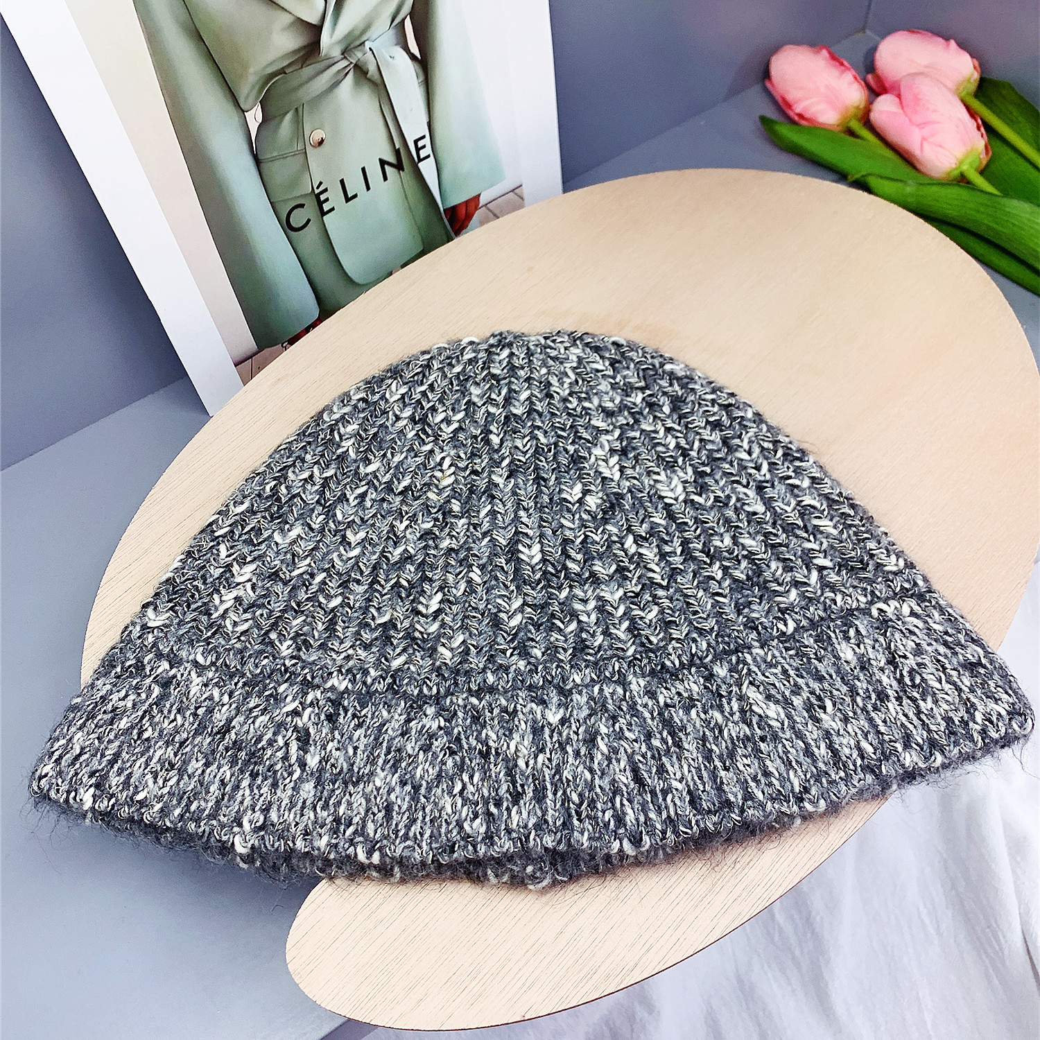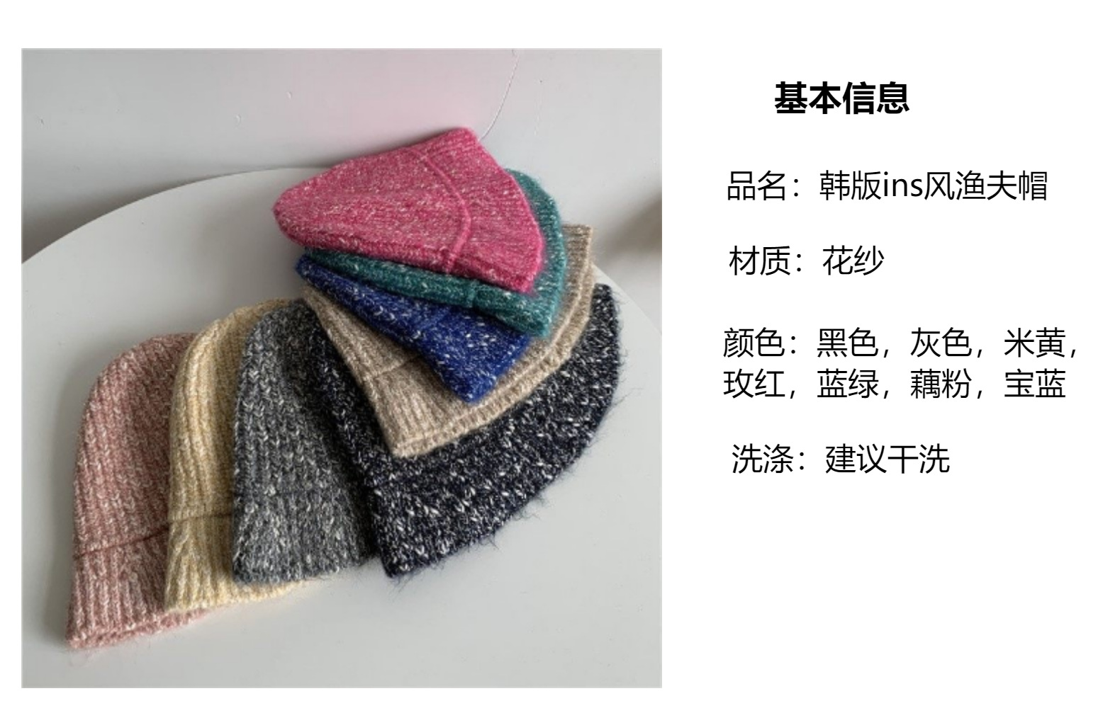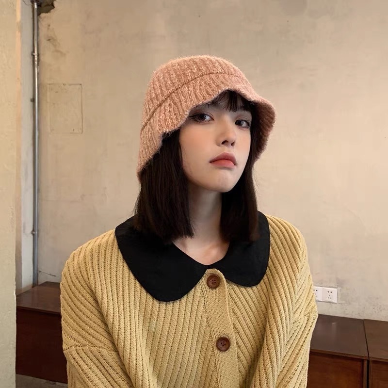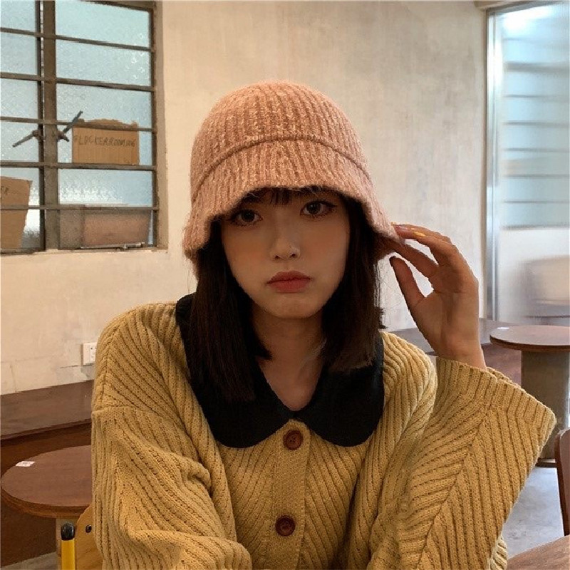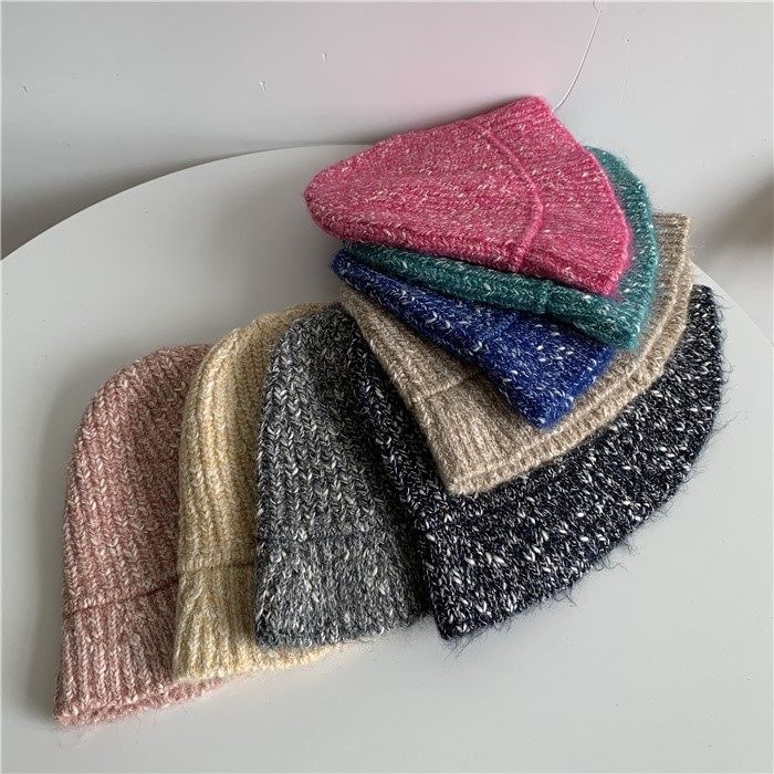韩版风混色毛线帽子女秋冬季百搭针织喷锚显脸小保暖渔夫帽女