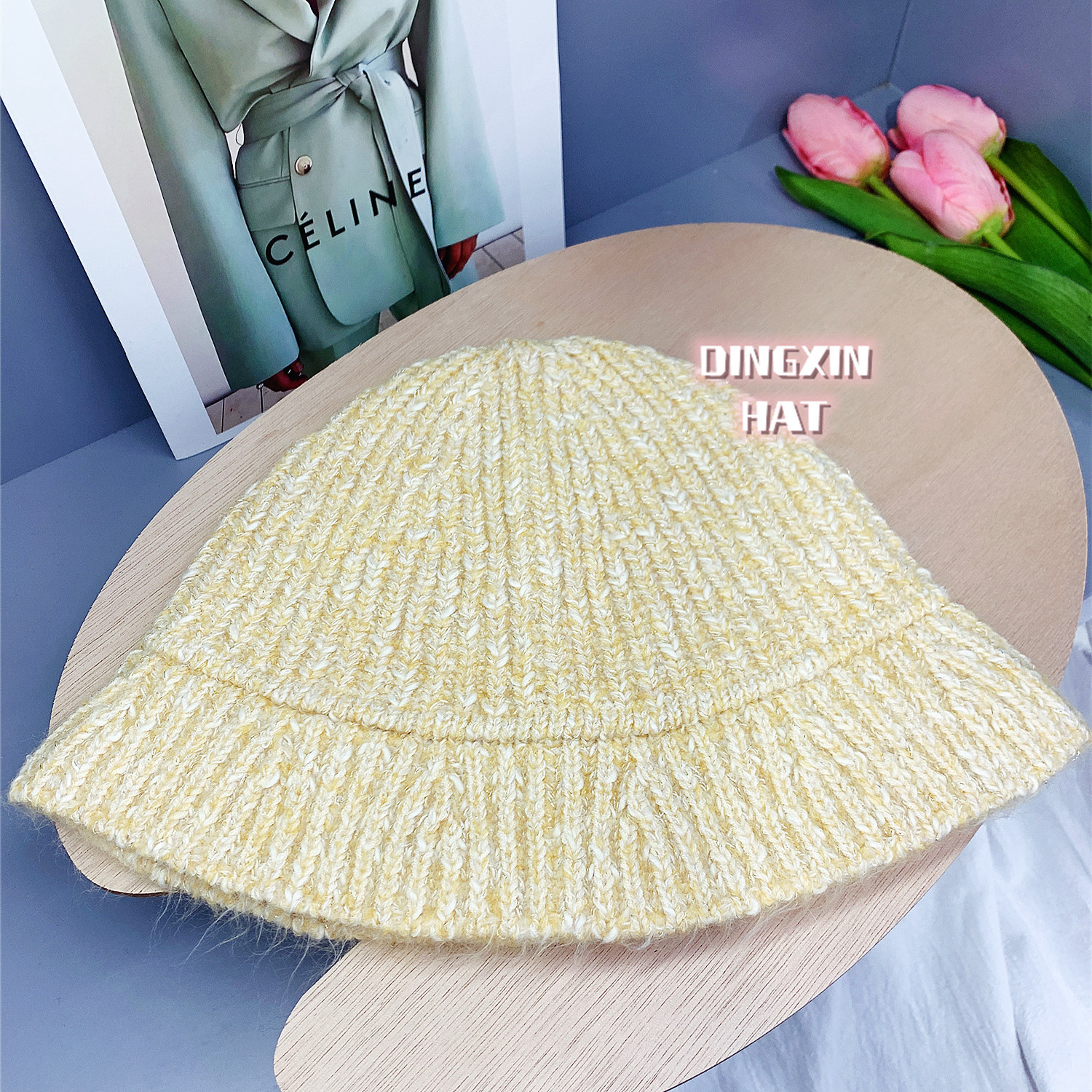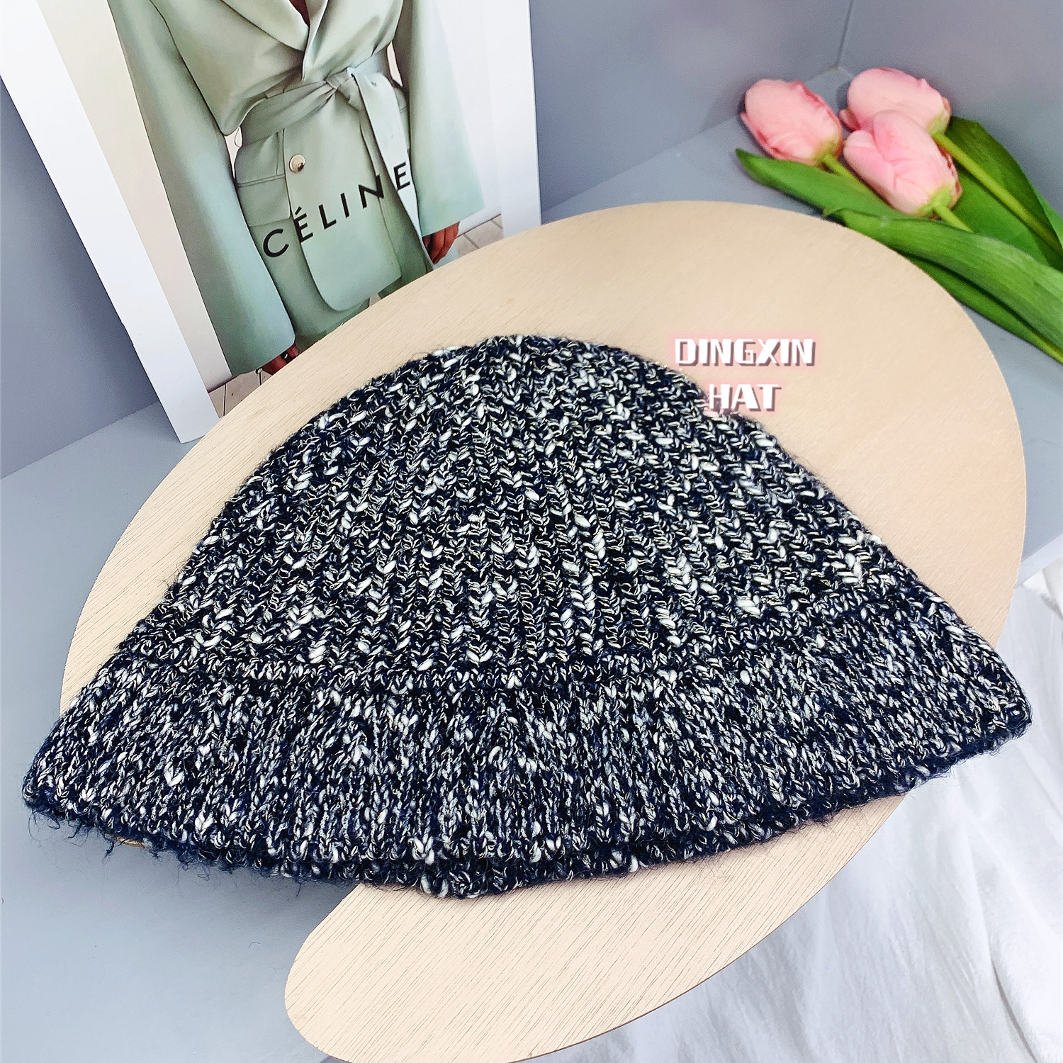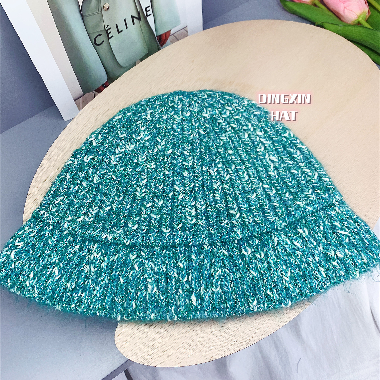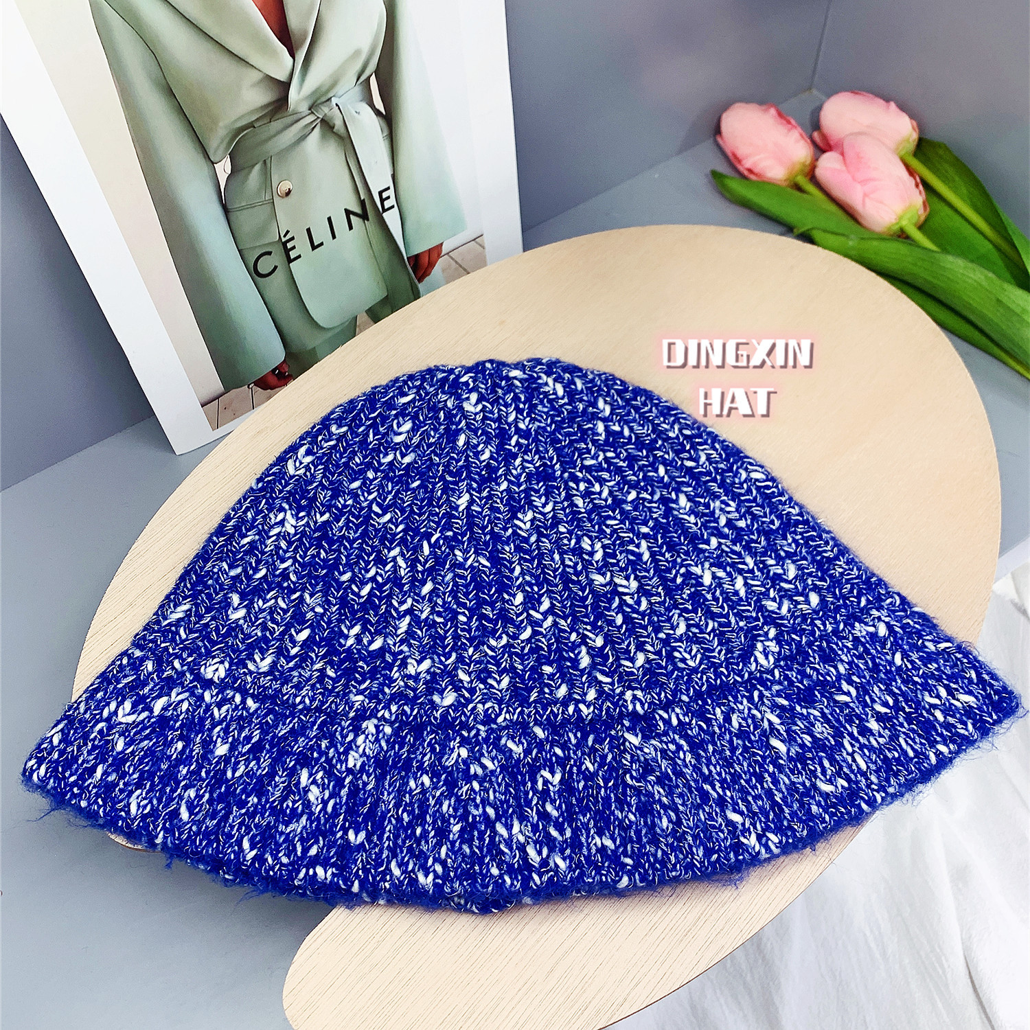 韩版风混色毛线帽子女秋冬季百搭针织喷锚显脸小保暖渔夫帽女