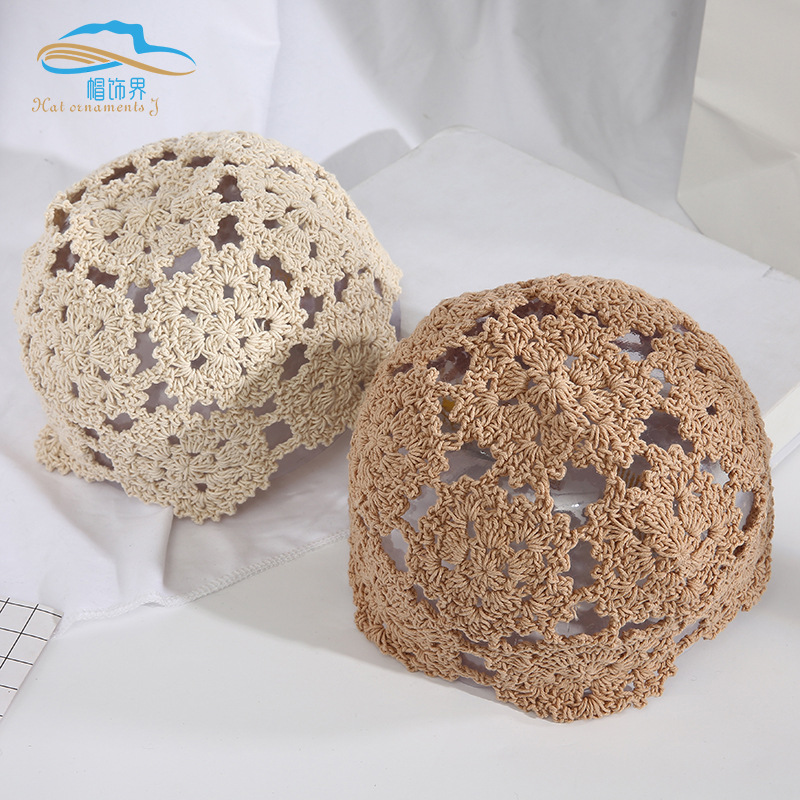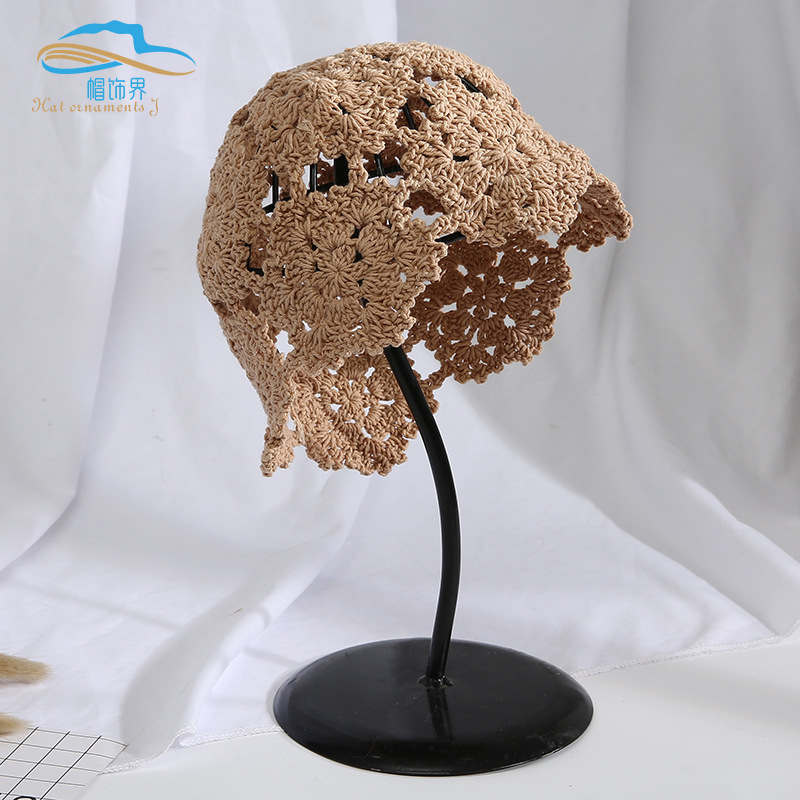 钩花帽子复古手工钩花盆帽时尚个性立体针织森女帽春夏渔夫帽子