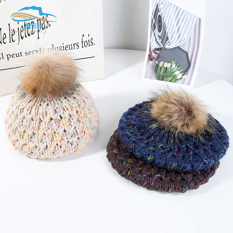 韩国秋冬新款日系保暖针织毛线贝雷帽女时尚亲子蓓蕾帽画家帽