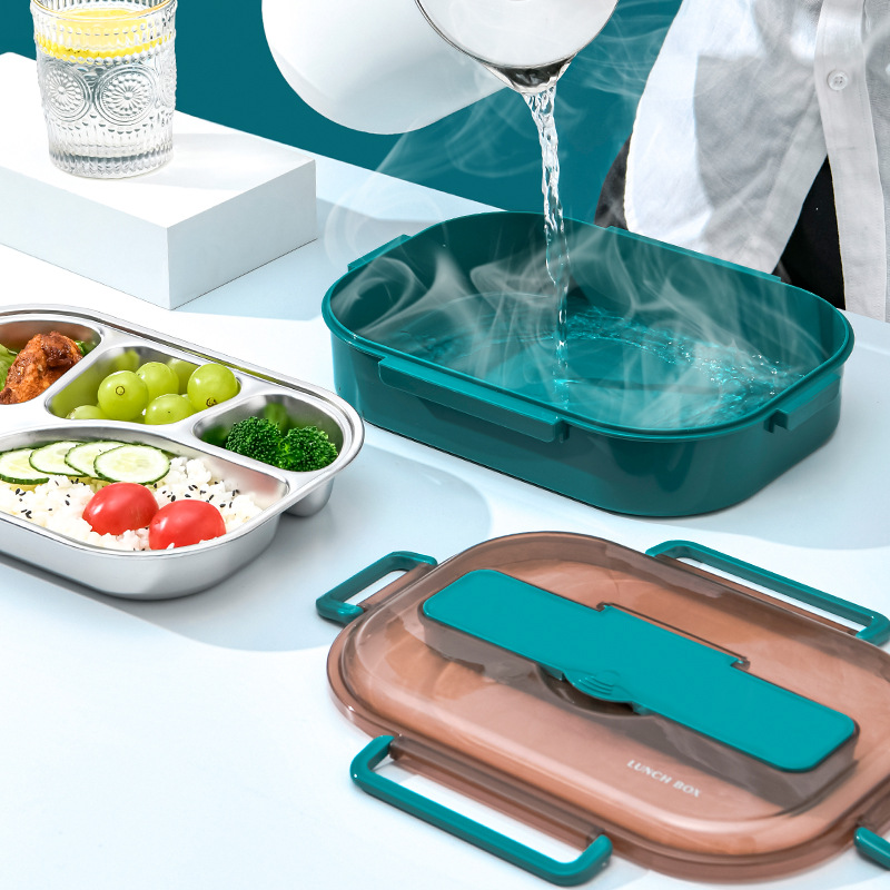 双层加热饭盒 注水加热保温饭盒学生午餐盒保温套装健康pp材质
