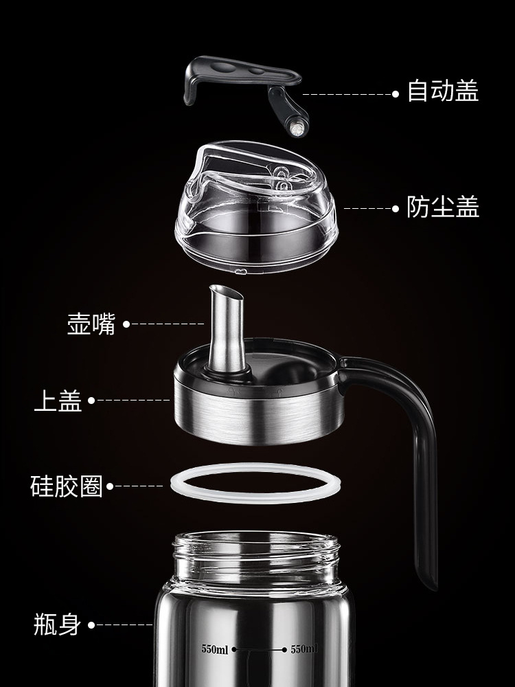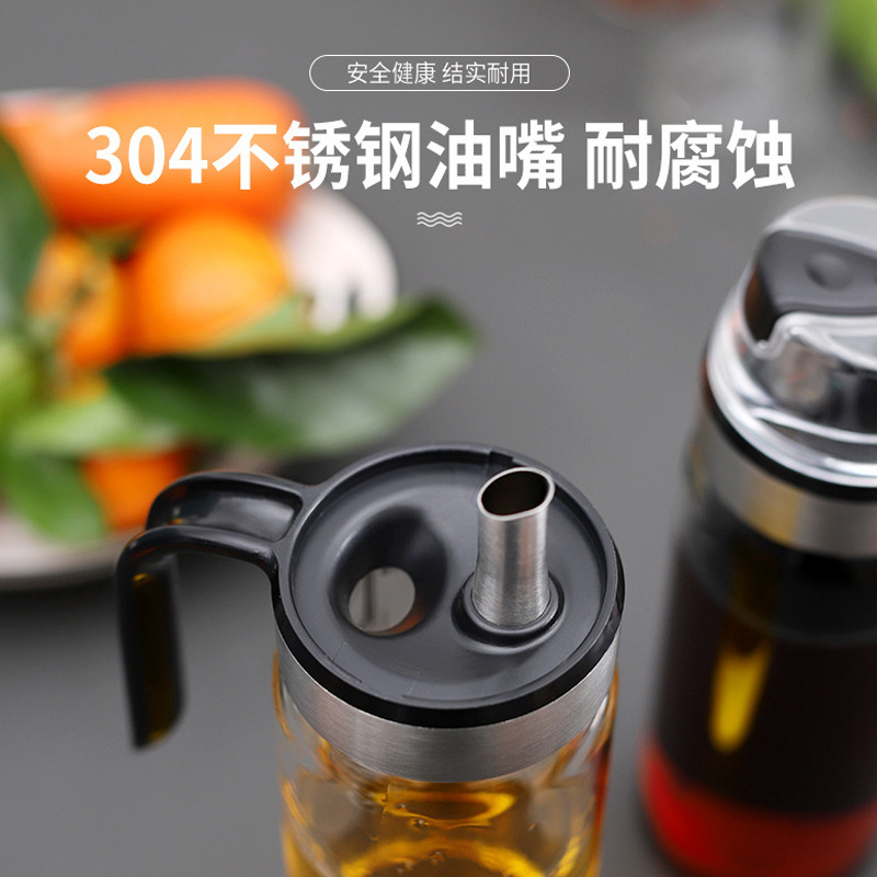 家用自开合油壶 大容量玻璃油壶 厨房防漏计量油壶耐热玻璃酱油瓶