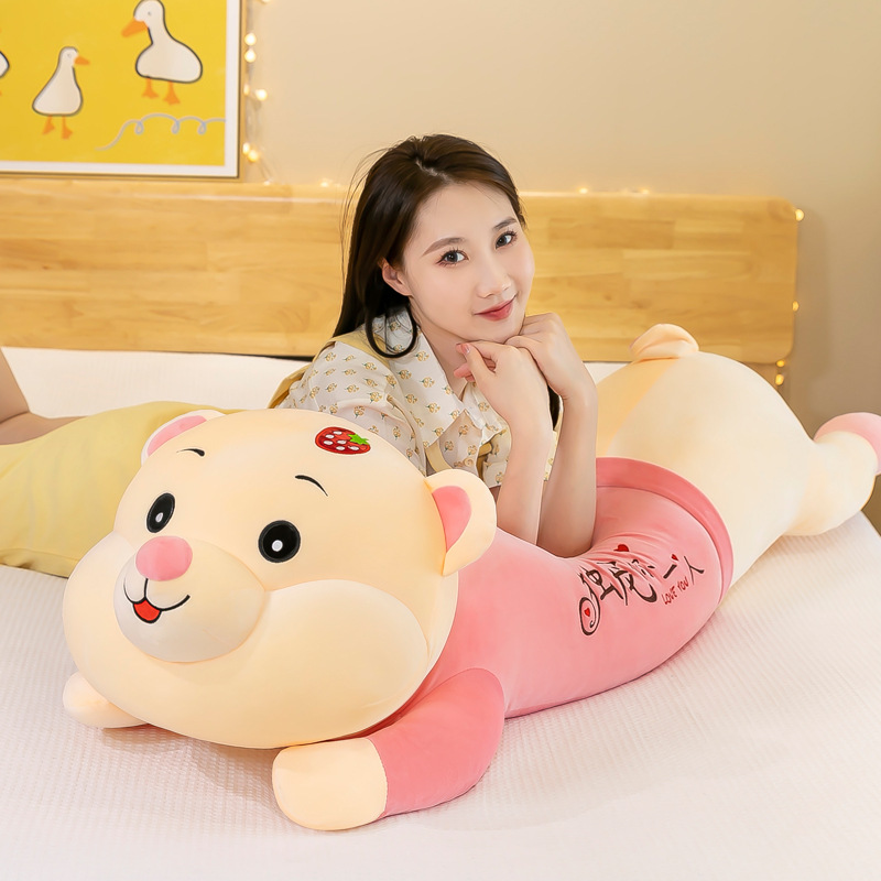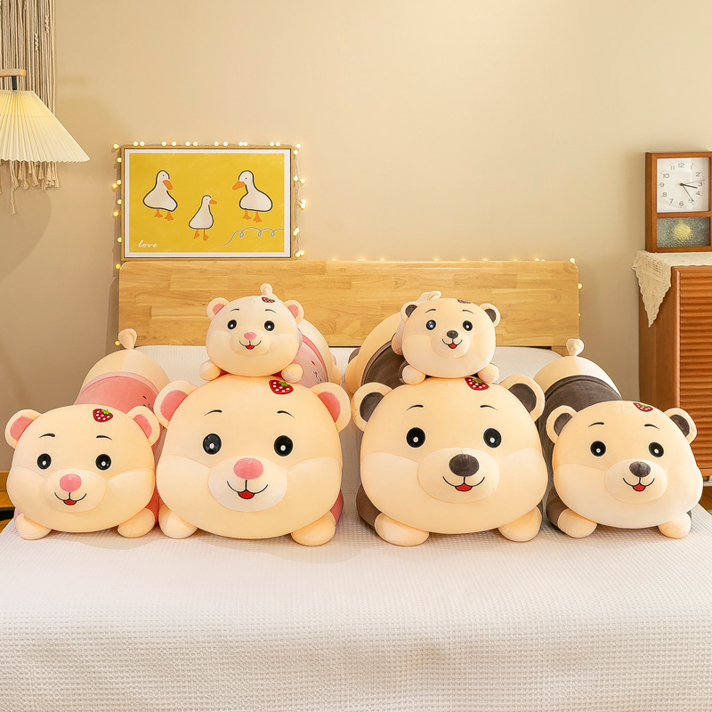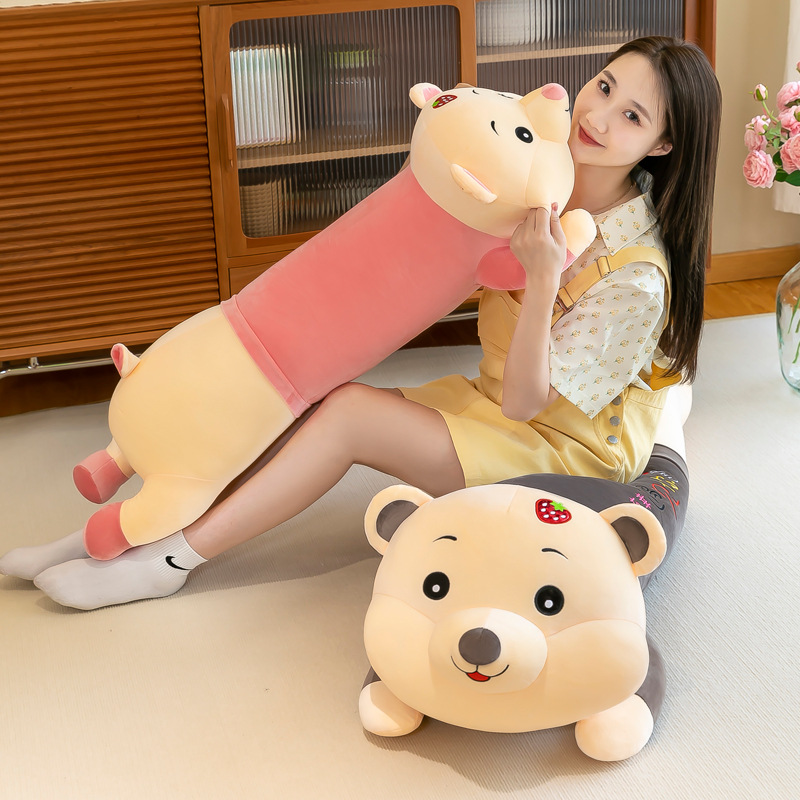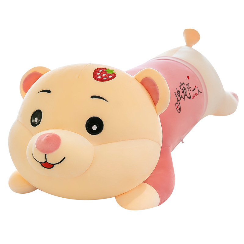 新款草莓趴熊抱枕批发长条陪睡娃娃毛绒玩具安抚公仔送女生礼物