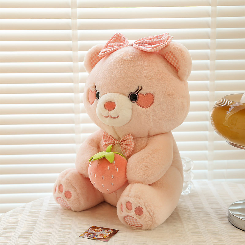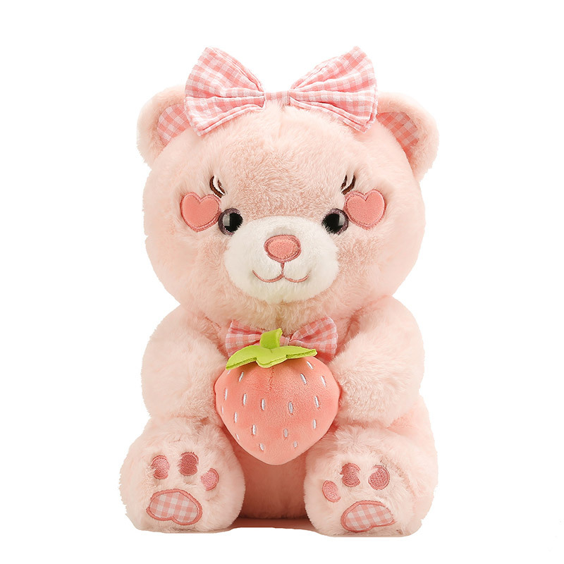 厂家可爱草莓粉色调皮小熊公仔玩偶爱心熊毛绒玩具抱抱熊送女生