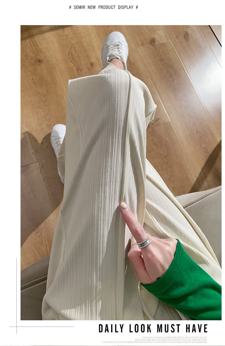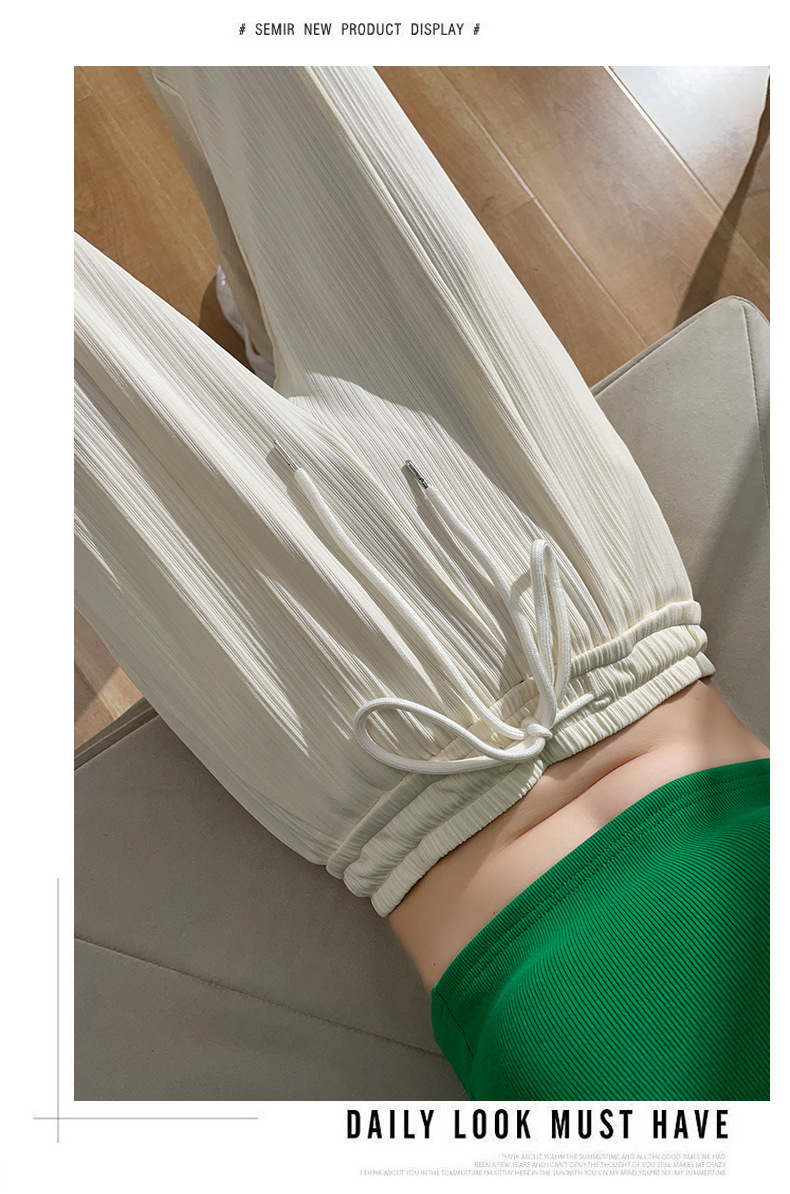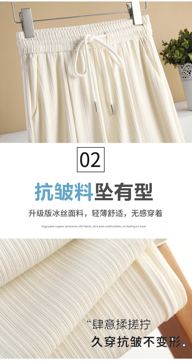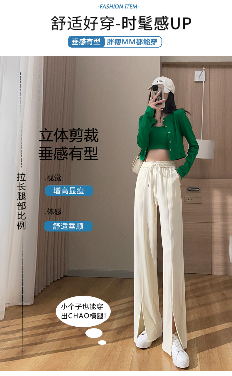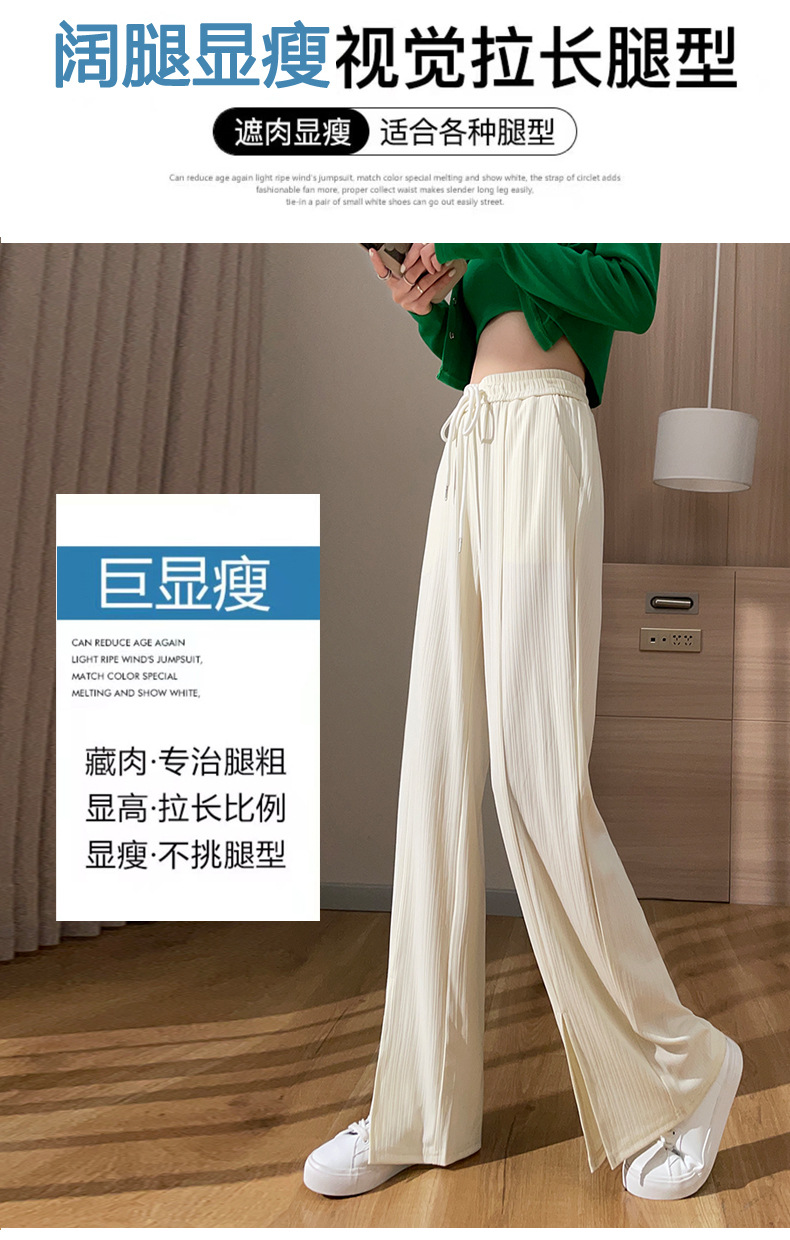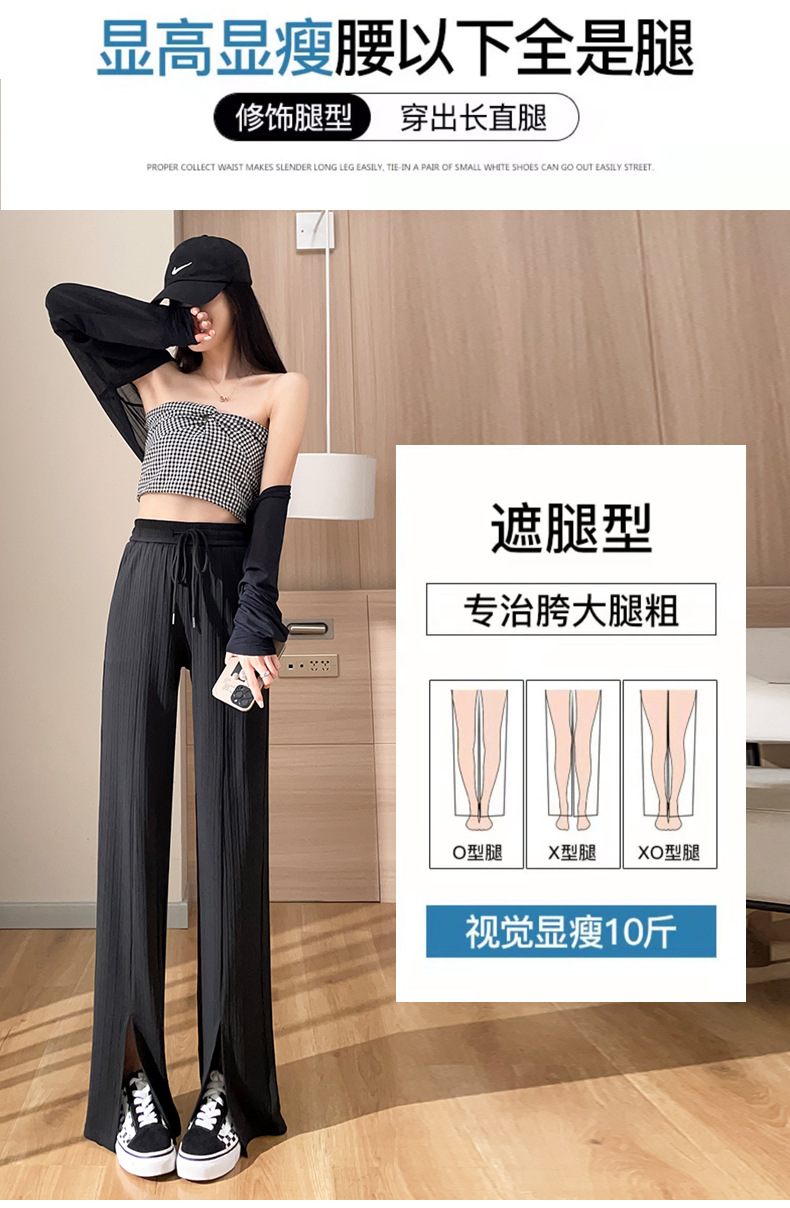 实拍冰丝开叉阔腿裤女夏季薄款高腰垂感黑色窄版防晒休闲直筒裤