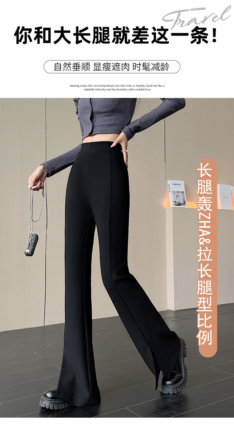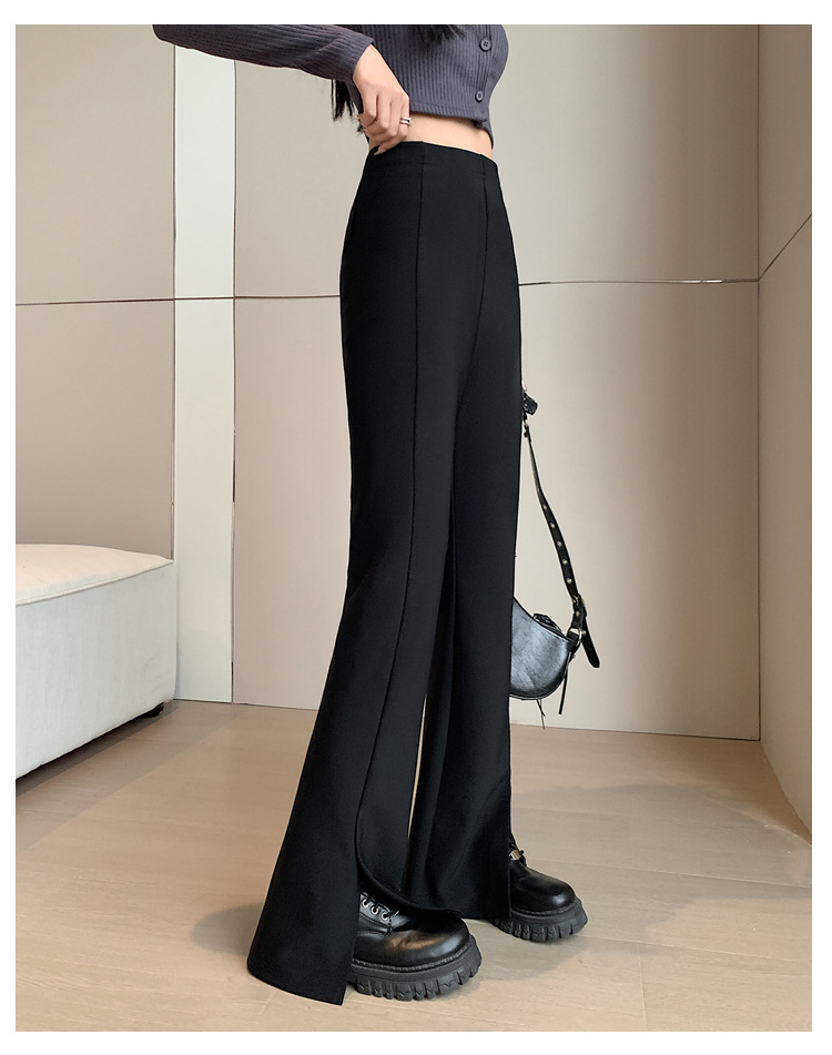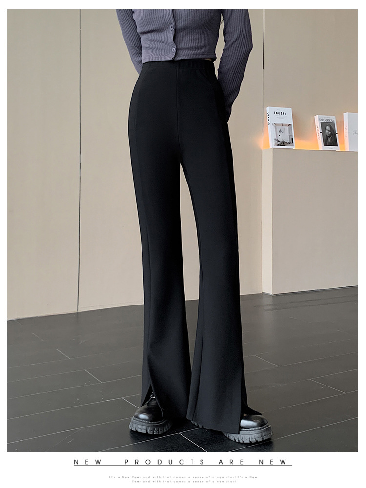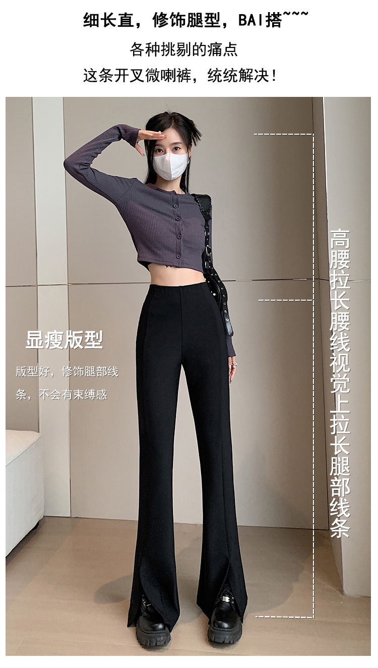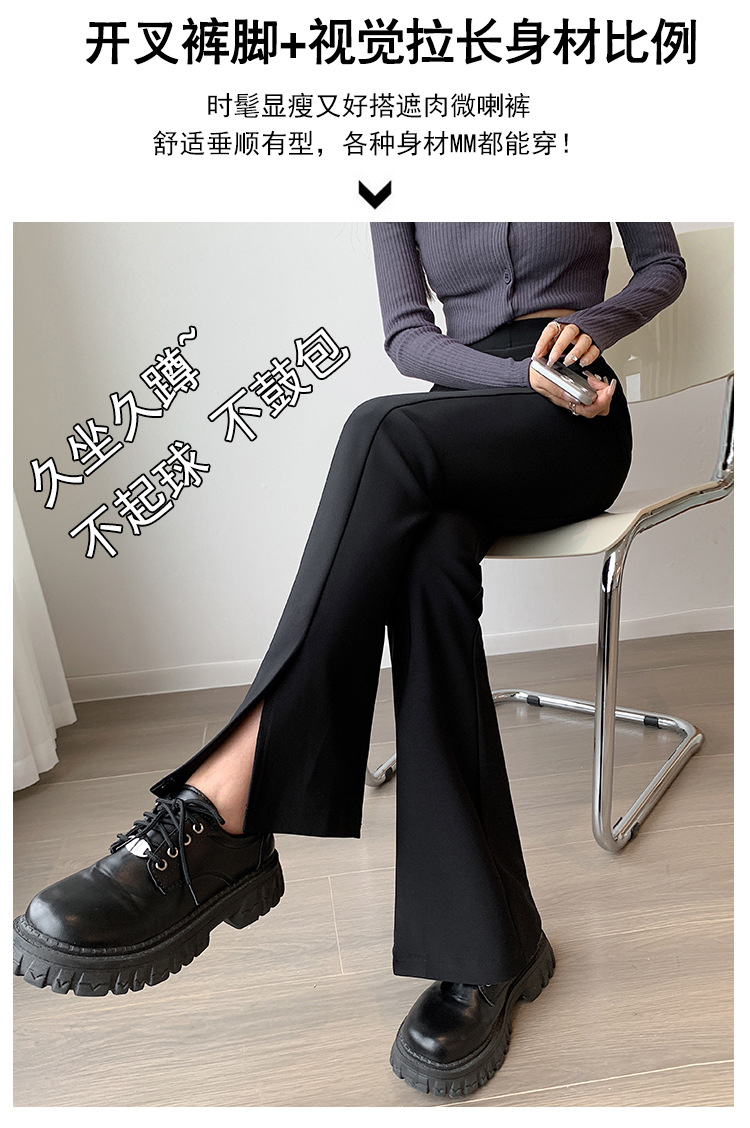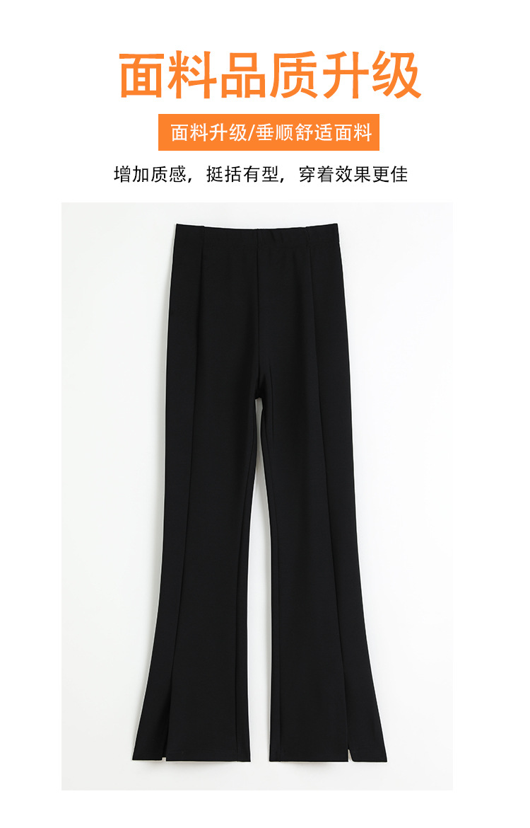 2023秋季新款高腰开叉休闲黑色松紧微喇裤弹力修身显瘦垂感微喇裤