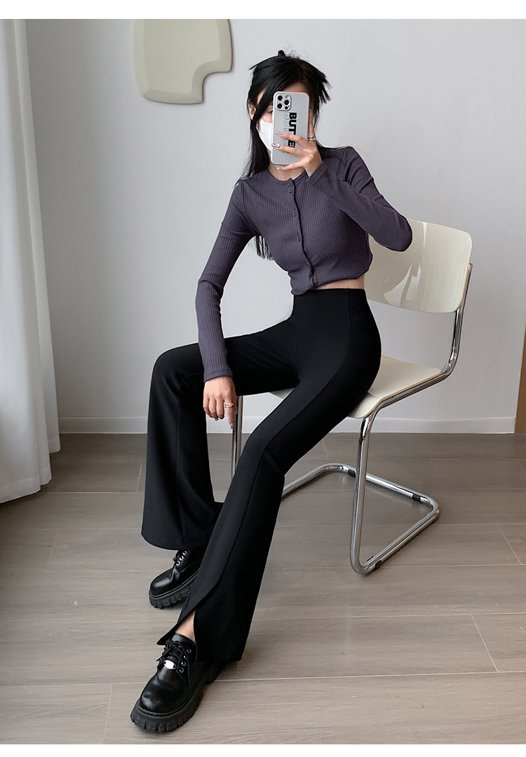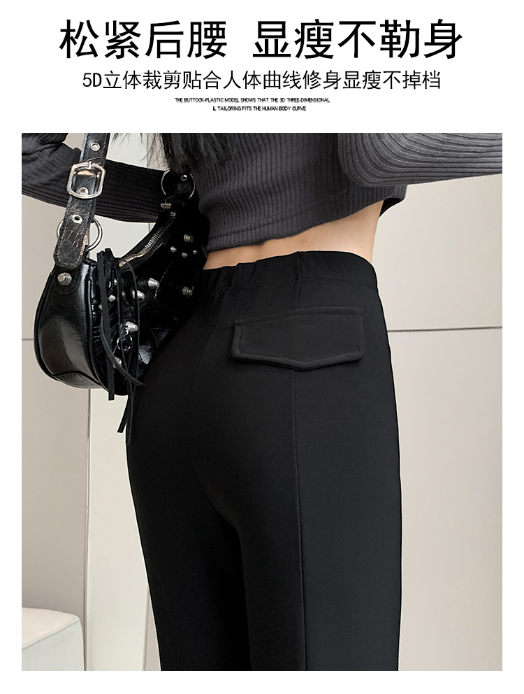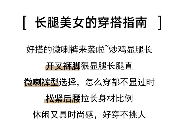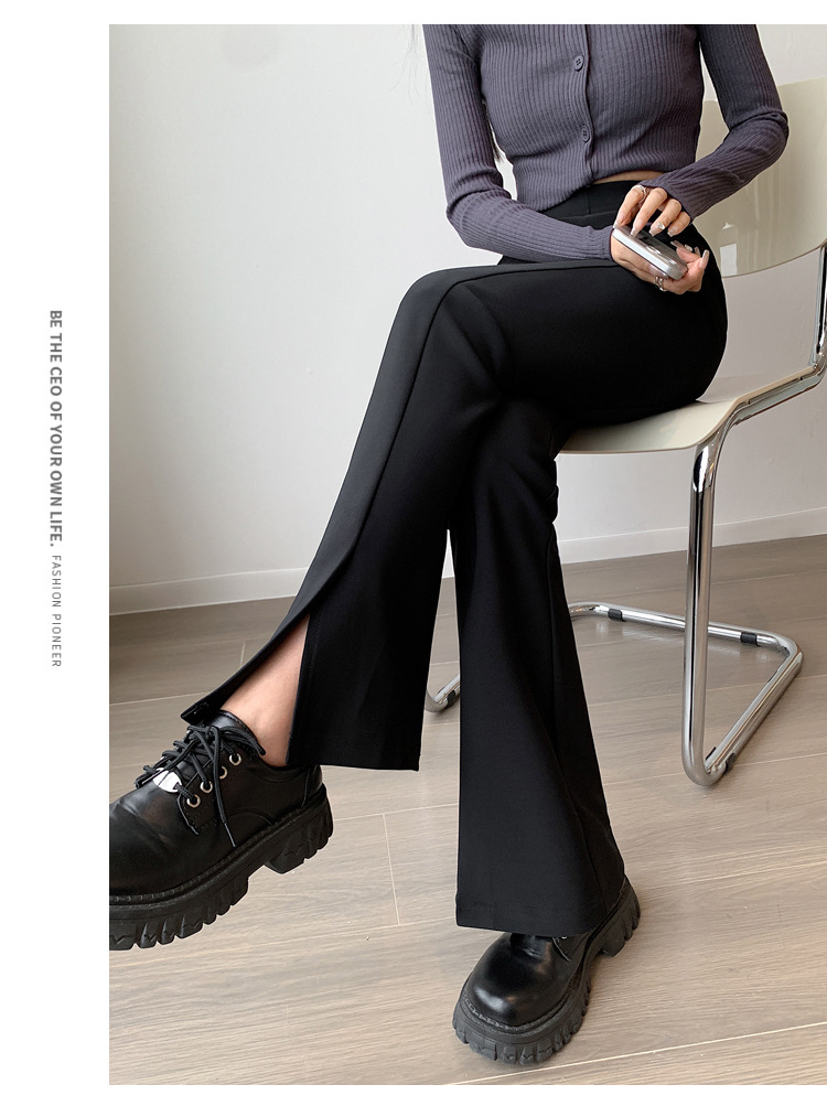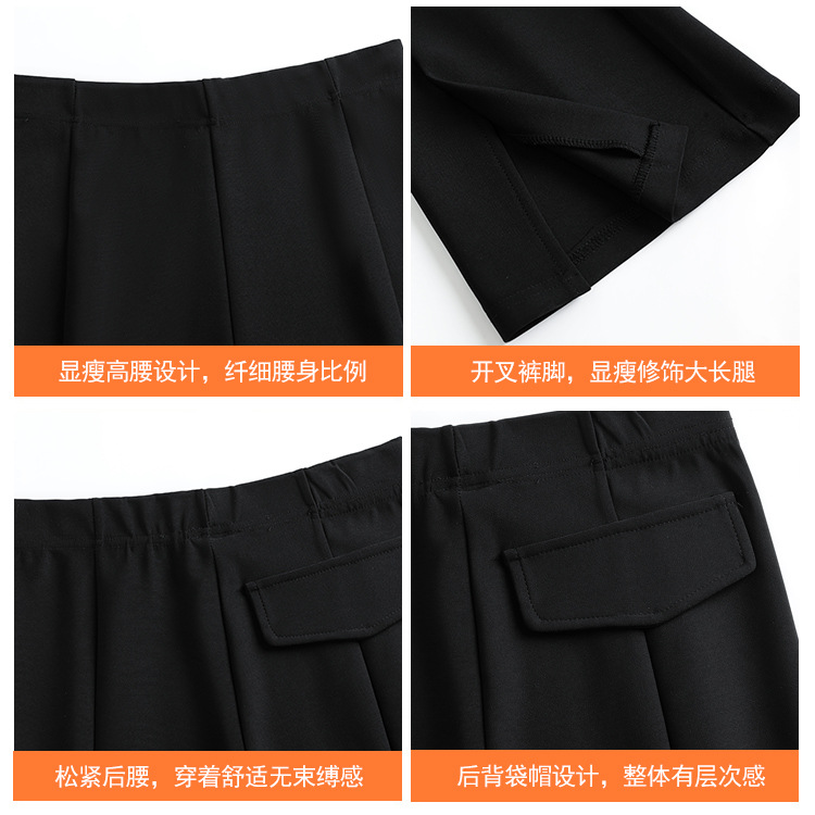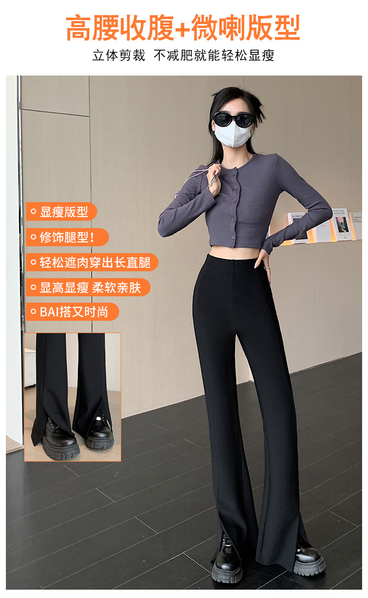 2023秋季新款高腰开叉休闲黑色松紧微喇裤弹力修身显瘦垂感微喇裤