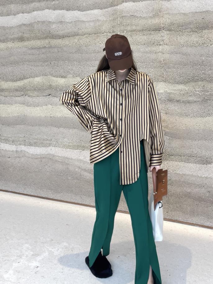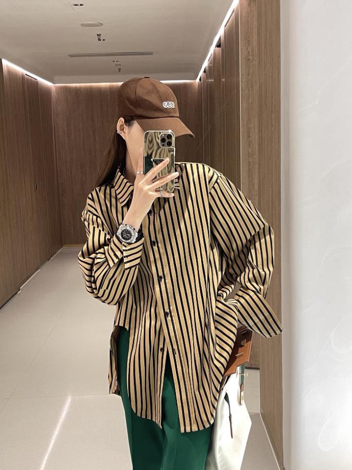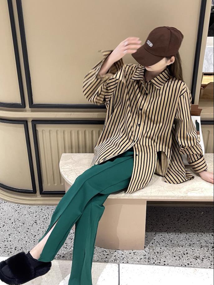 小众设计感条纹衬衫女2023新款早秋宽松休闲百搭小众衬衣上衣