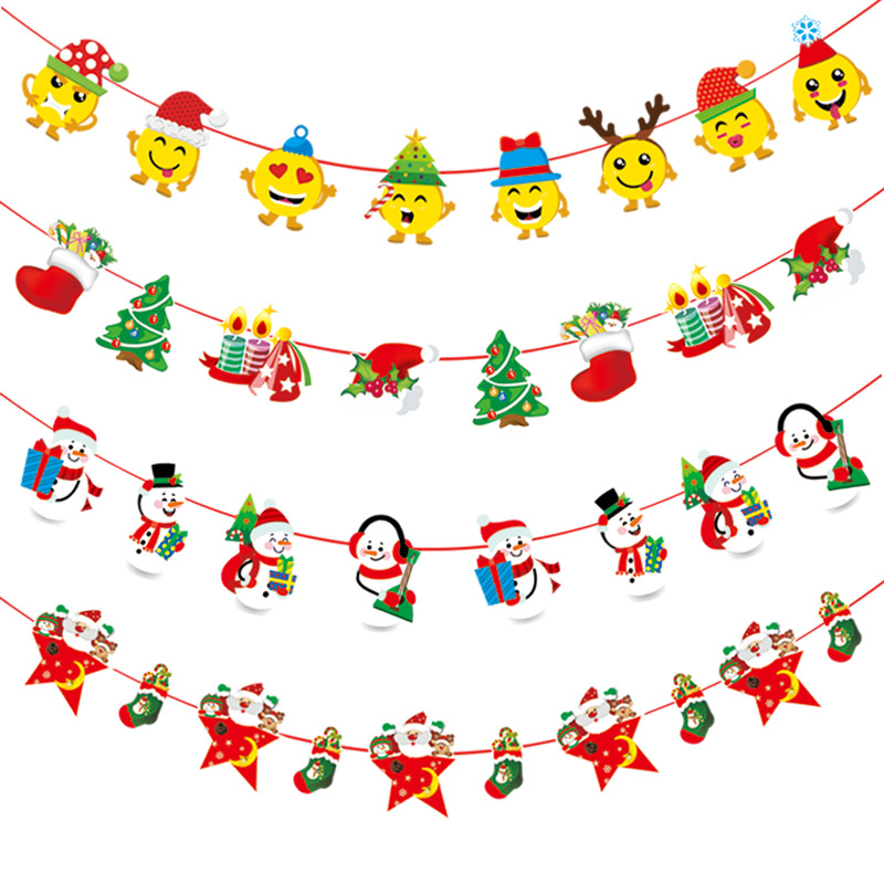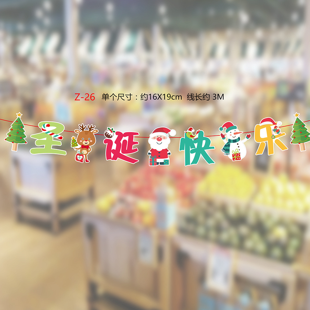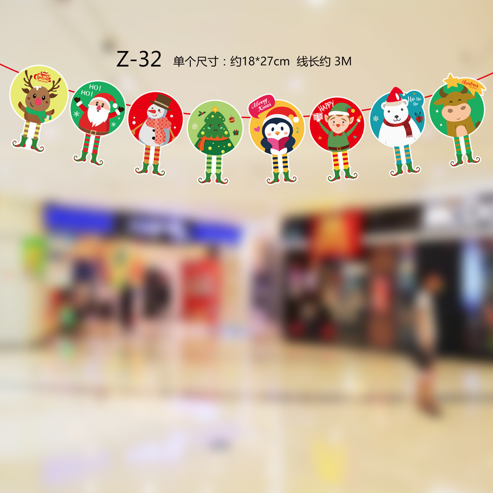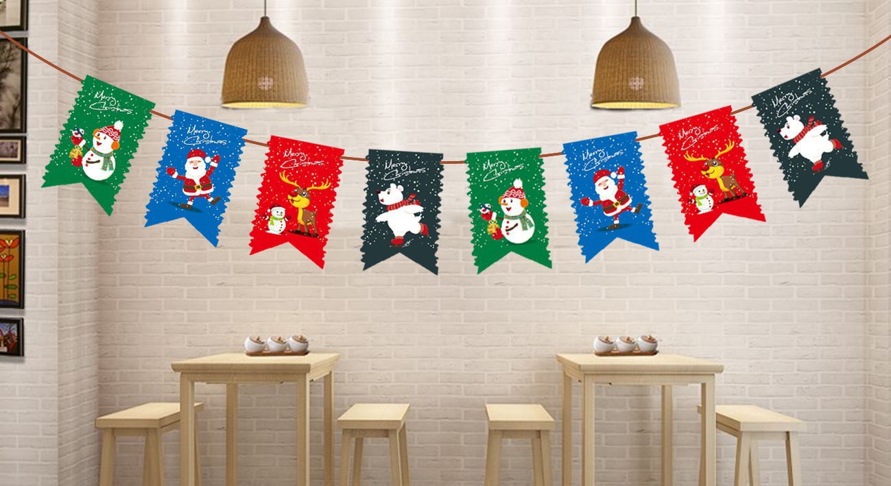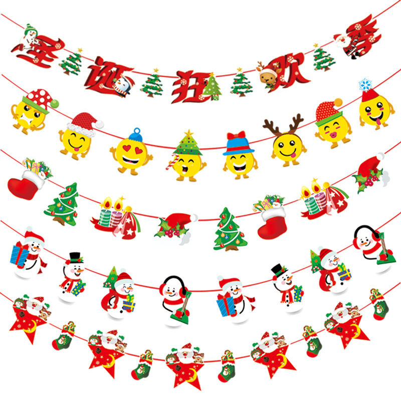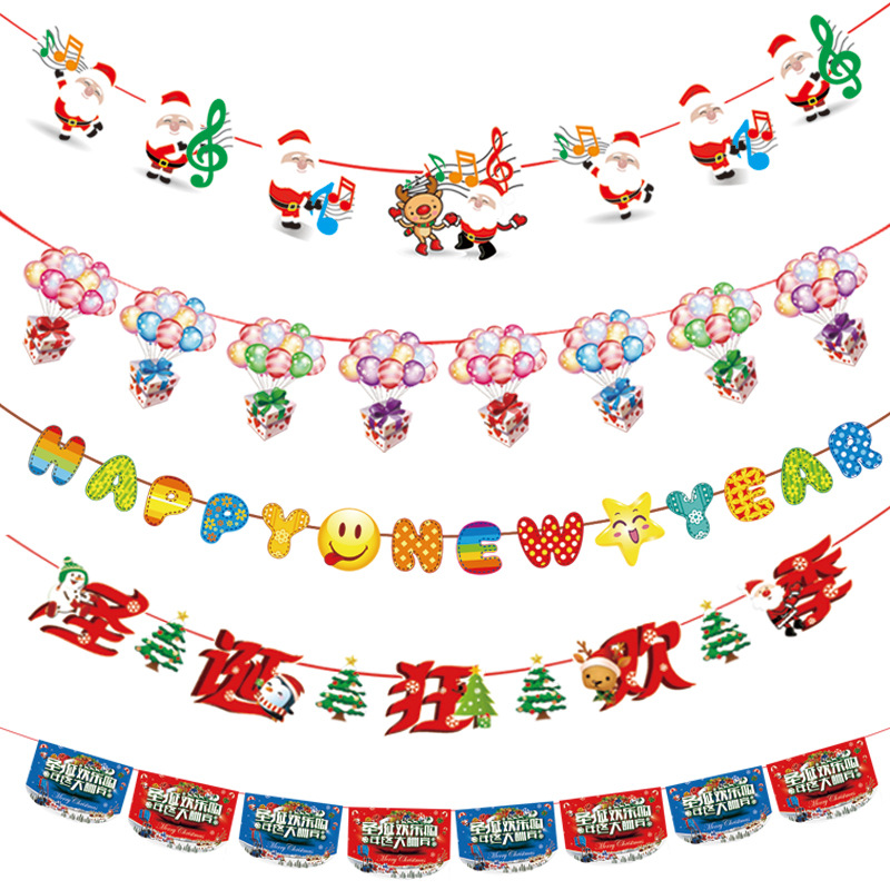 新年卡通圣诞拉旗纸质挂旗派对气氛布置节日装饰品拉花圣诞节装饰