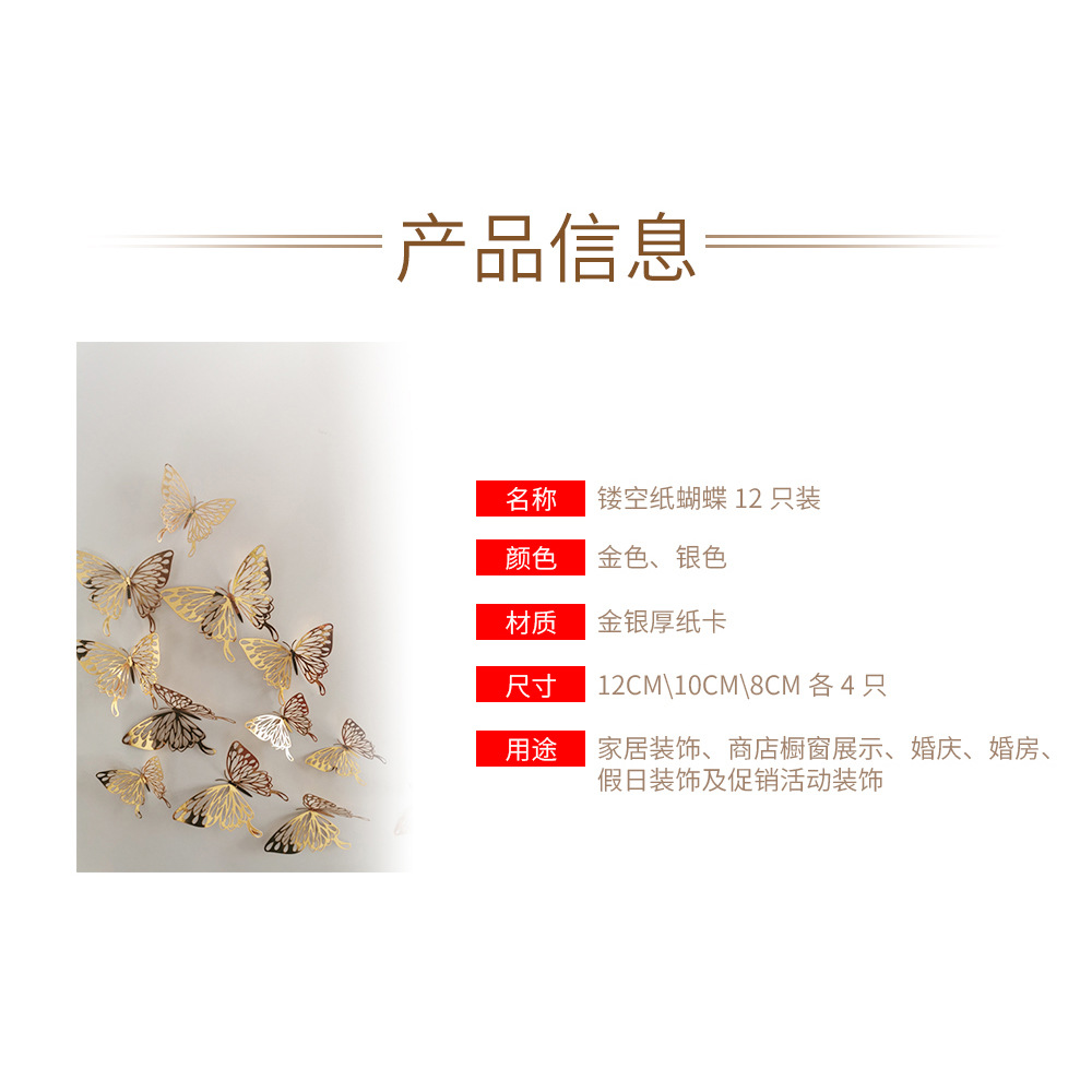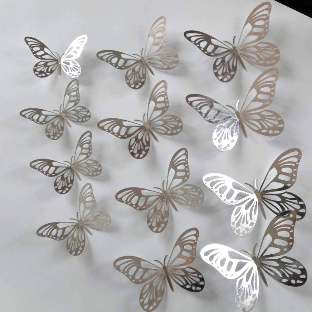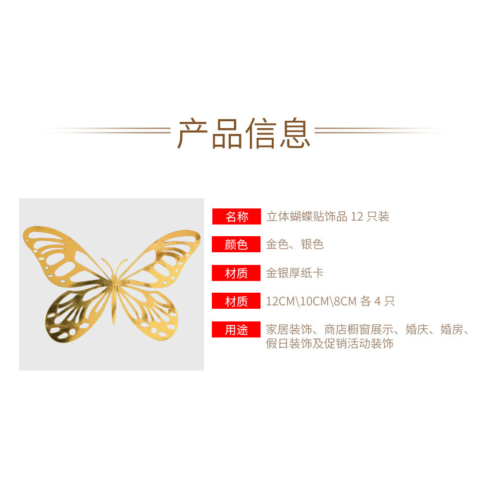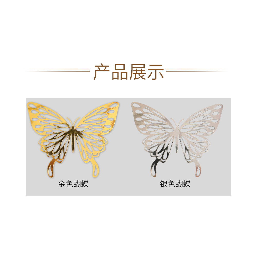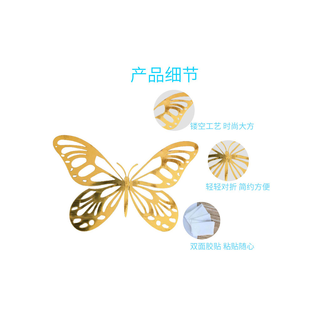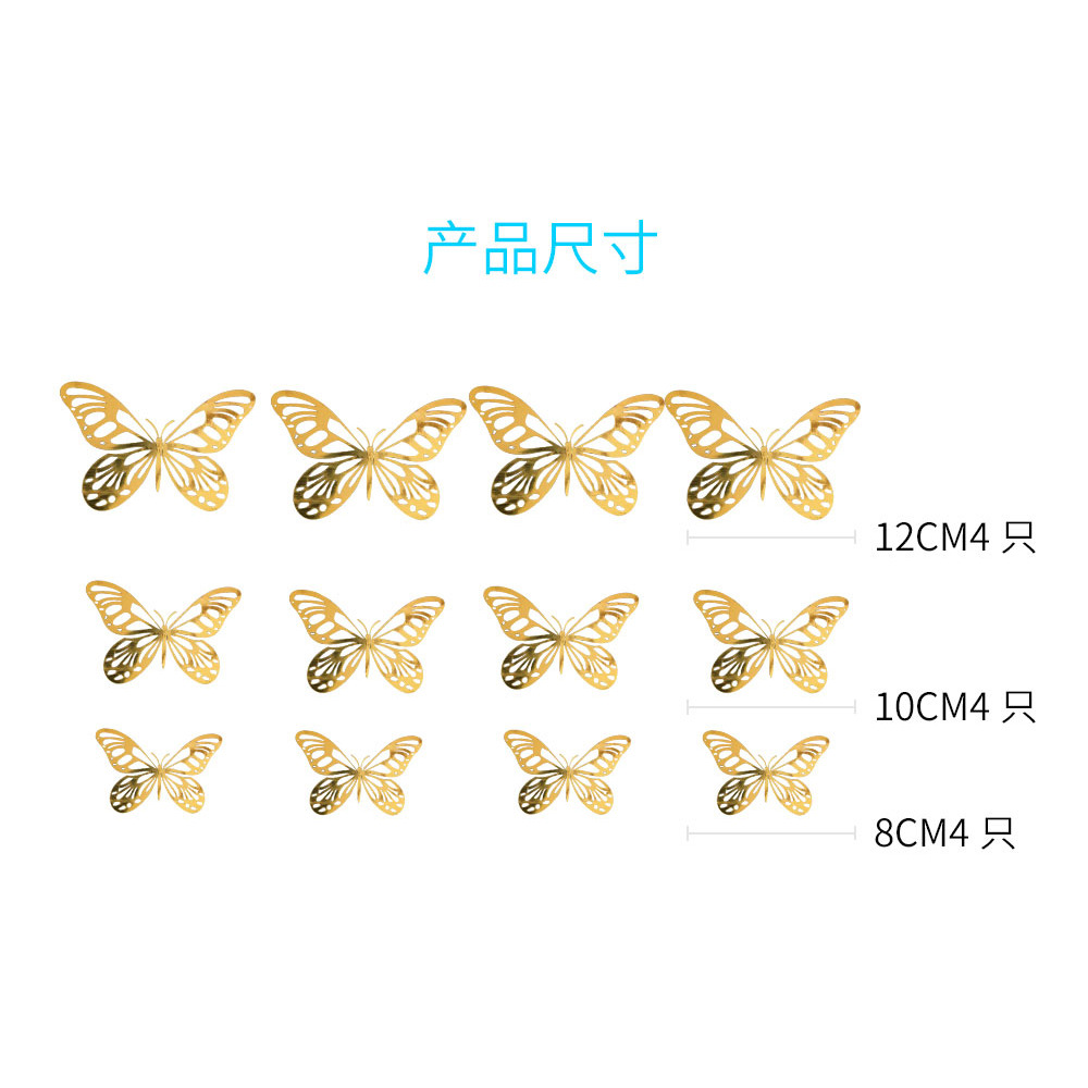 12只装 3D金属质感立体镂空蝴蝶墙贴跨境亚马逊婚礼节庆家居装饰