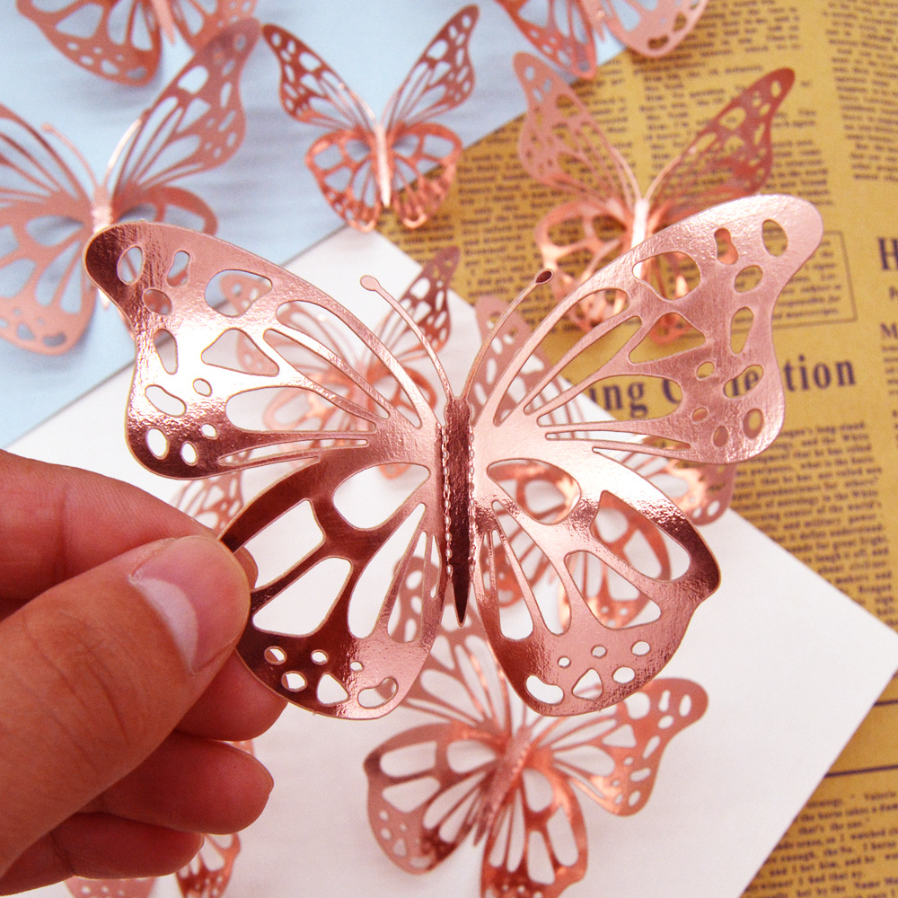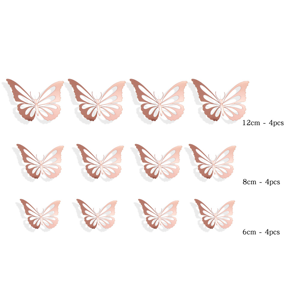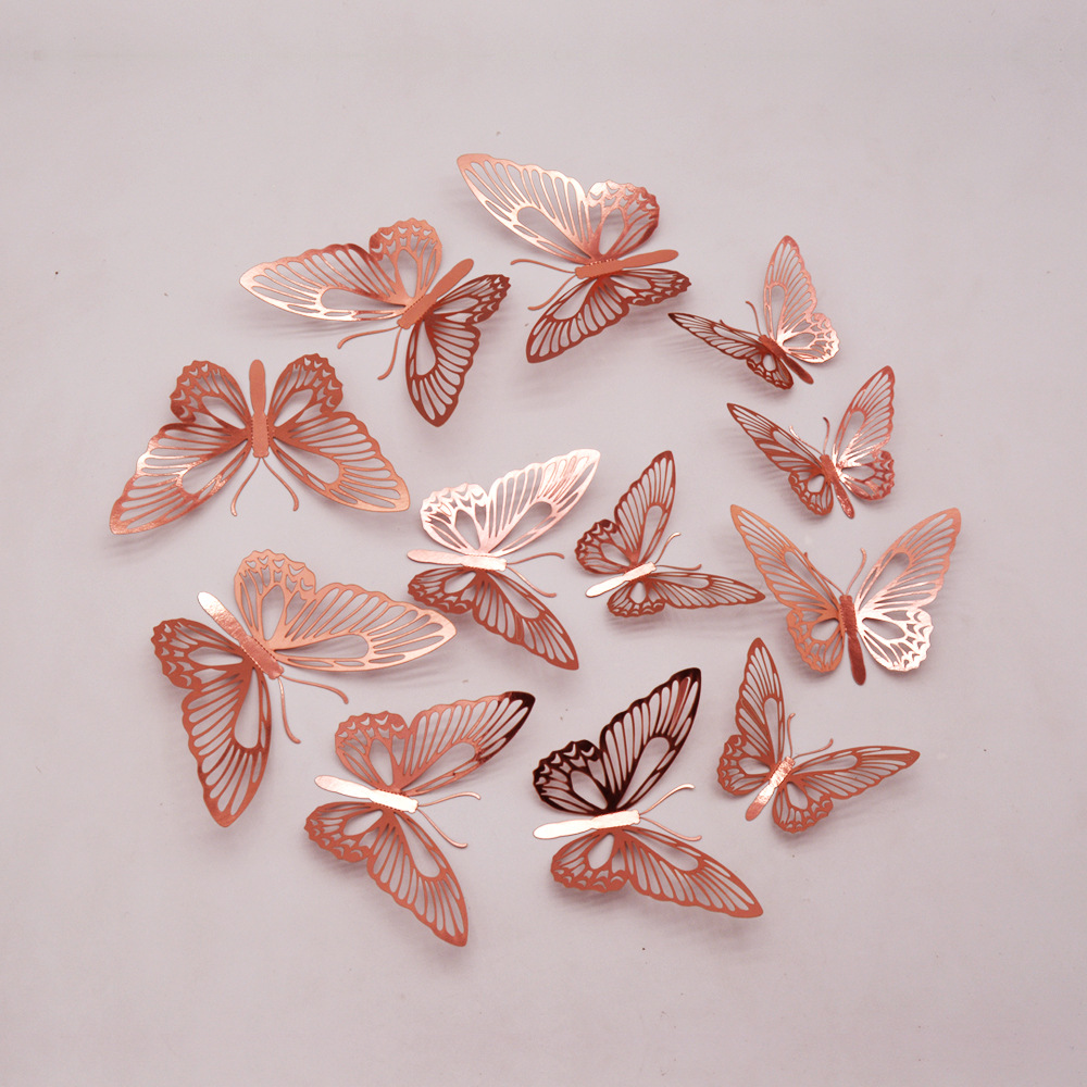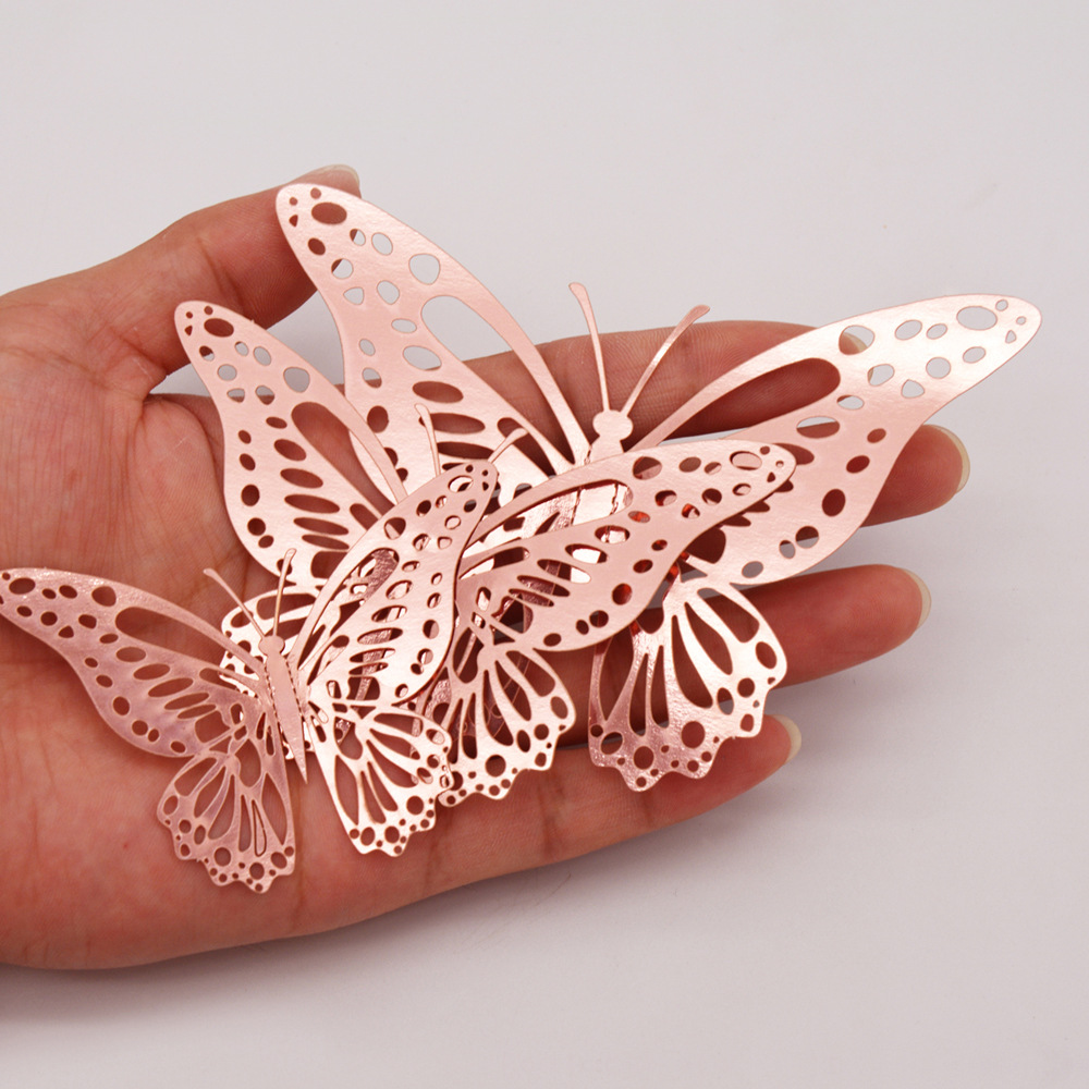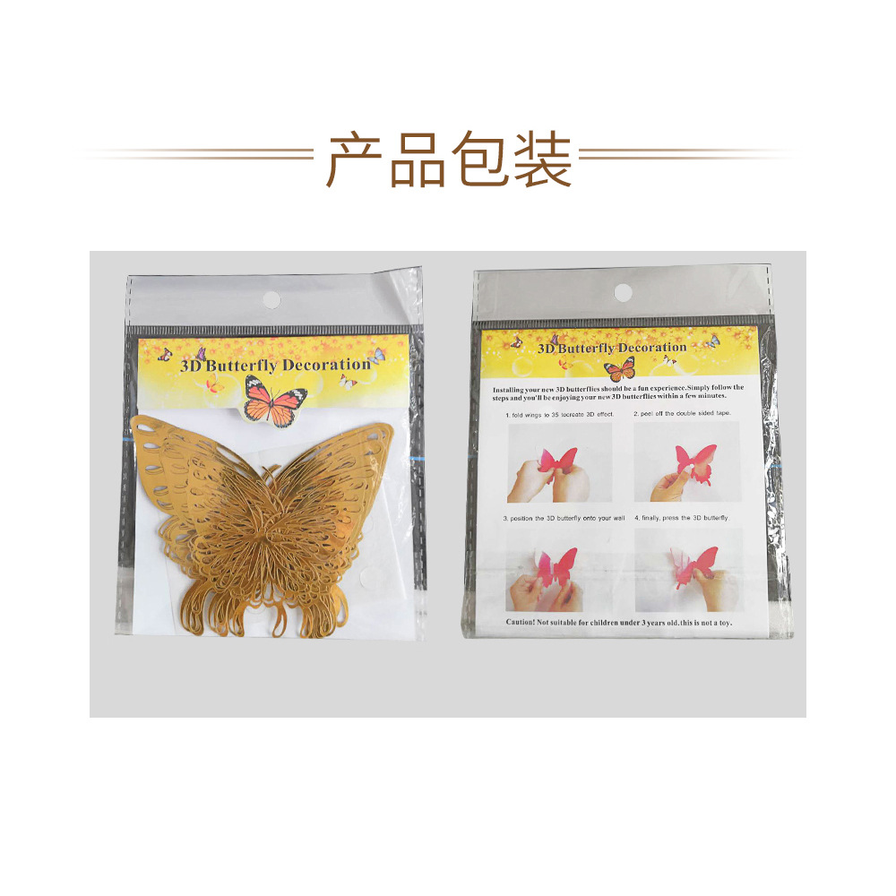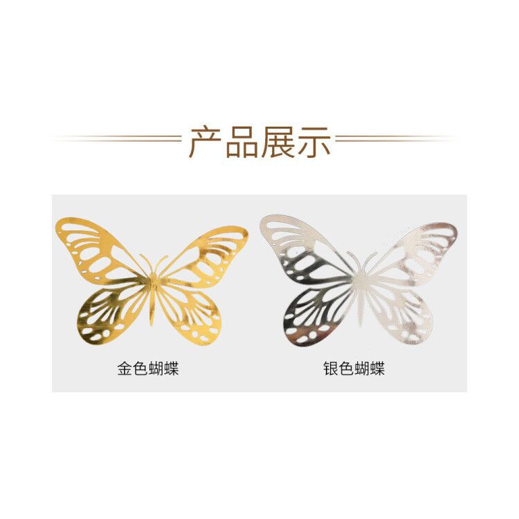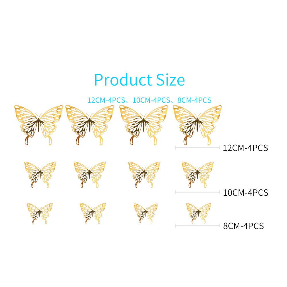 12只装 3D金属质感立体镂空蝴蝶墙贴跨境亚马逊婚礼节庆家居装饰