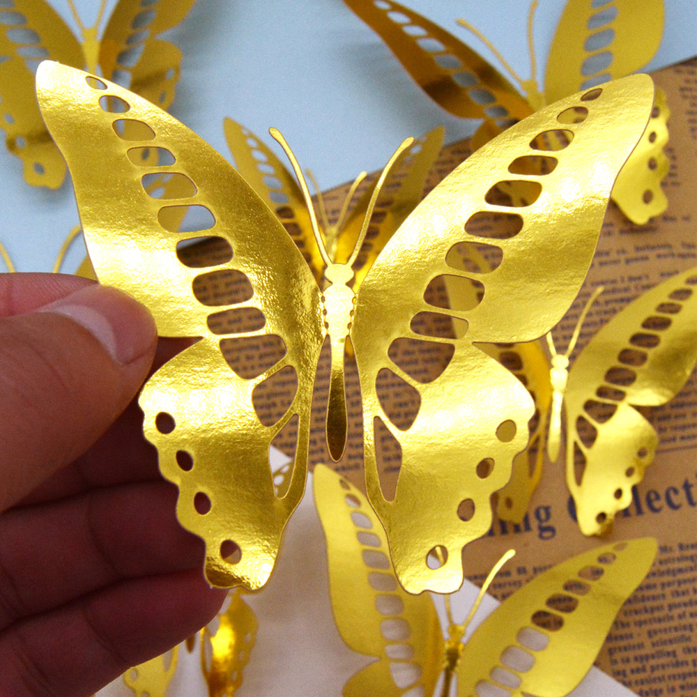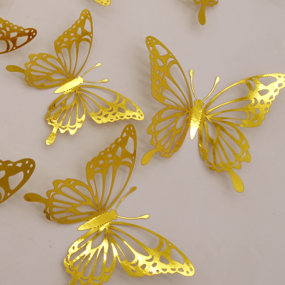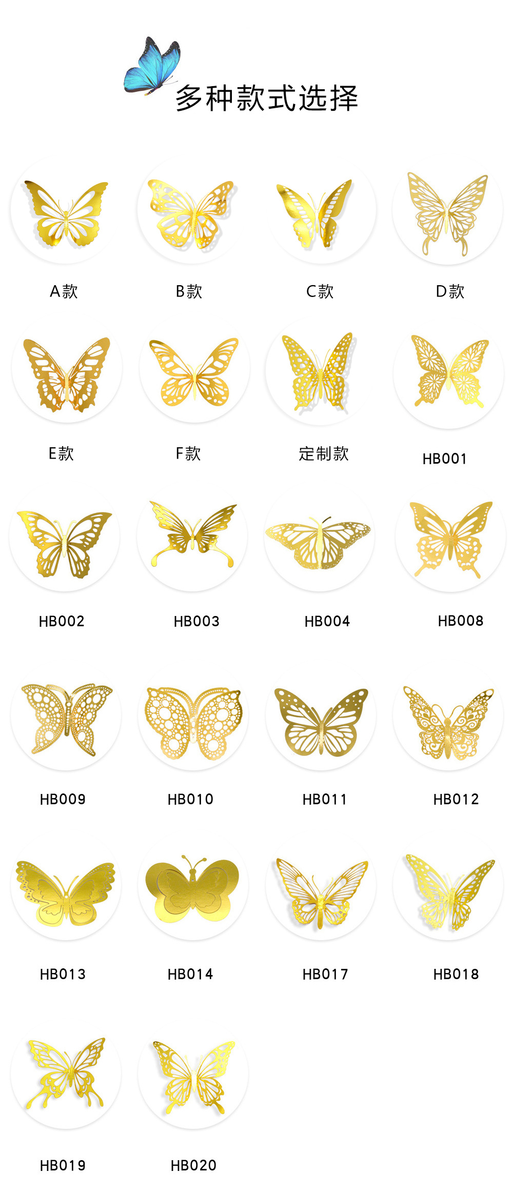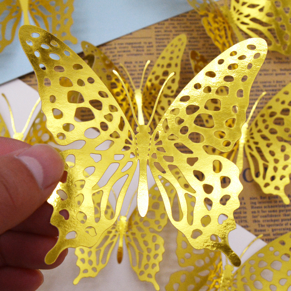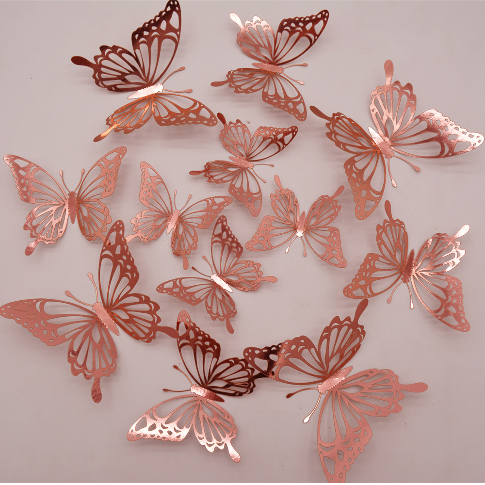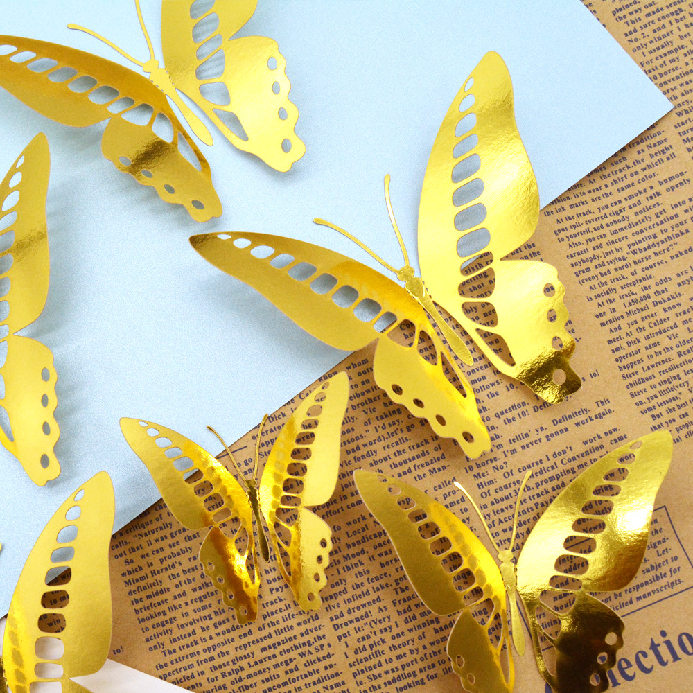12只装 3D金属质感立体镂空蝴蝶墙贴跨境亚马逊婚礼节庆家居装饰