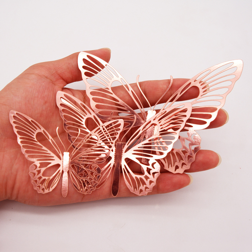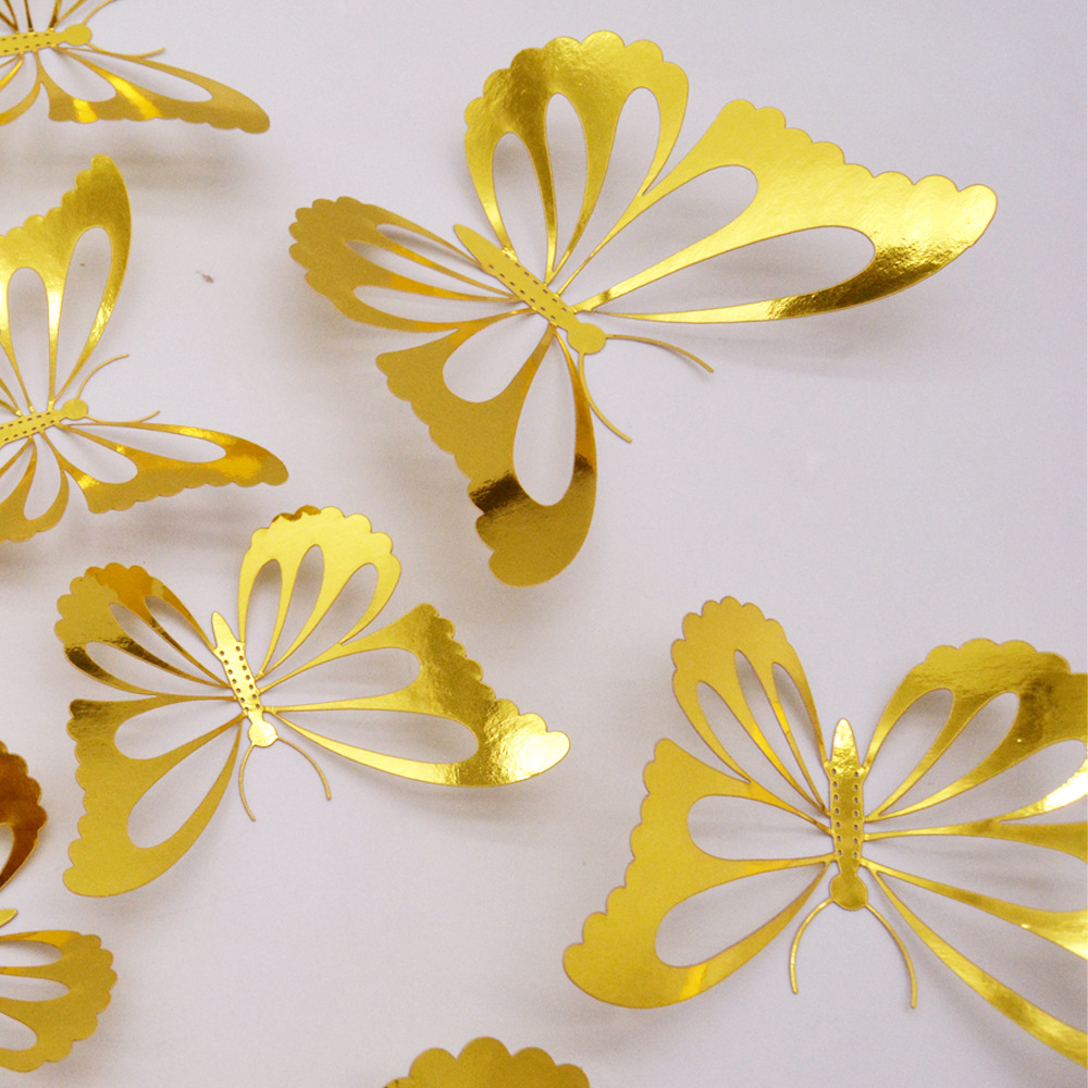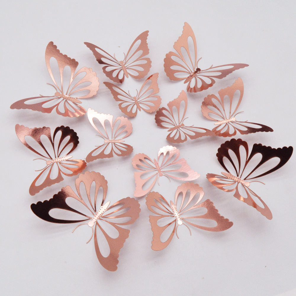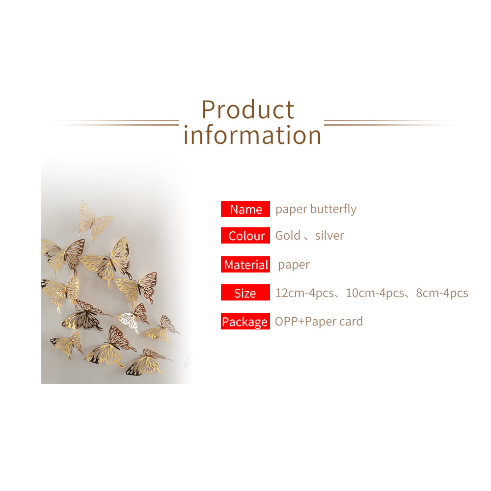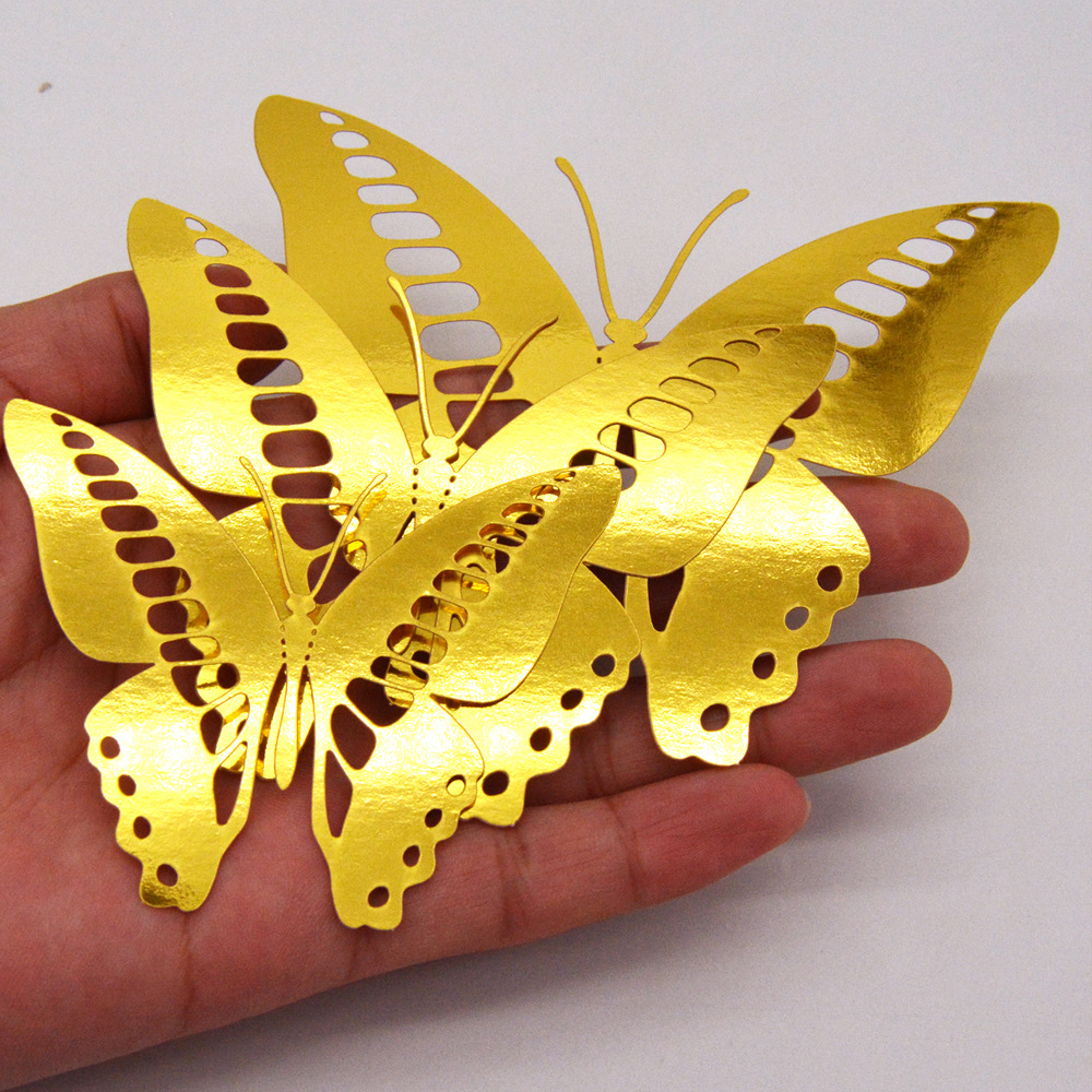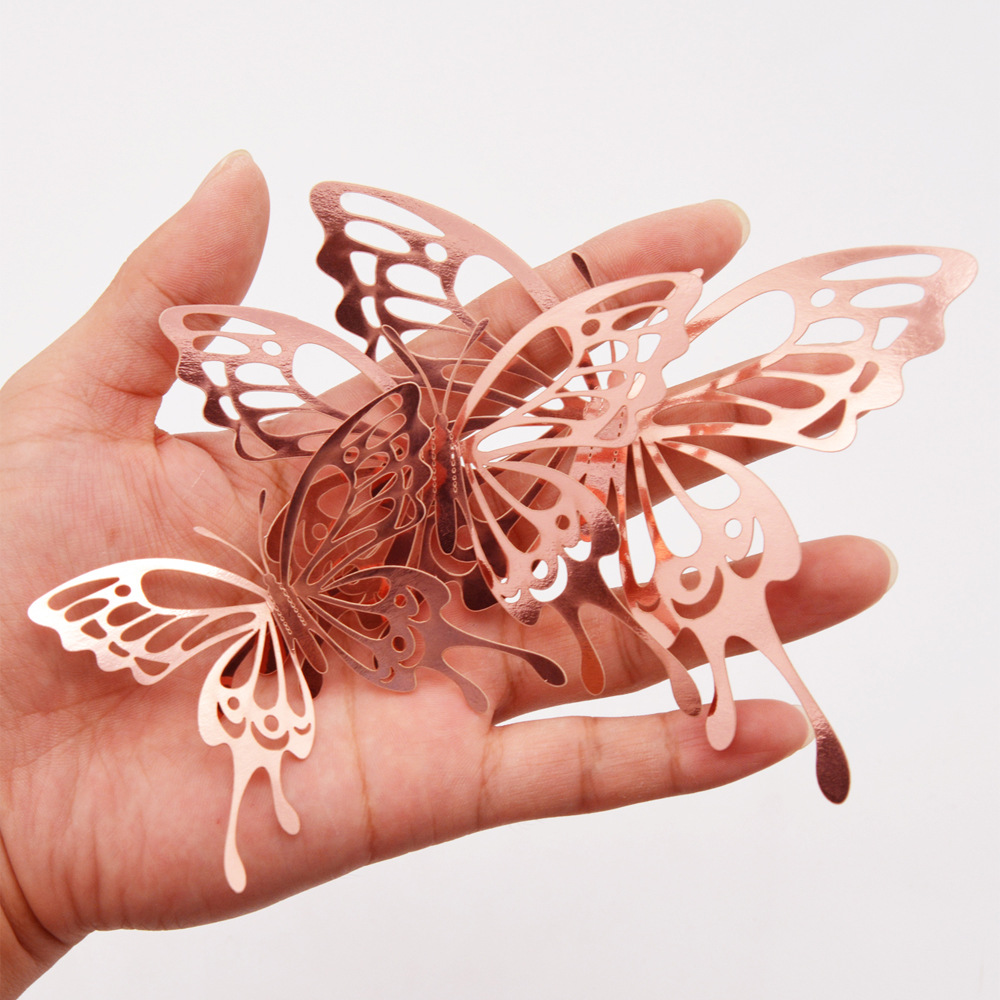 12只装 3D金属质感立体镂空蝴蝶墙贴跨境亚马逊婚礼节庆家居装饰