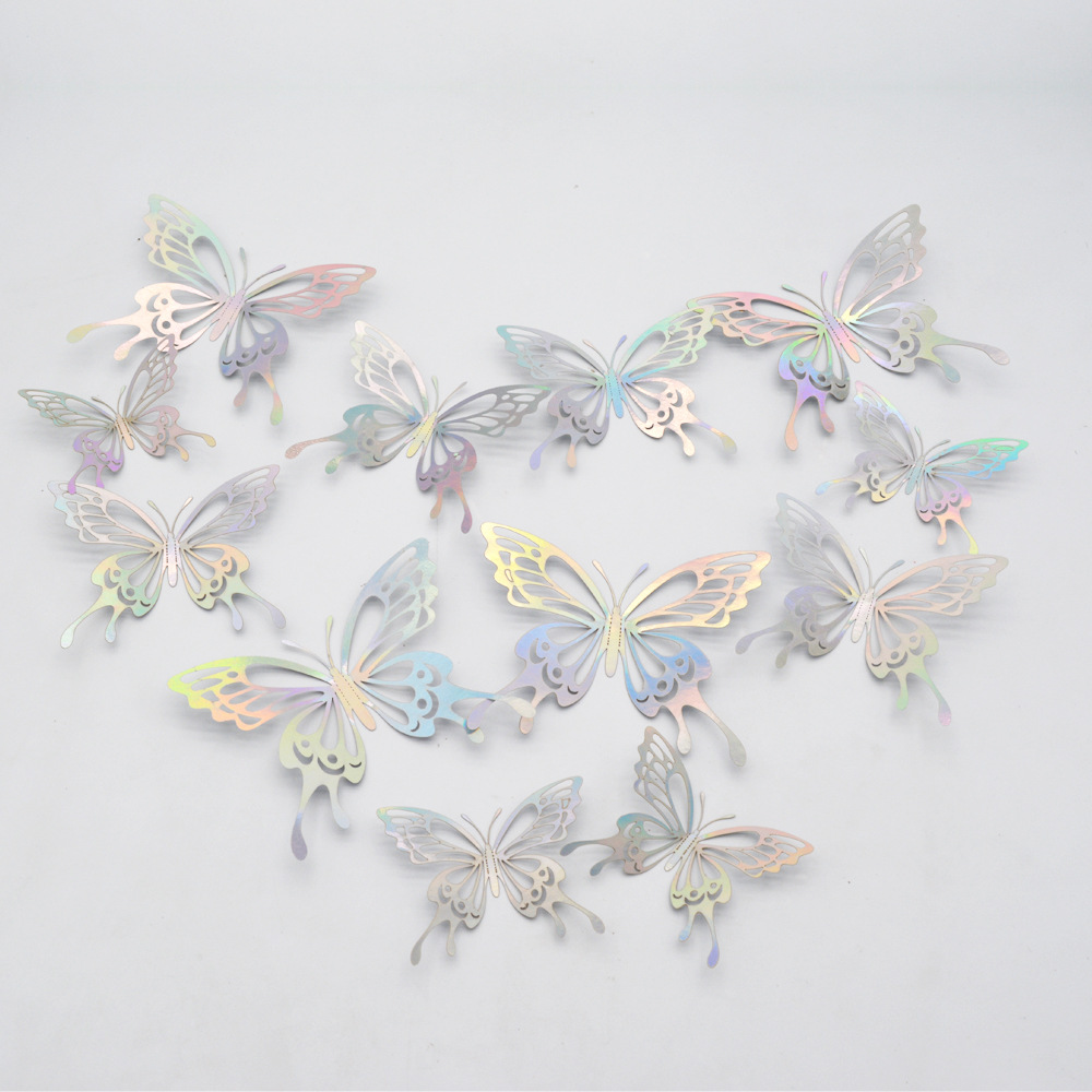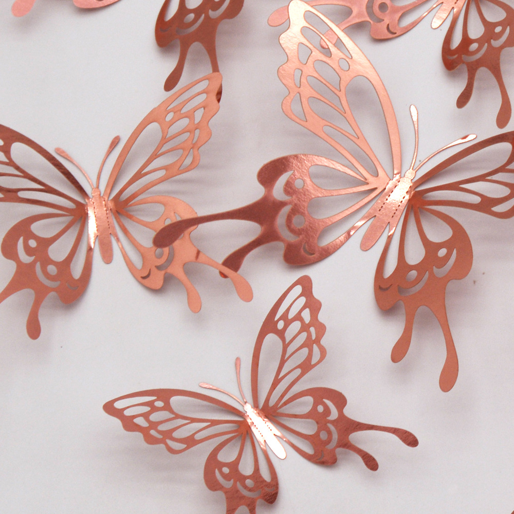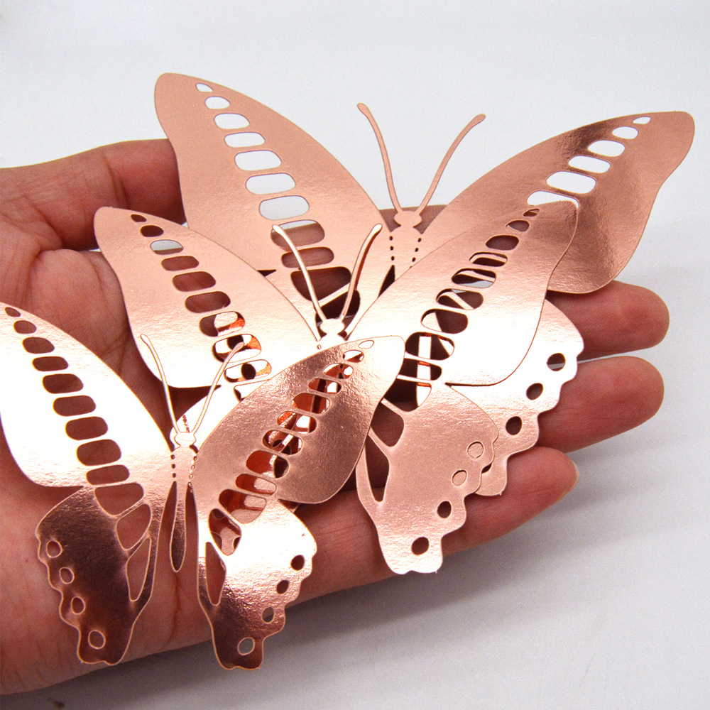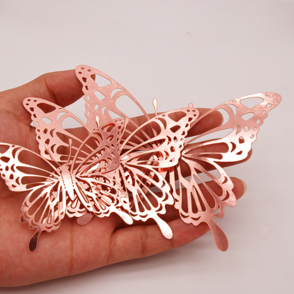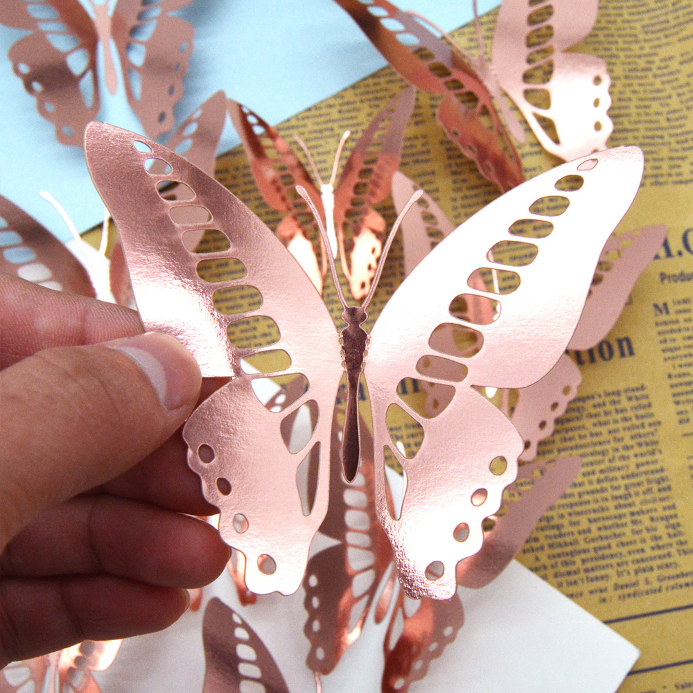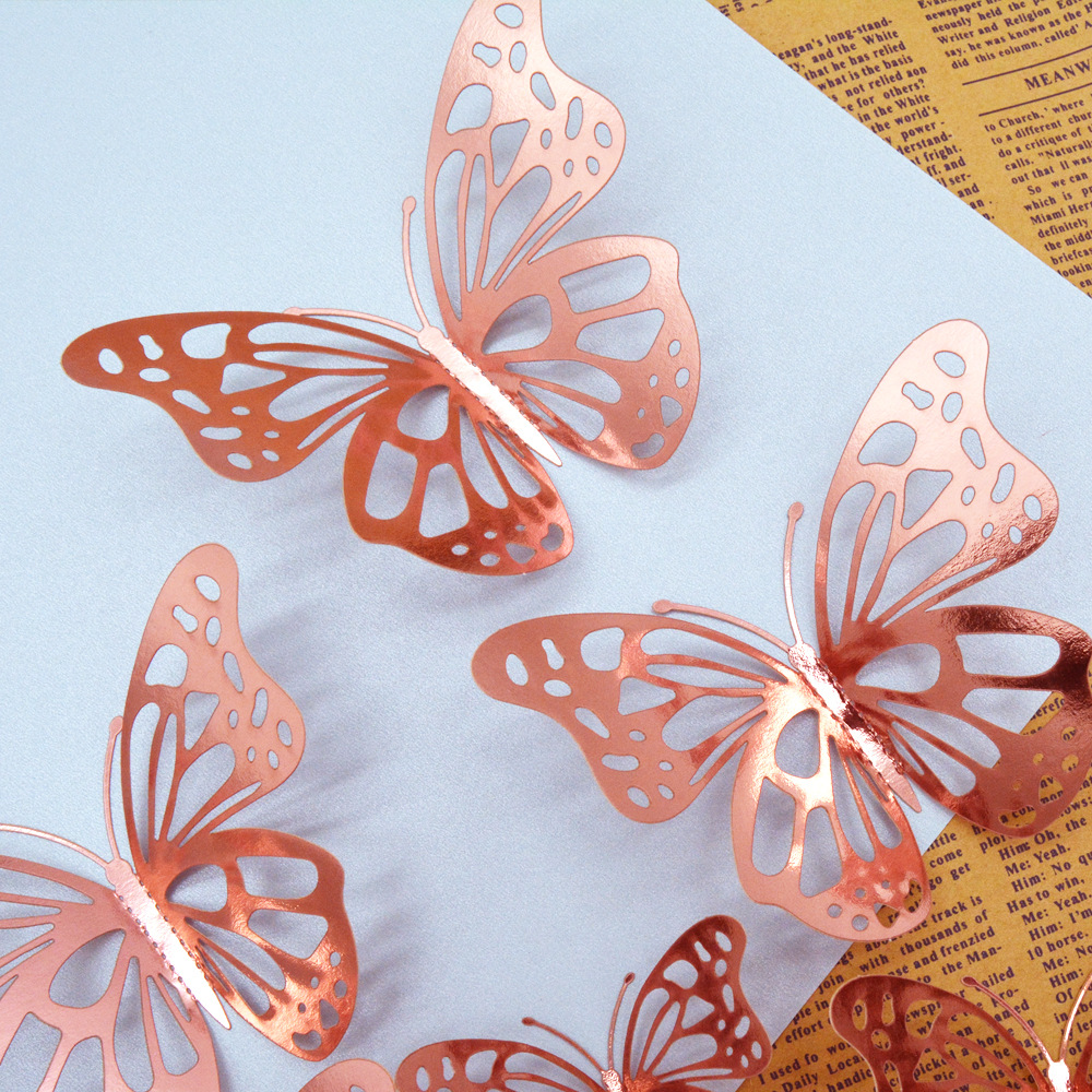12只装 3D金属质感立体镂空蝴蝶墙贴跨境亚马逊婚礼节庆家居装饰
