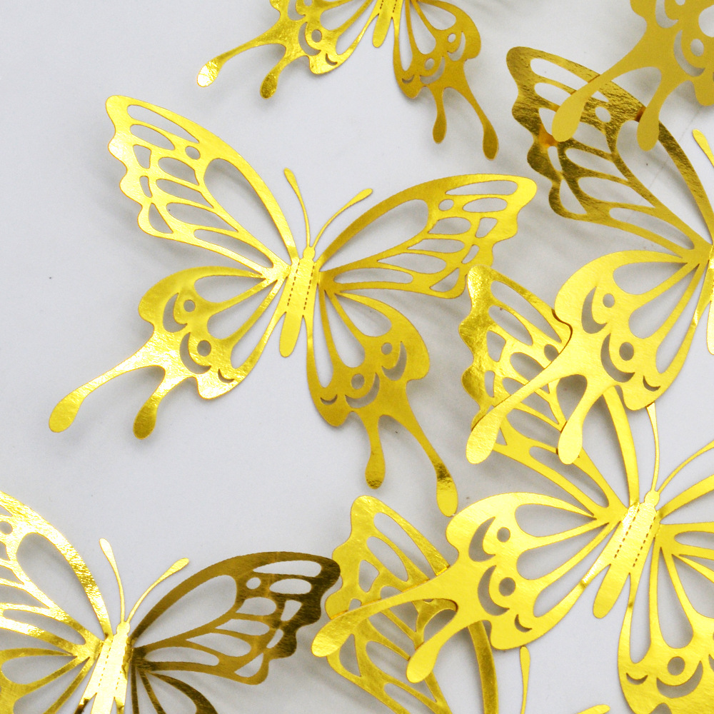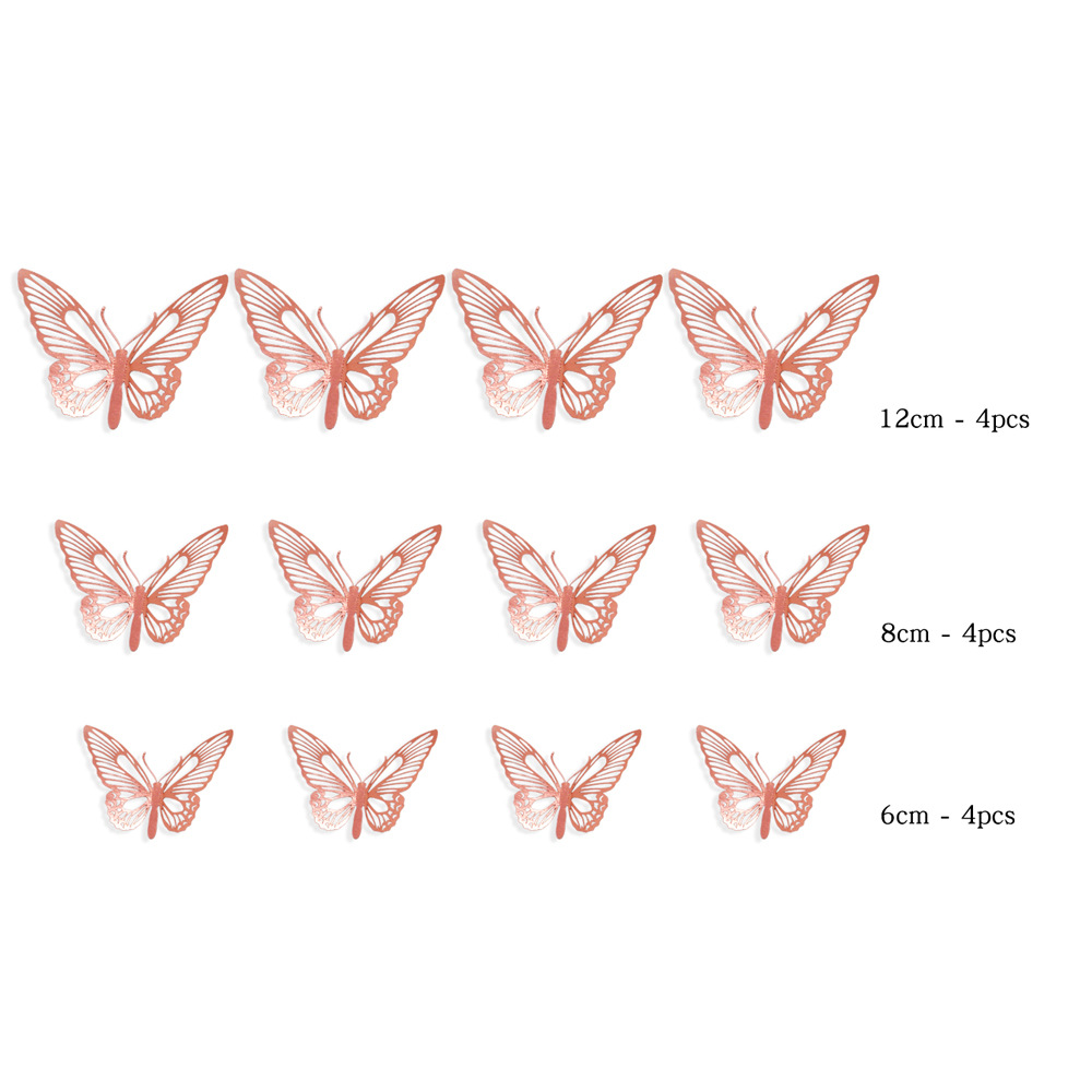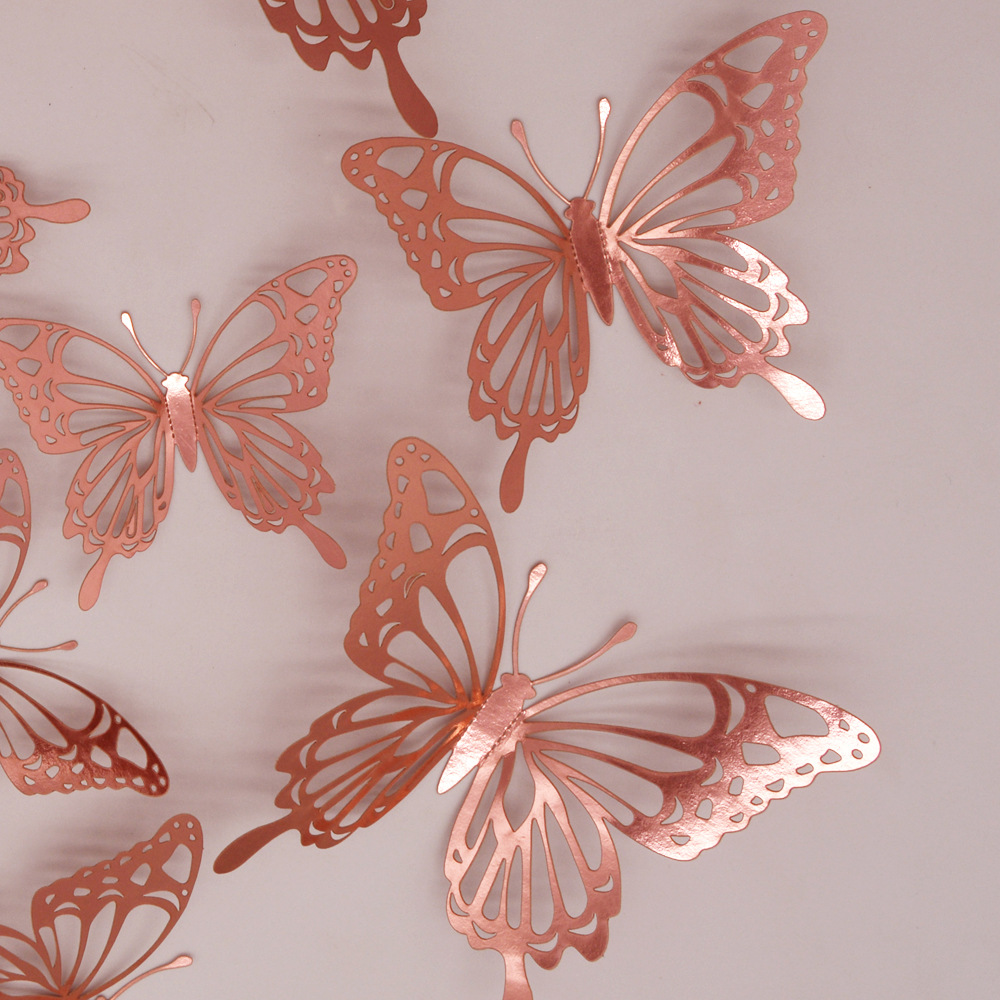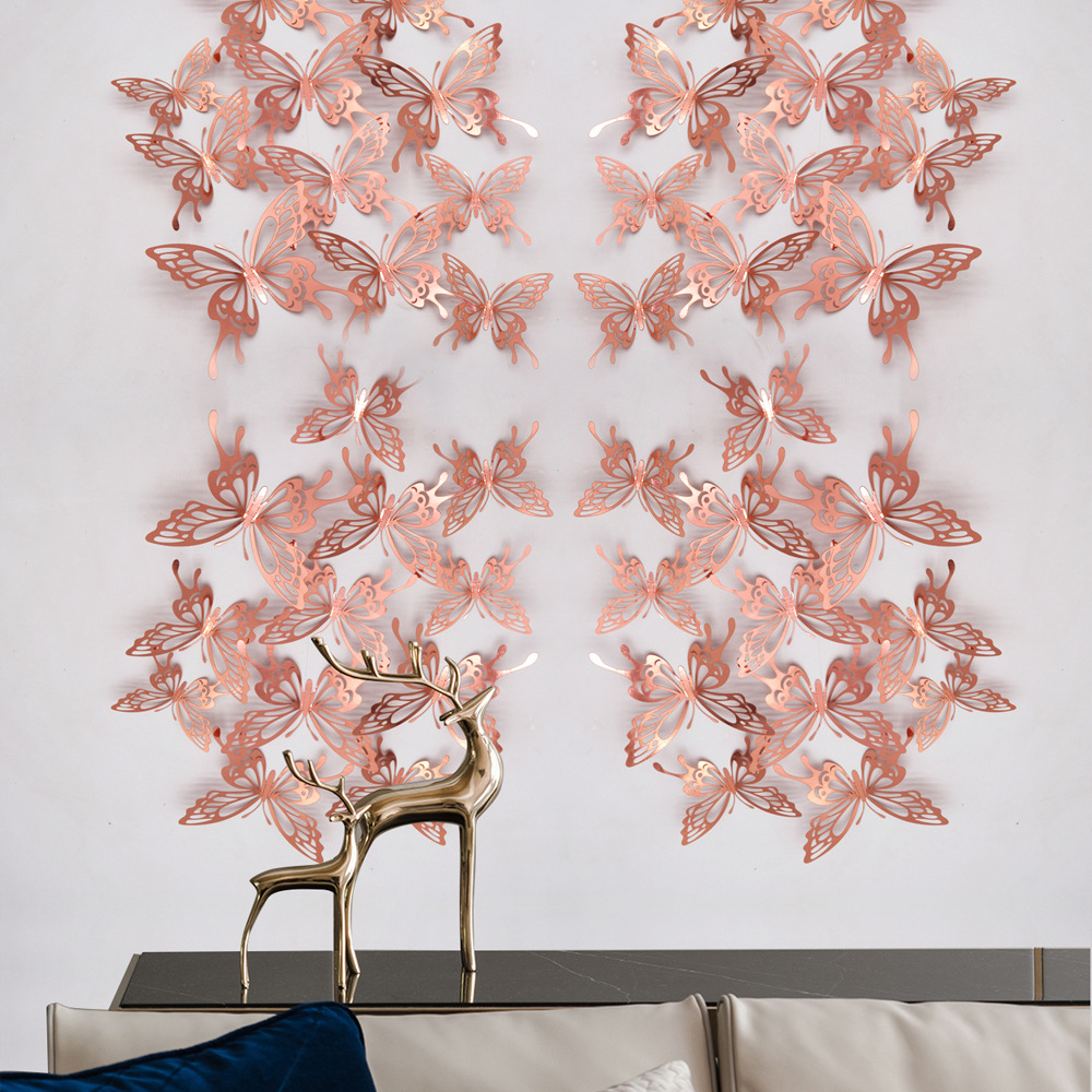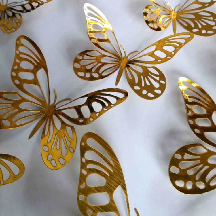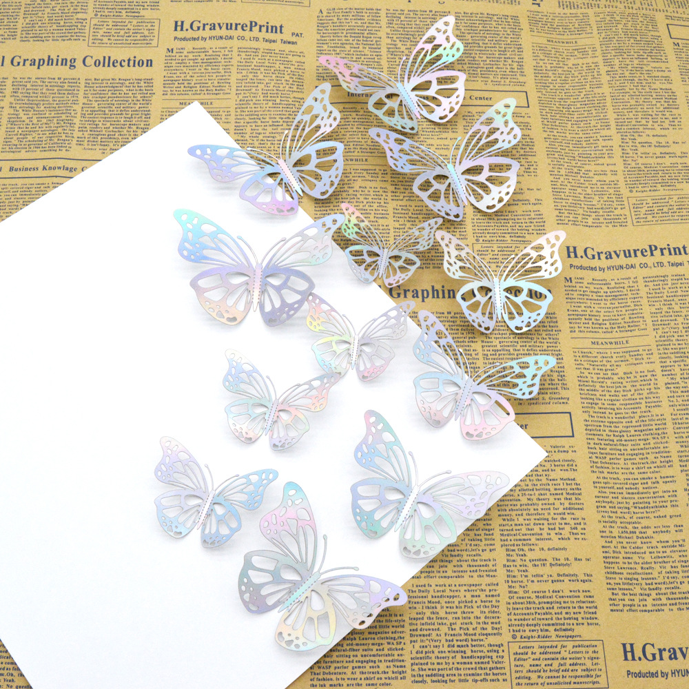 12只装 3D金属质感立体镂空蝴蝶墙贴跨境亚马逊婚礼节庆家居装饰