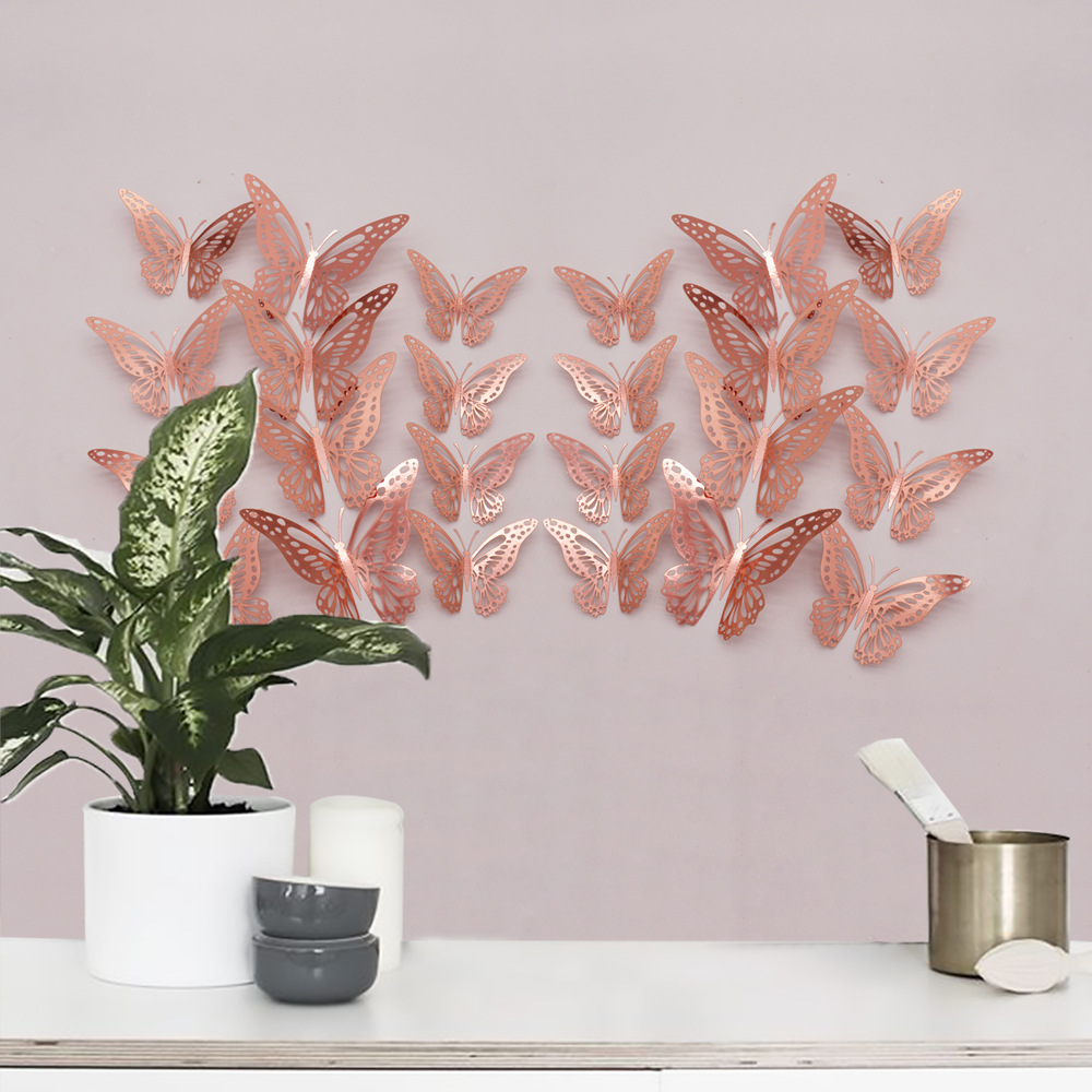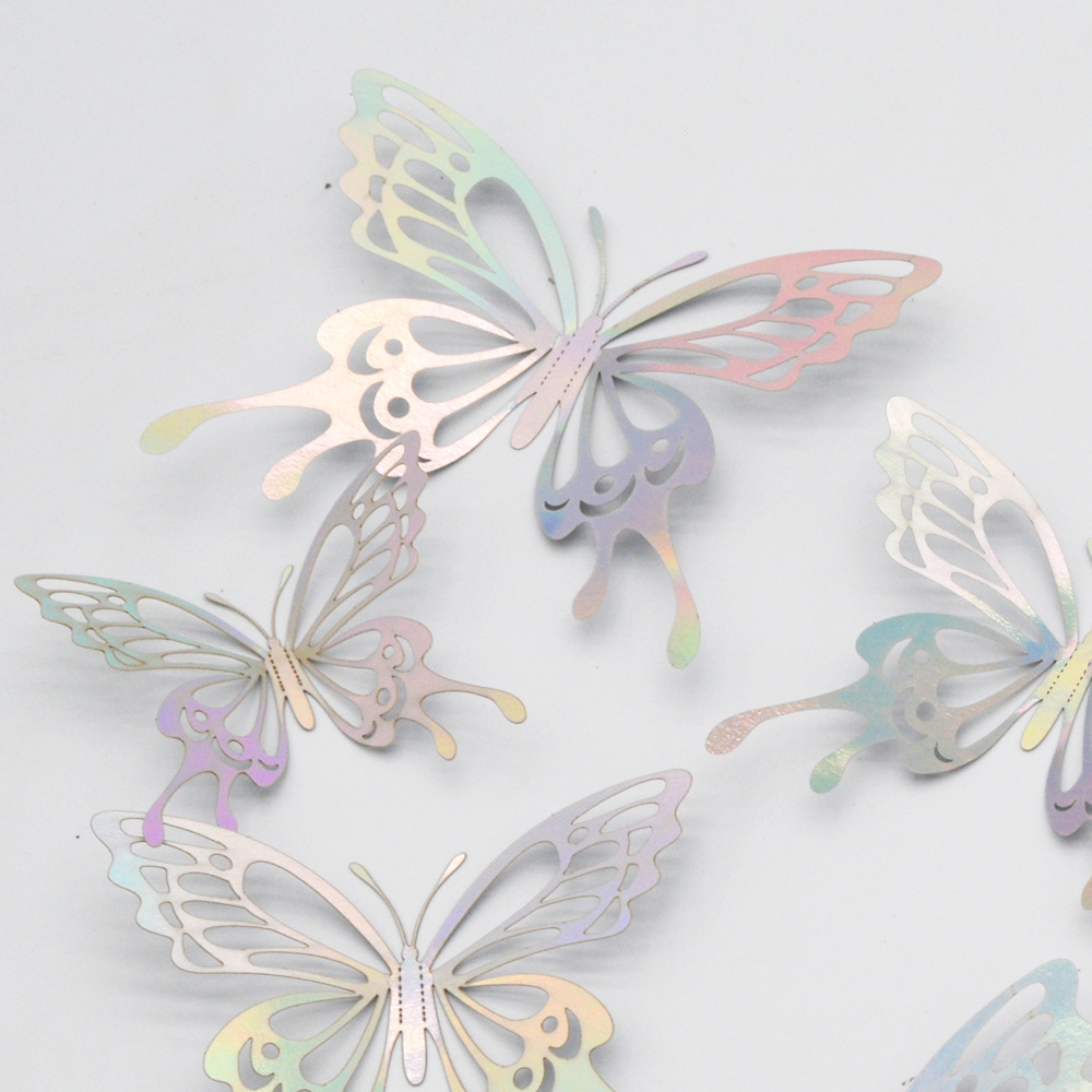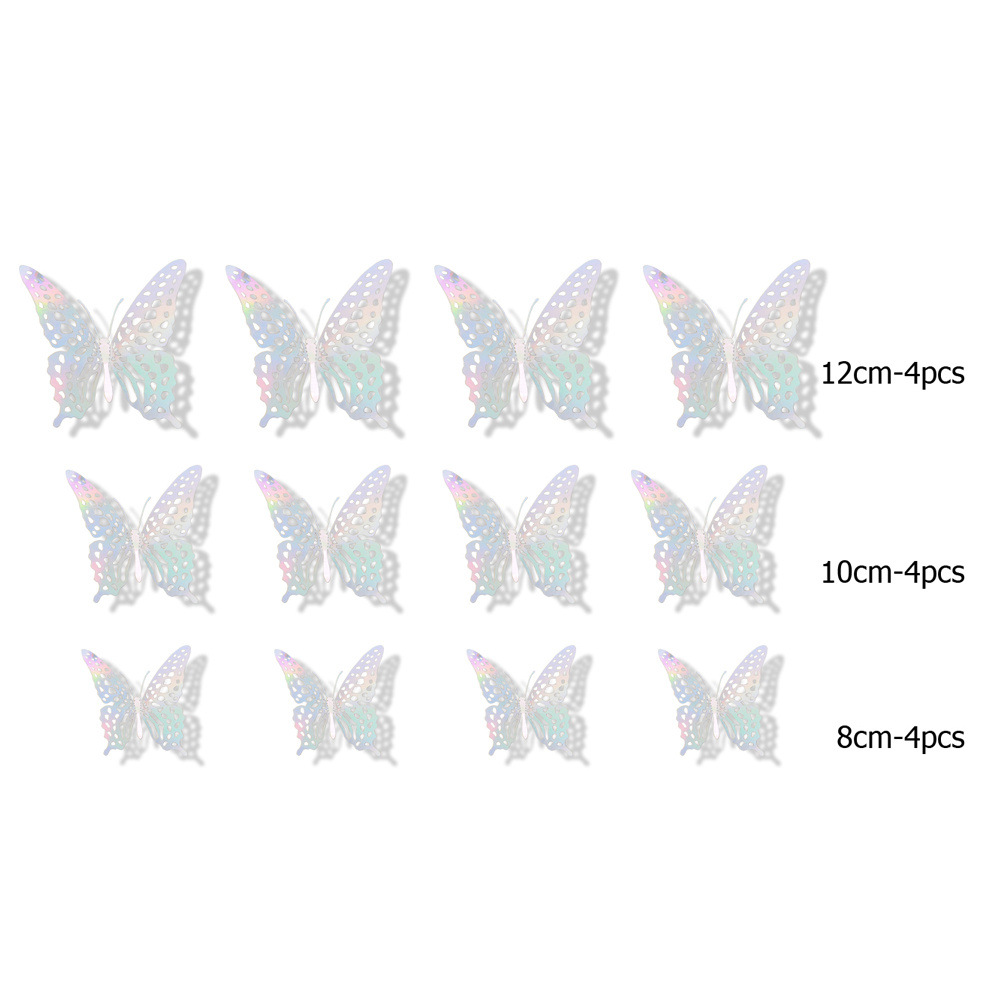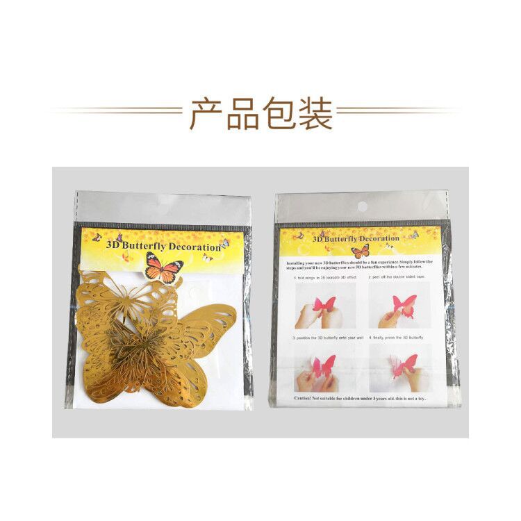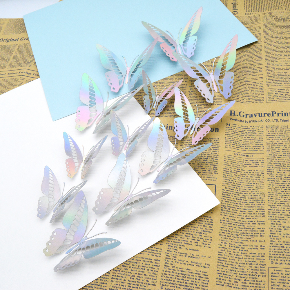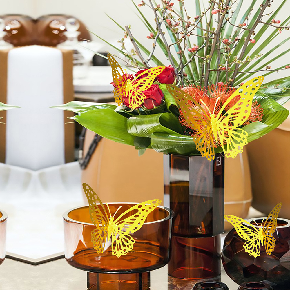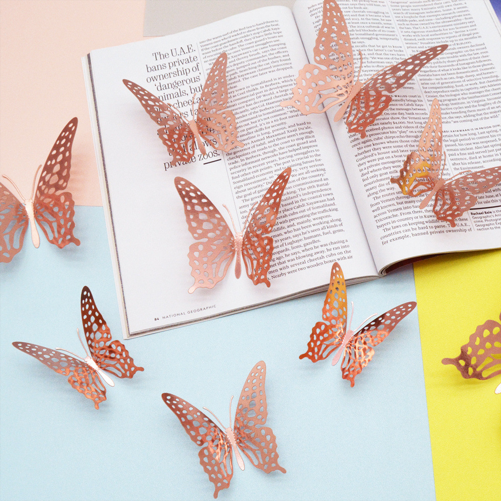12只装 3D金属质感立体镂空蝴蝶墙贴跨境亚马逊婚礼节庆家居装饰