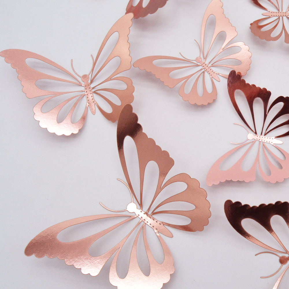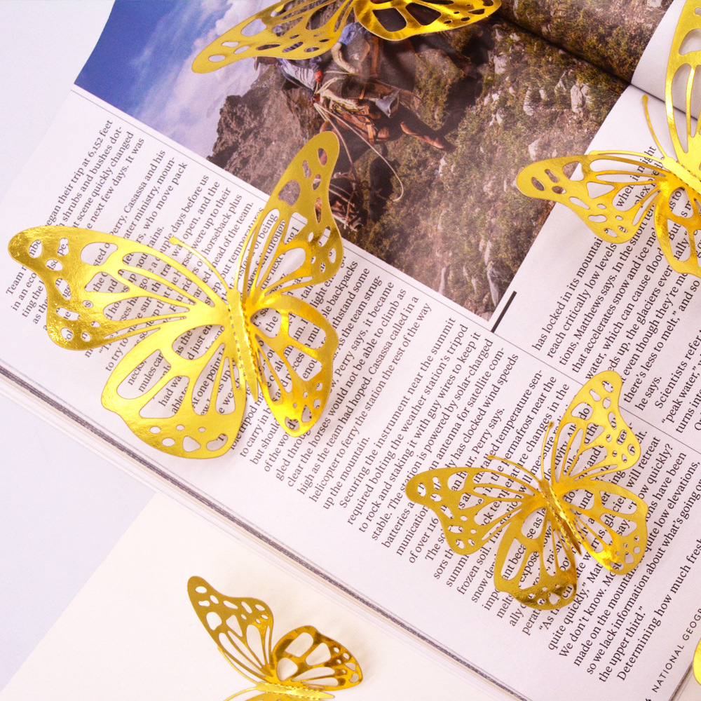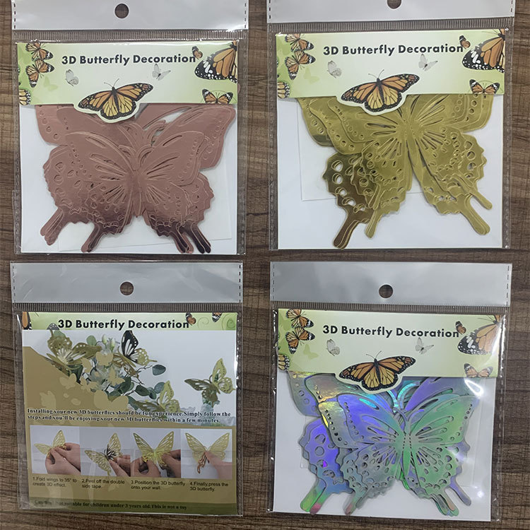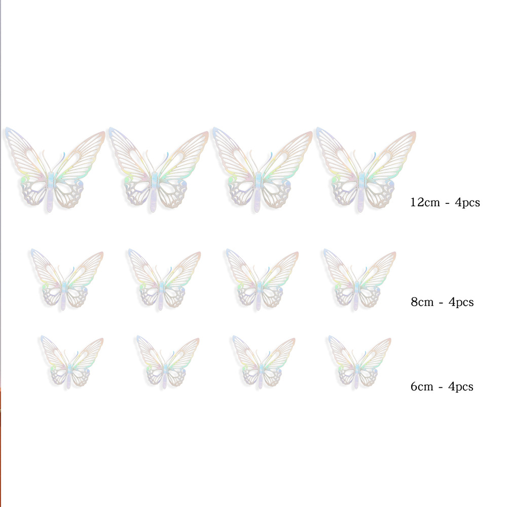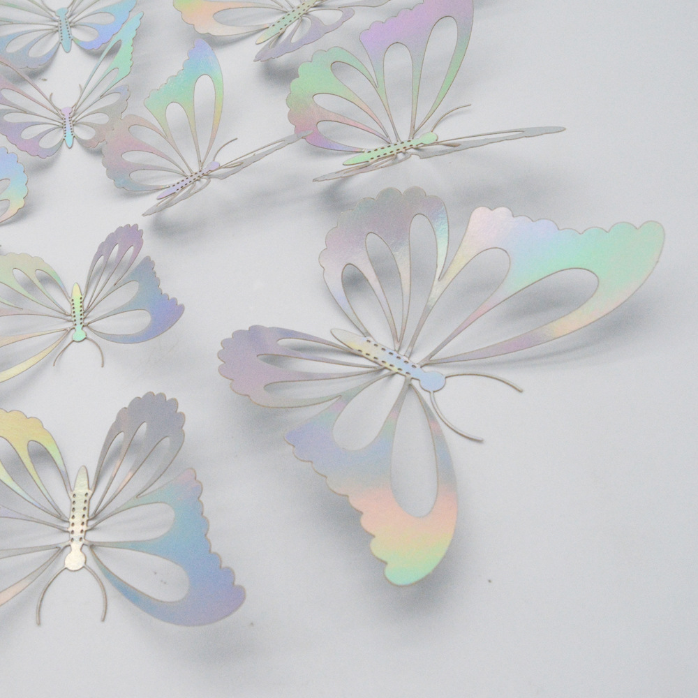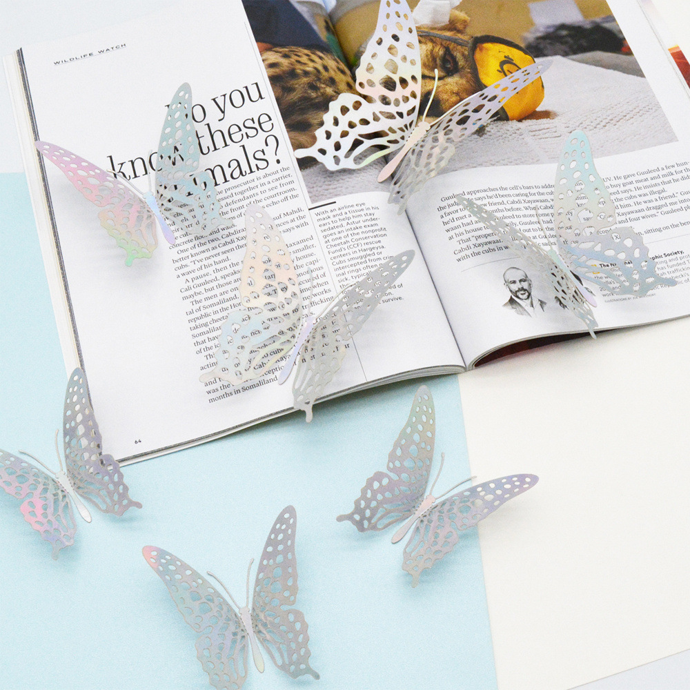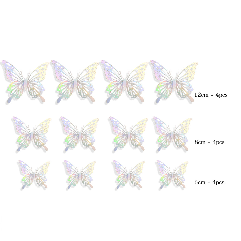 12只装 3D金属质感立体镂空蝴蝶墙贴跨境亚马逊婚礼节庆家居装饰