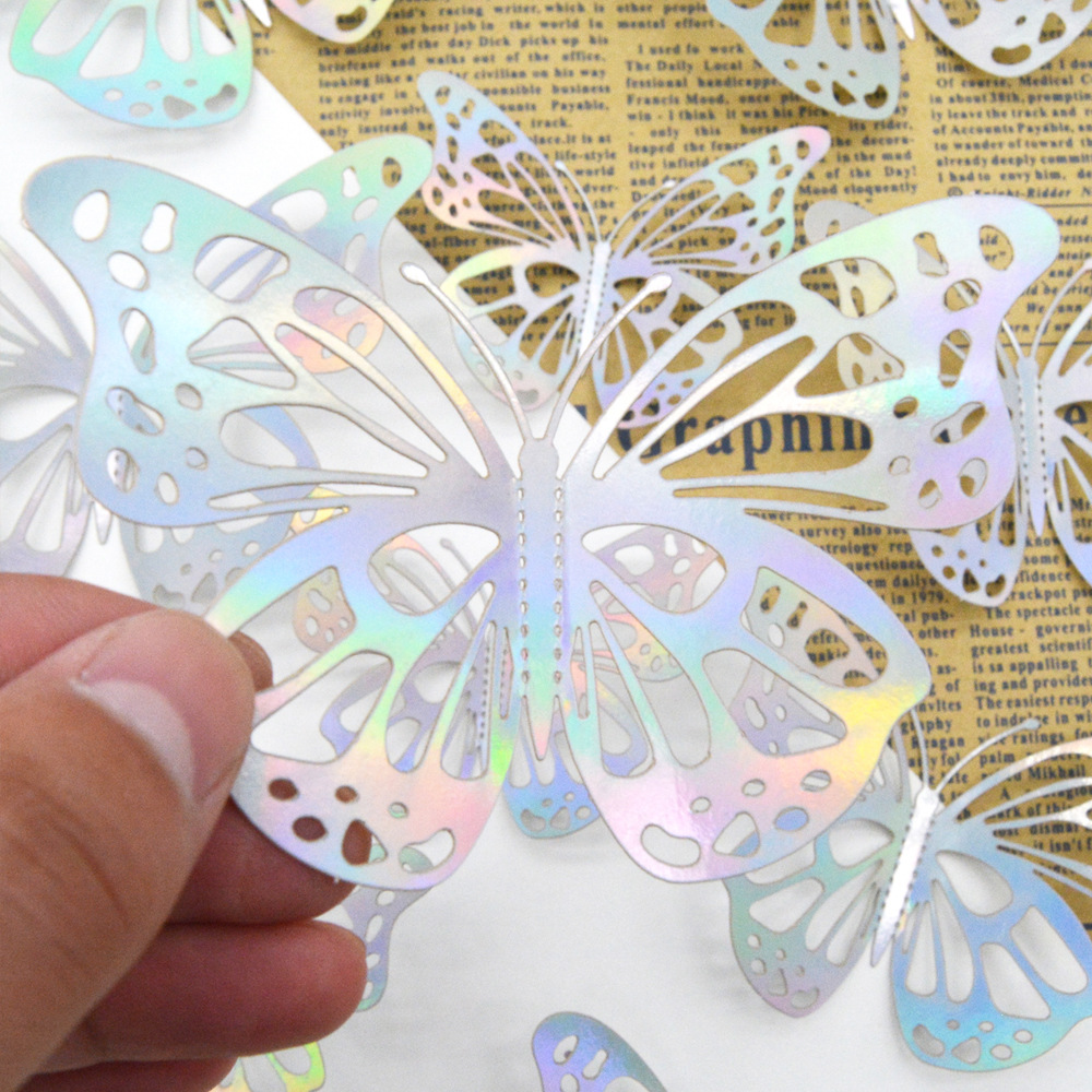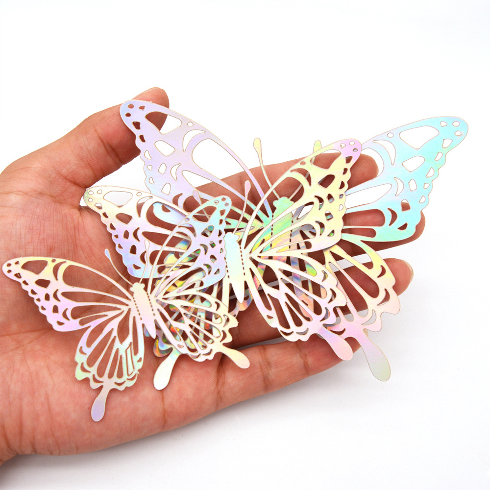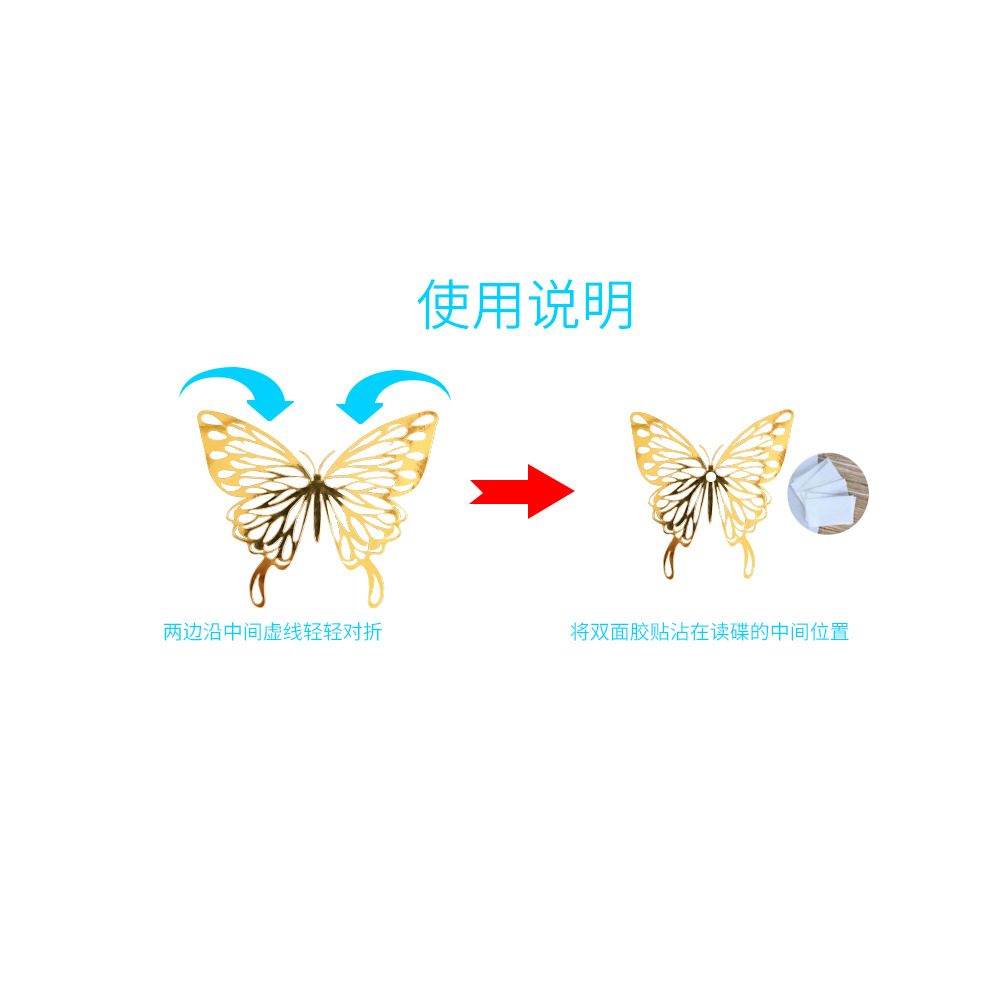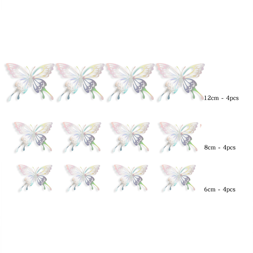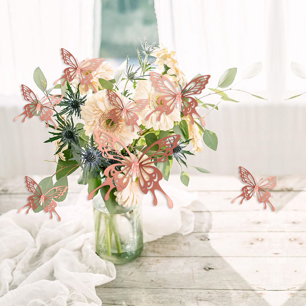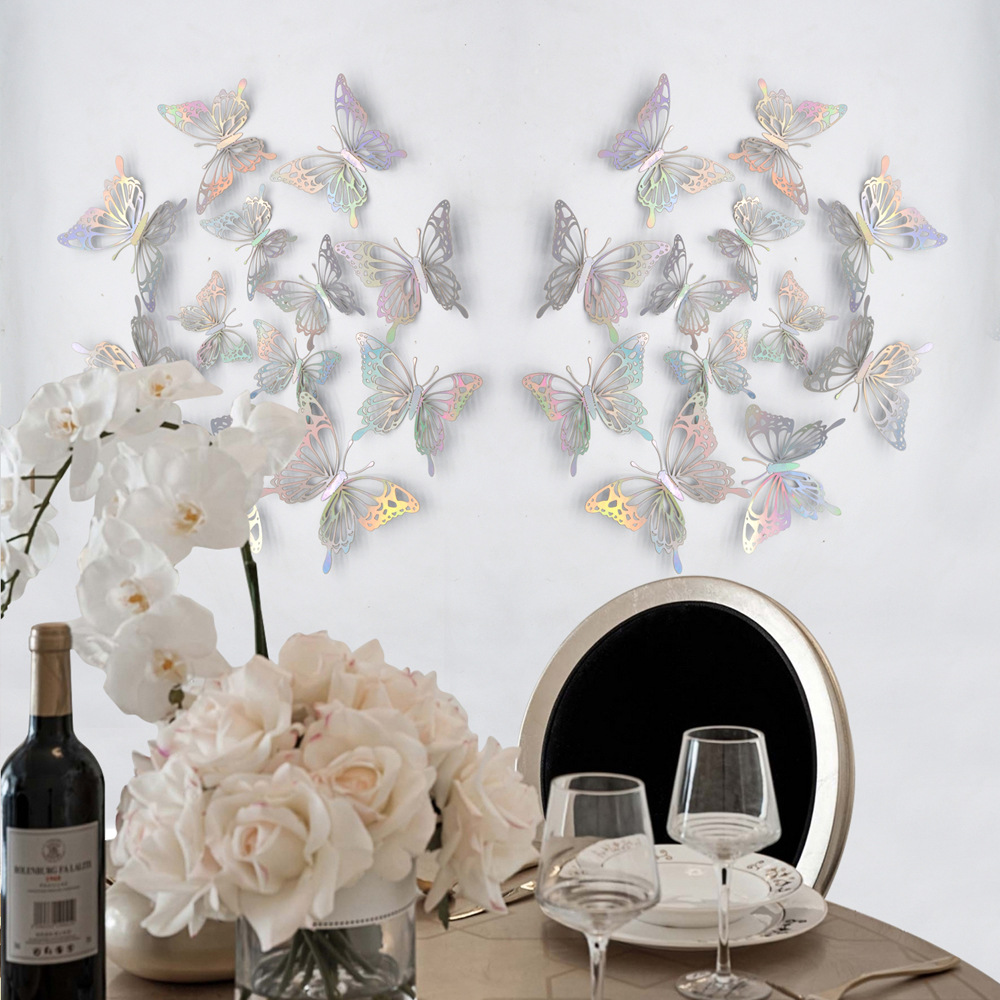 12只装 3D金属质感立体镂空蝴蝶墙贴跨境亚马逊婚礼节庆家居装饰