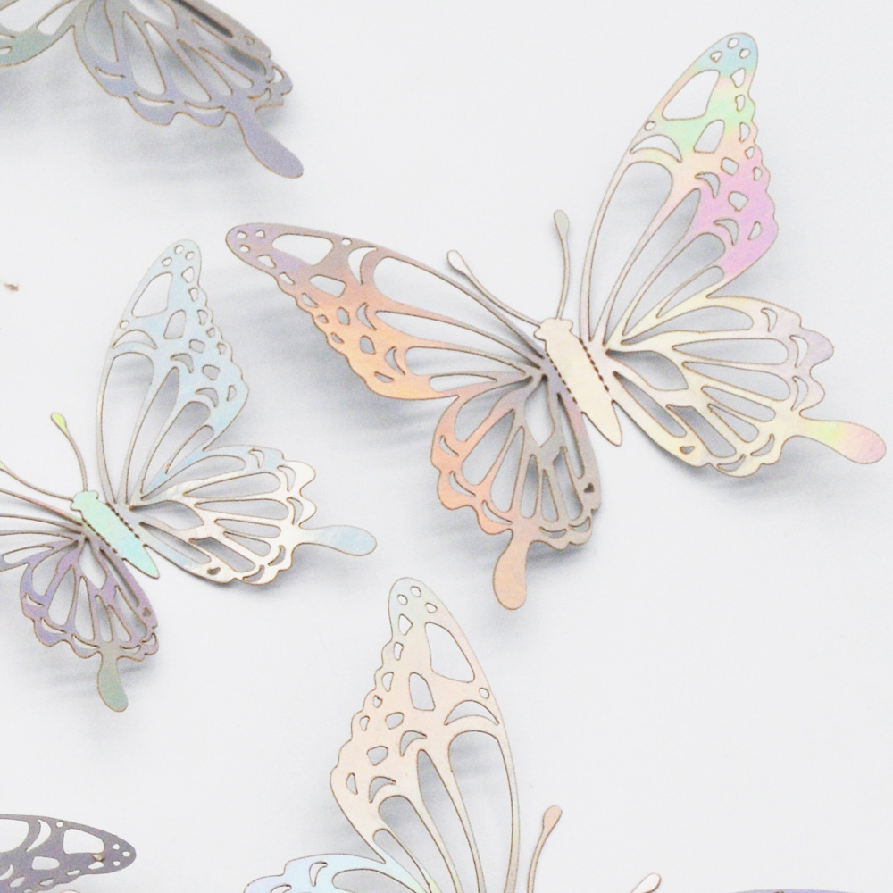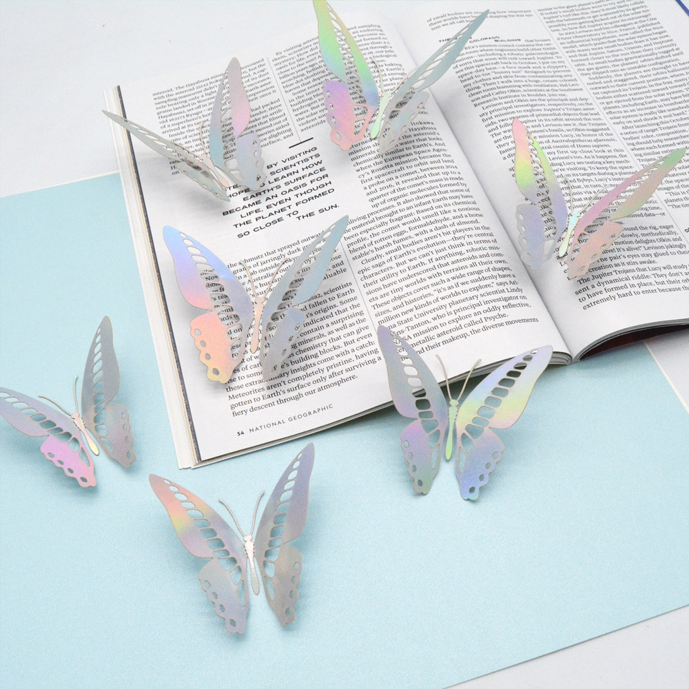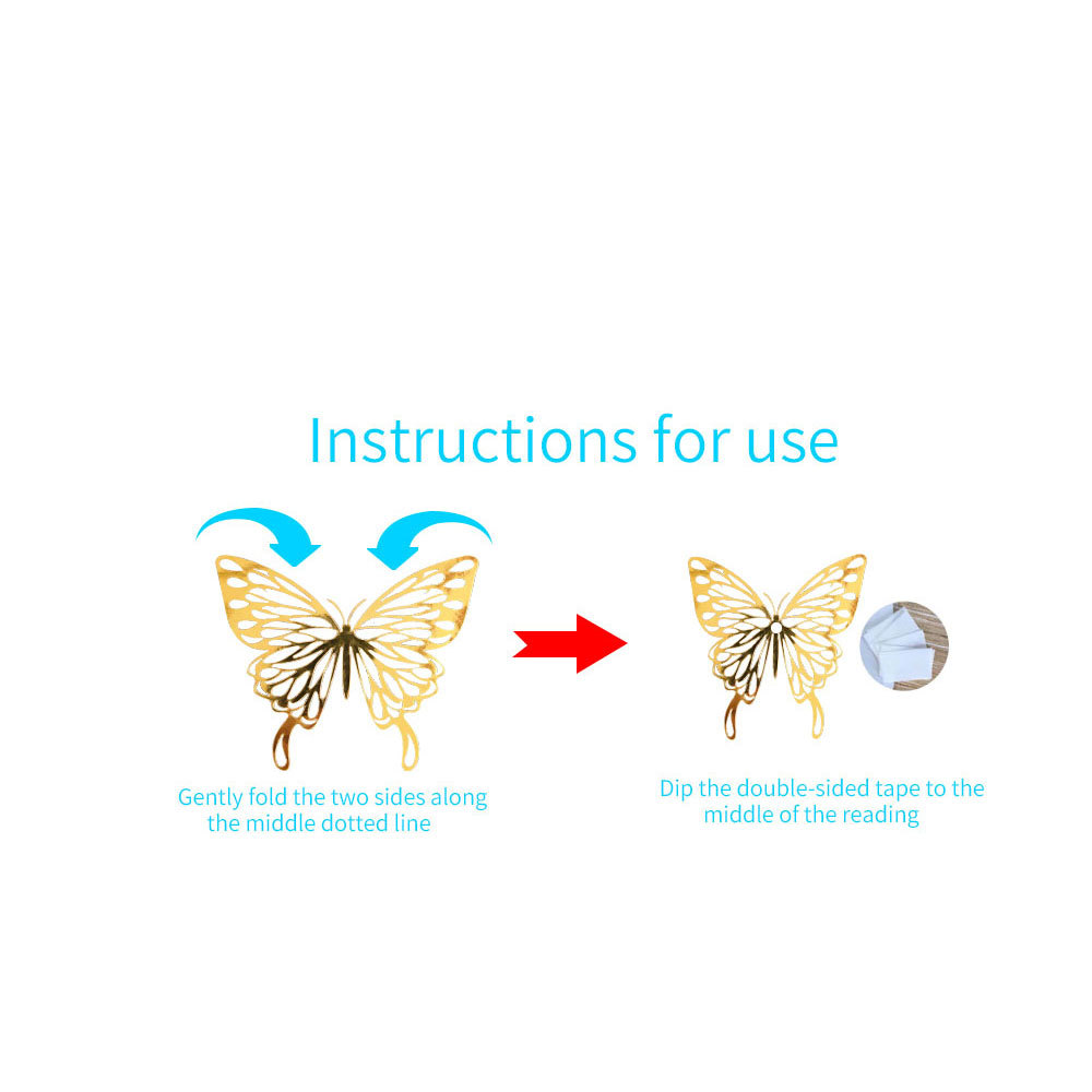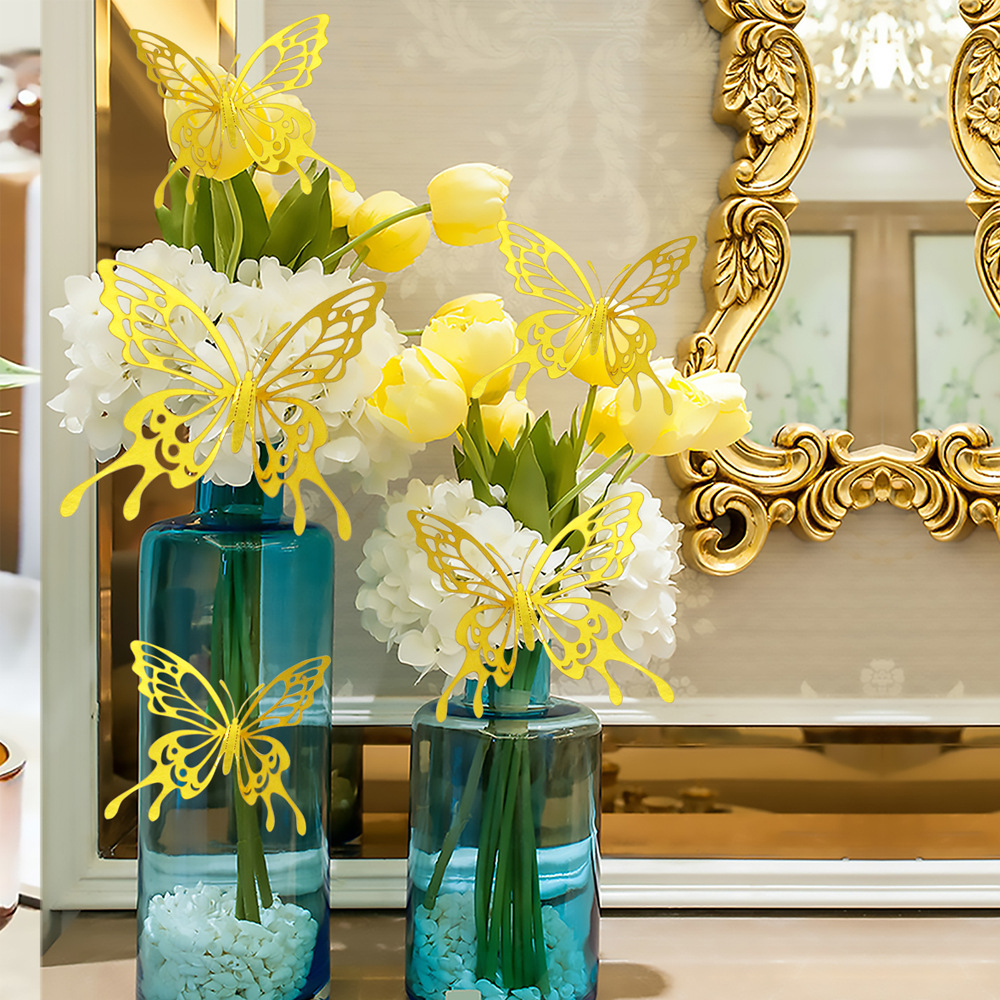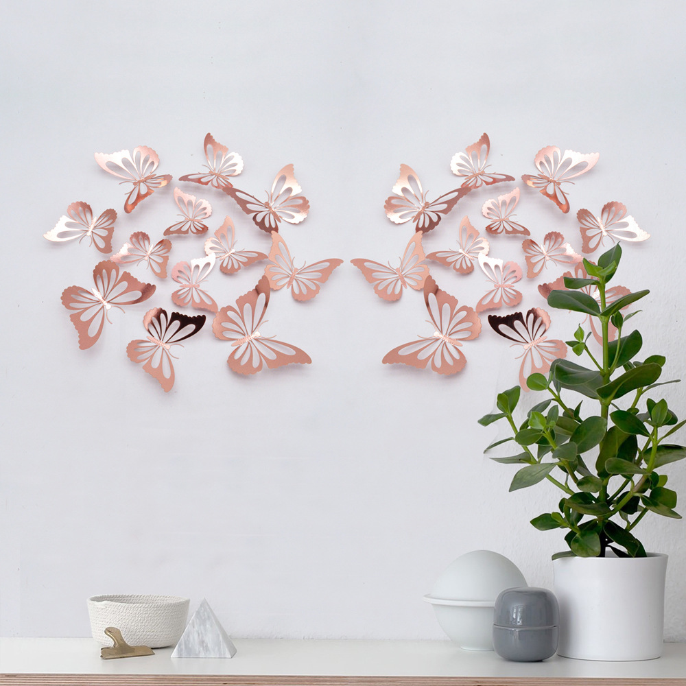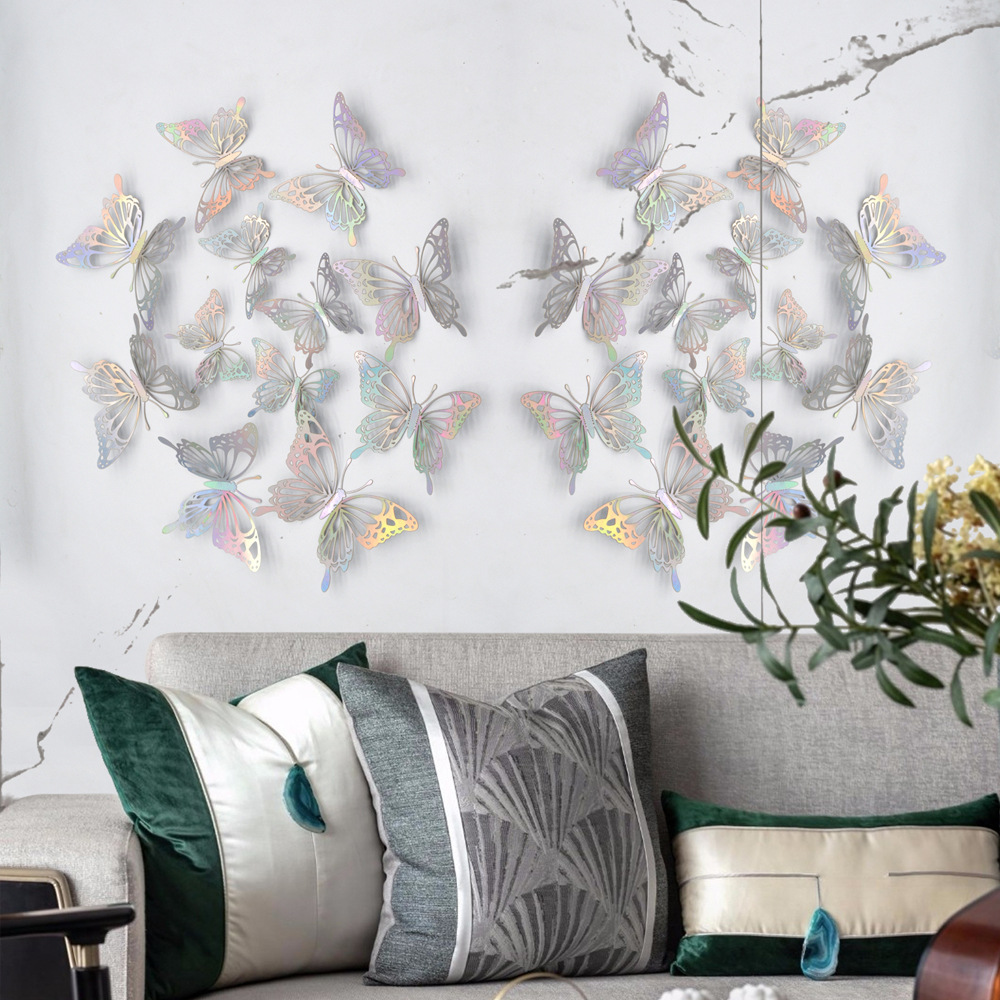 12只装 3D金属质感立体镂空蝴蝶墙贴跨境亚马逊婚礼节庆家居装饰