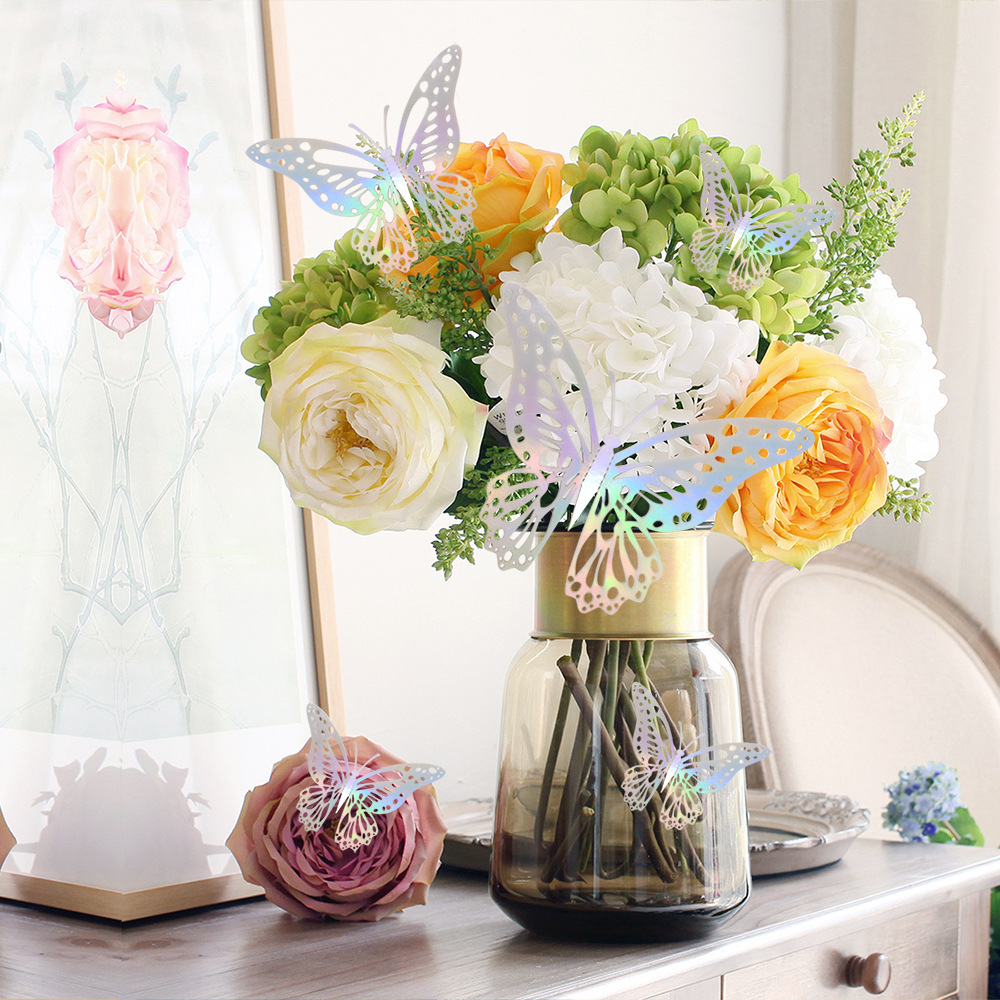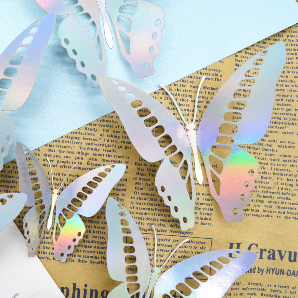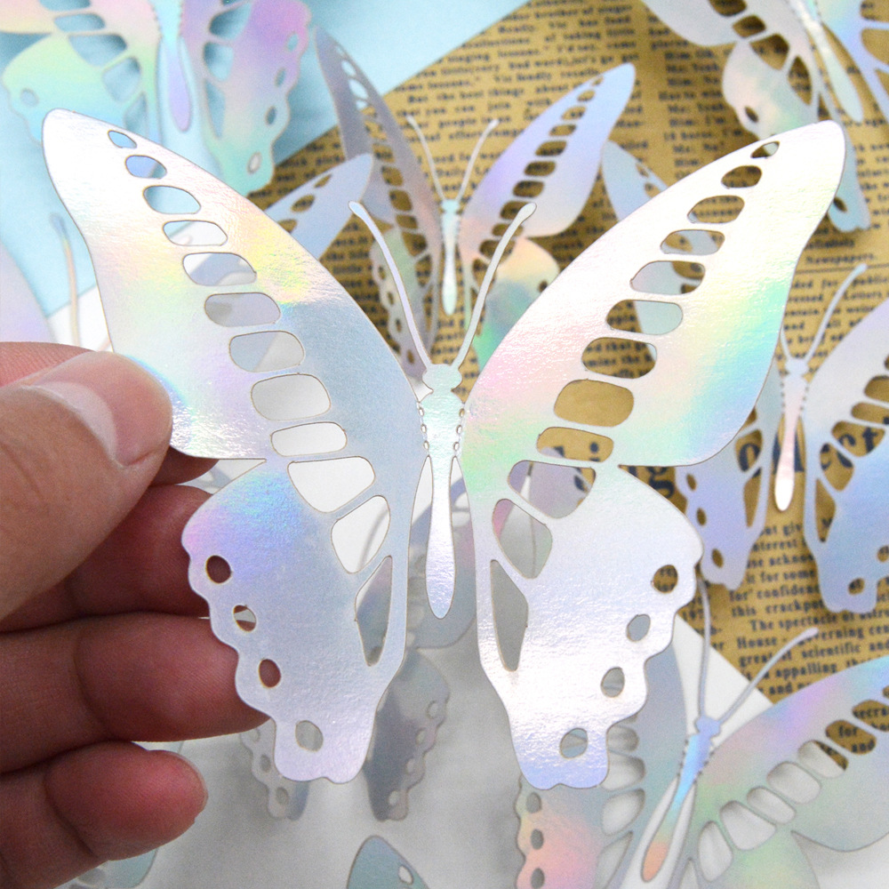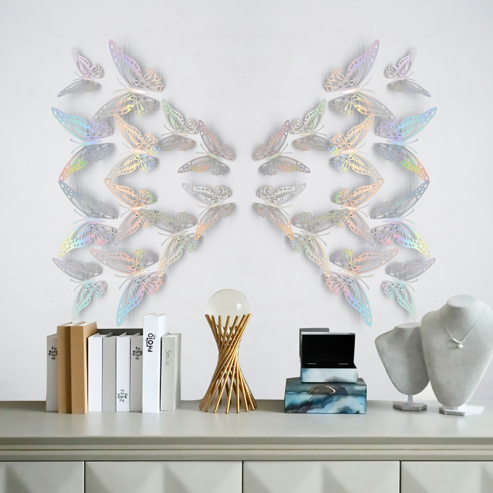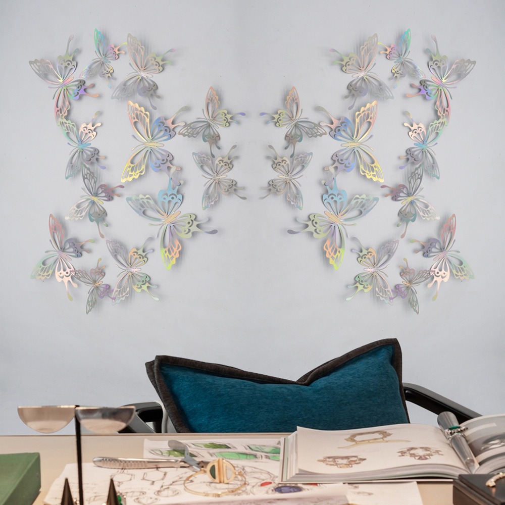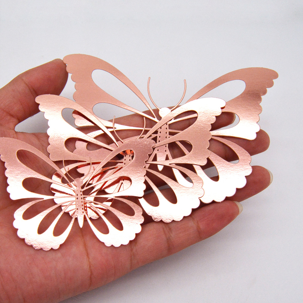 12只装 3D金属质感立体镂空蝴蝶墙贴跨境亚马逊婚礼节庆家居装饰