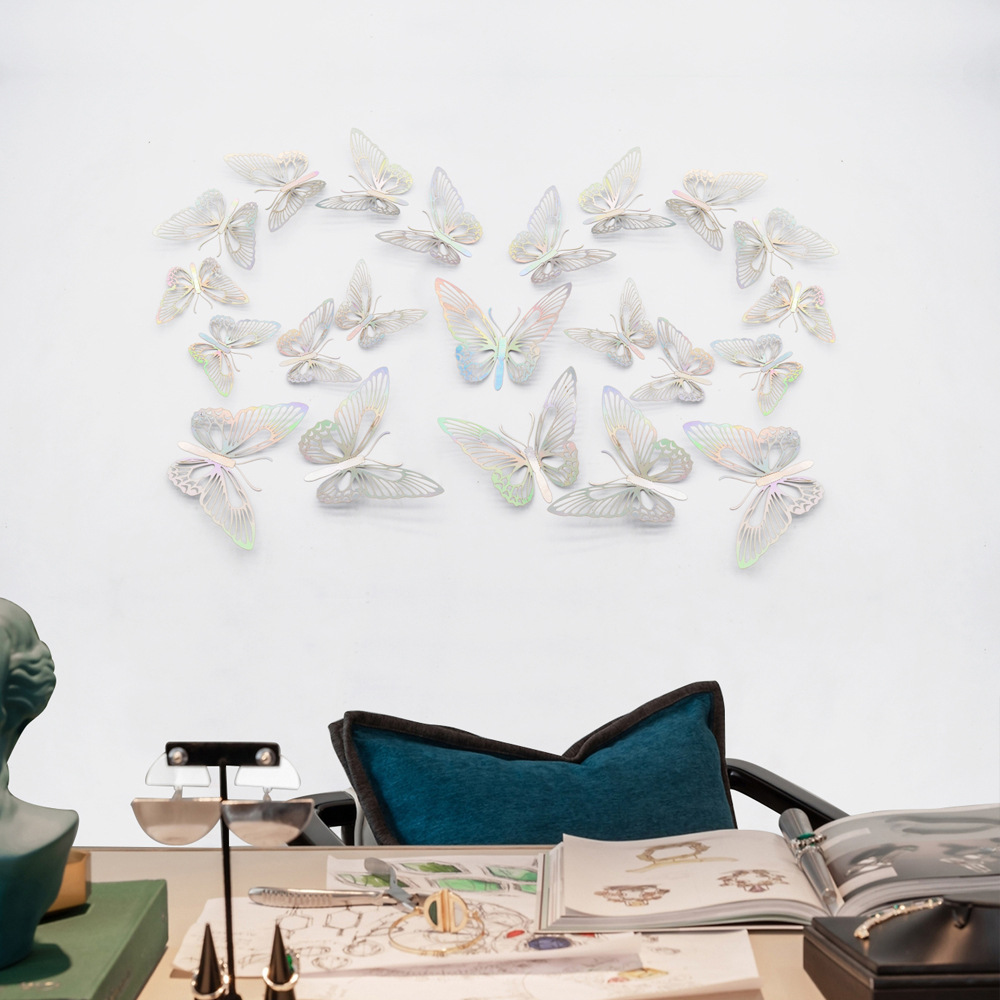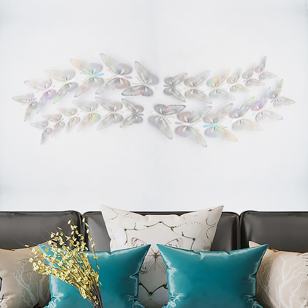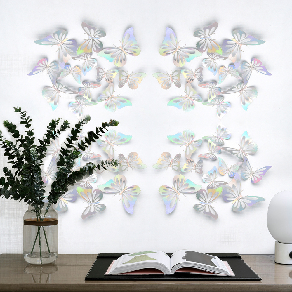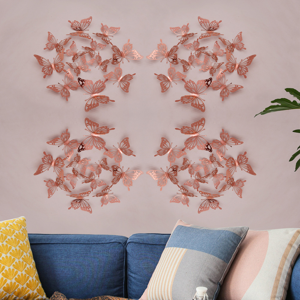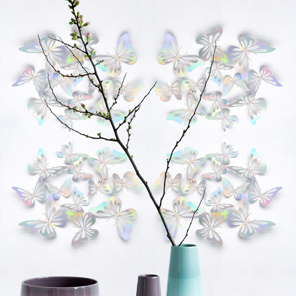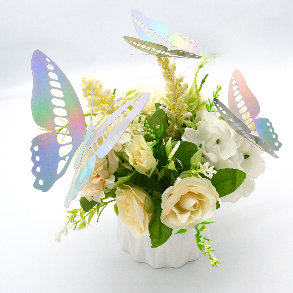 12只装 3D金属质感立体镂空蝴蝶墙贴跨境亚马逊婚礼节庆家居装饰