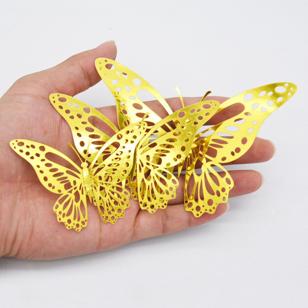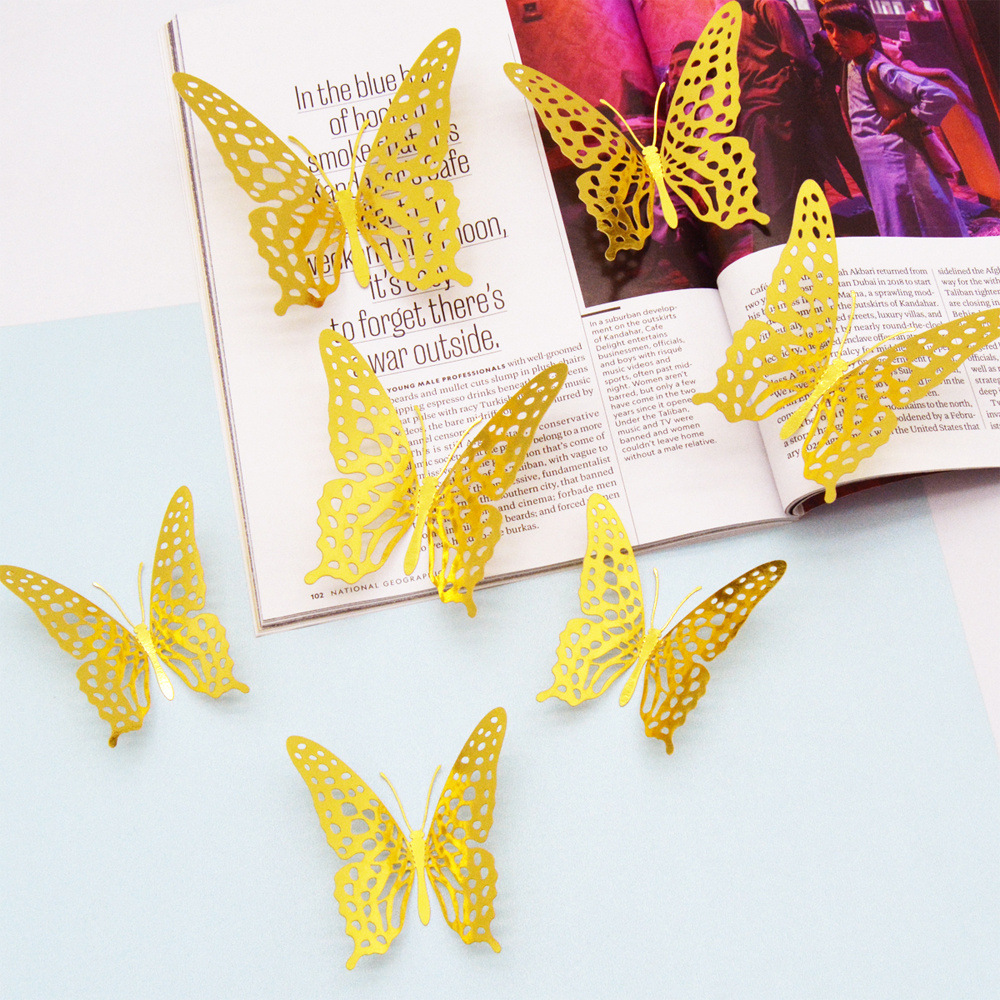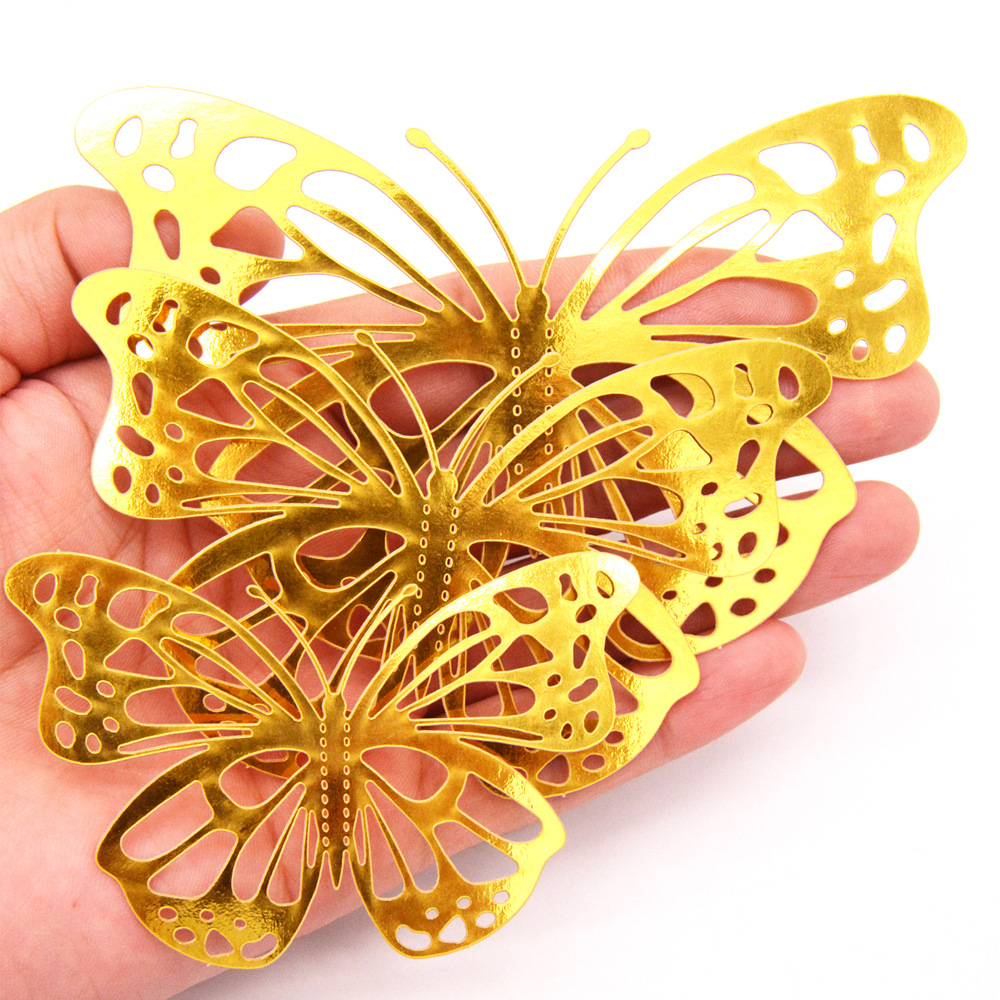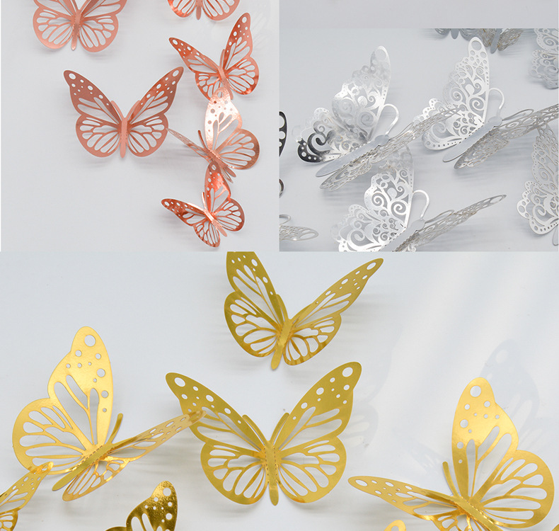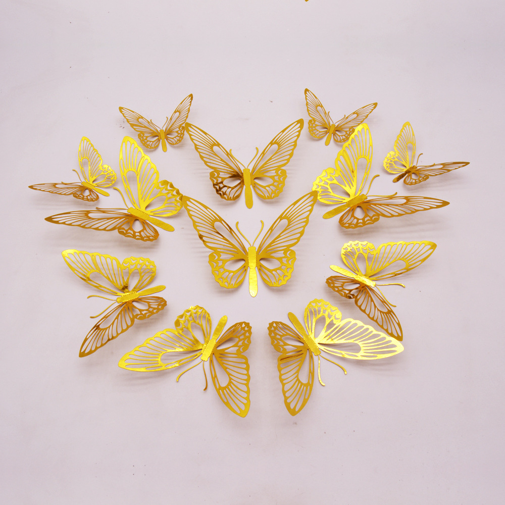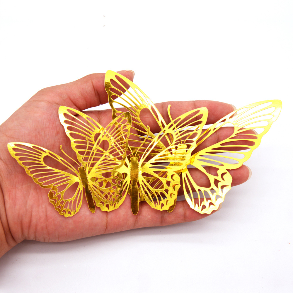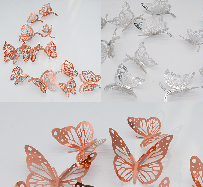 12 pcs 3d metal texture three-dimensional hollow butterfly wall stickers cross-border amazon wedding festival home decoration