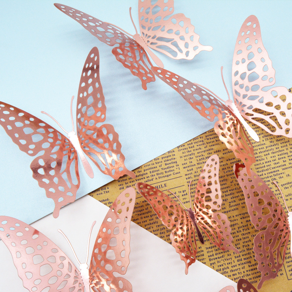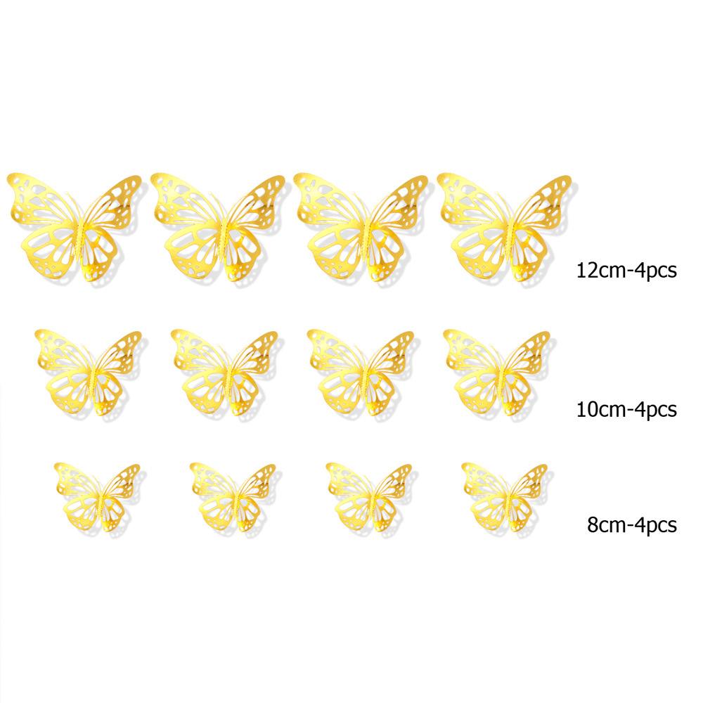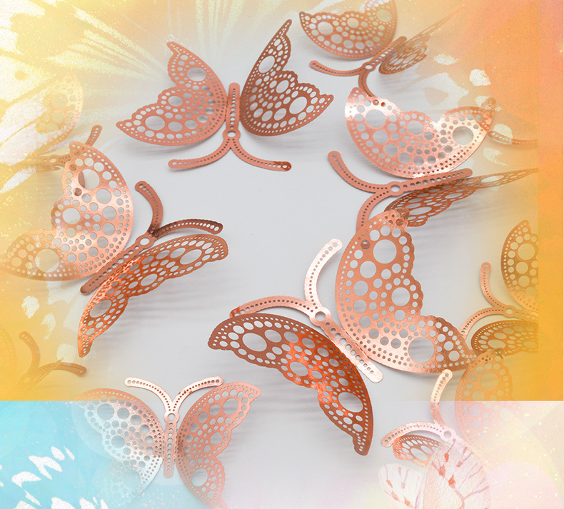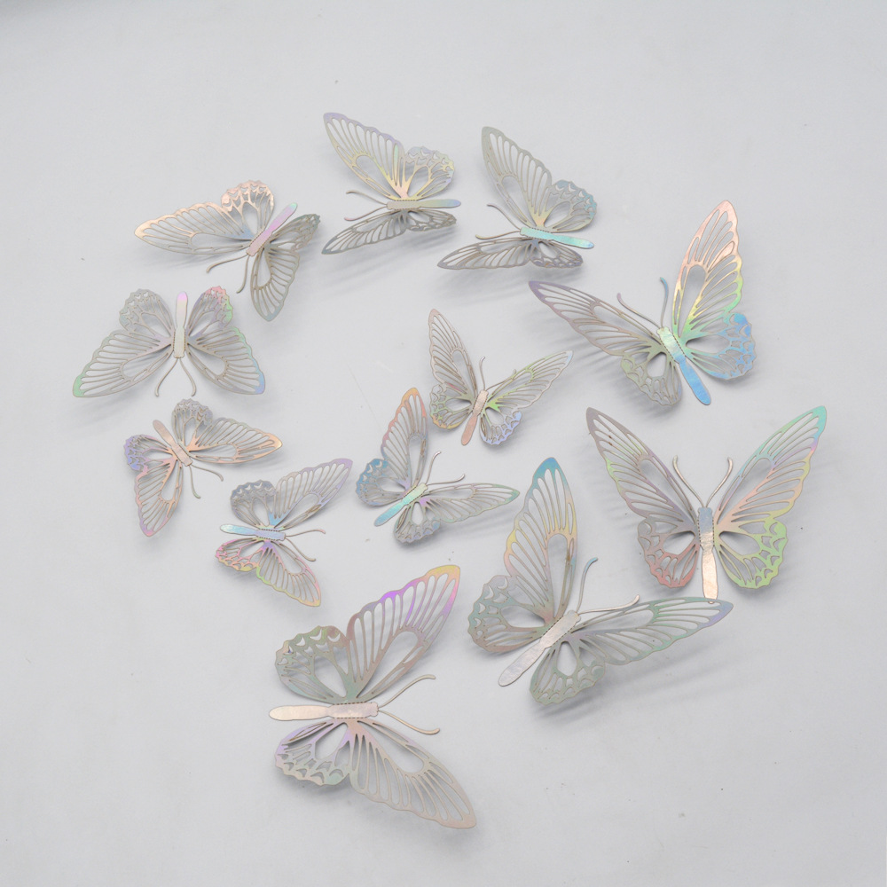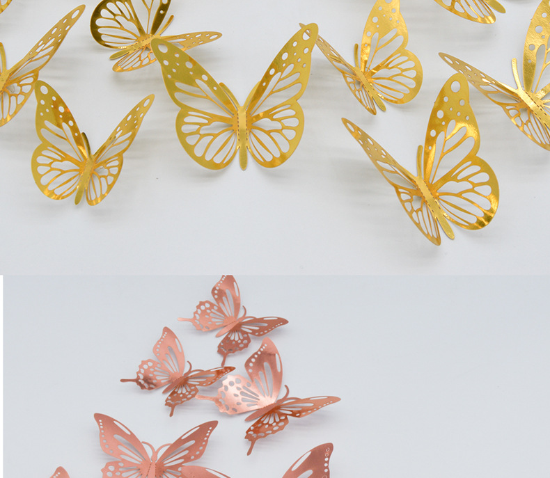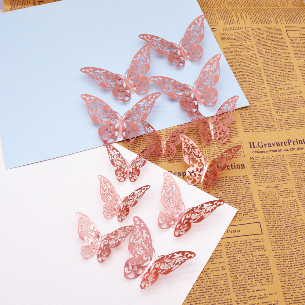 12 pcs 3d metal texture three-dimensional hollow butterfly wall stickers cross-border amazon wedding festival home decoration