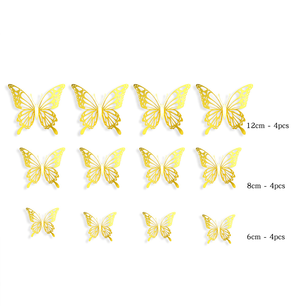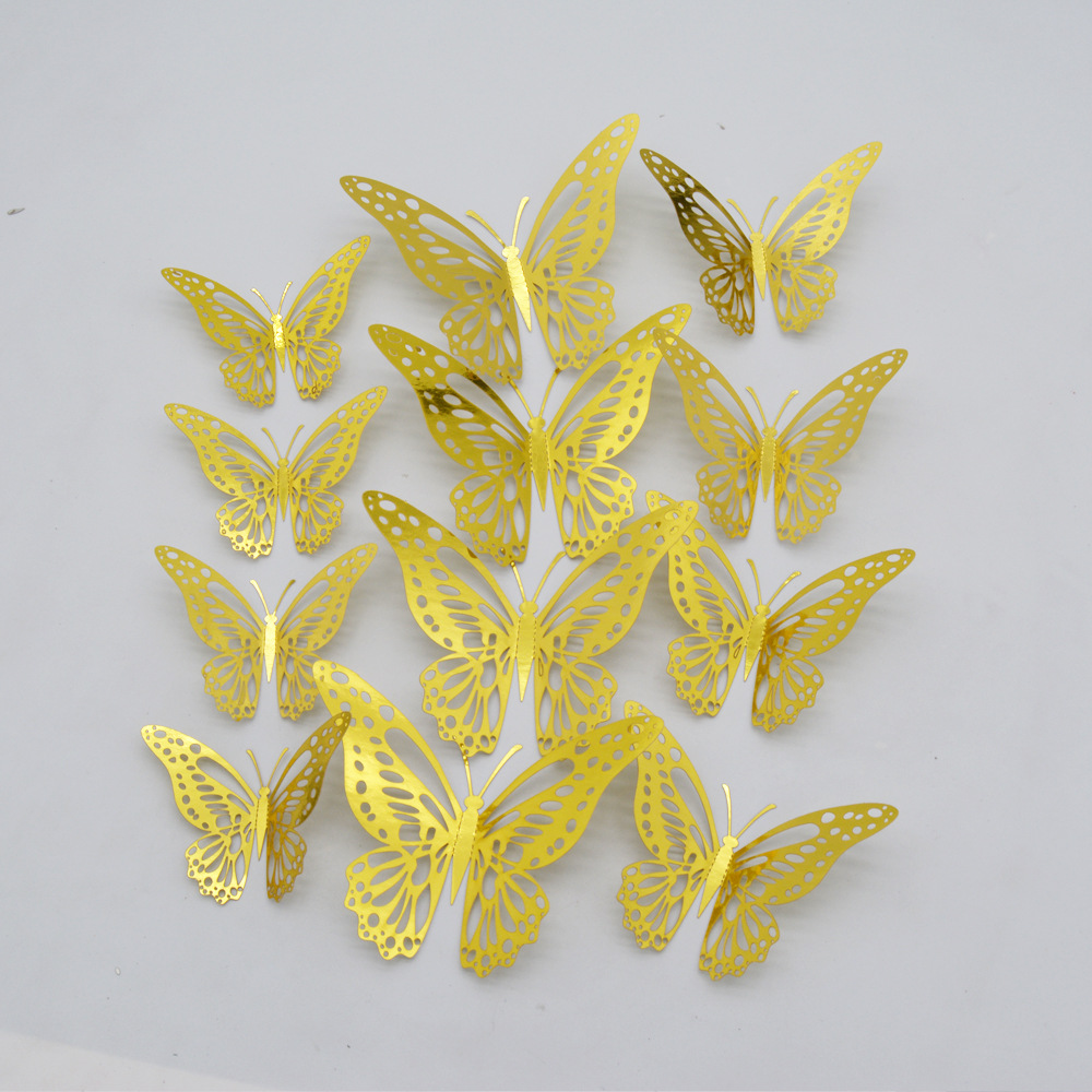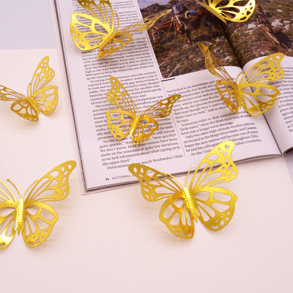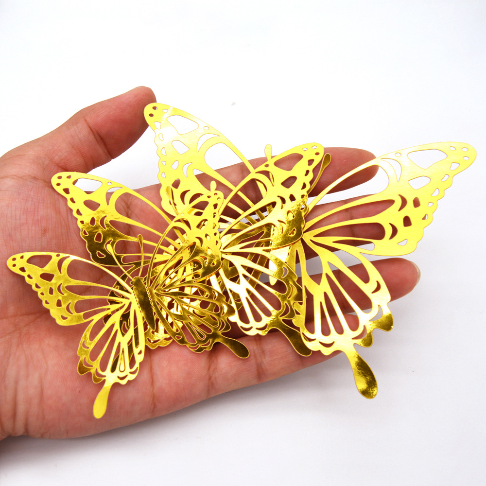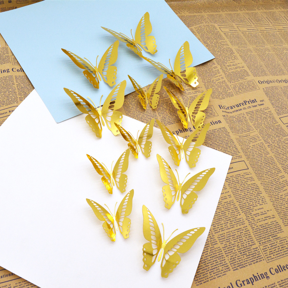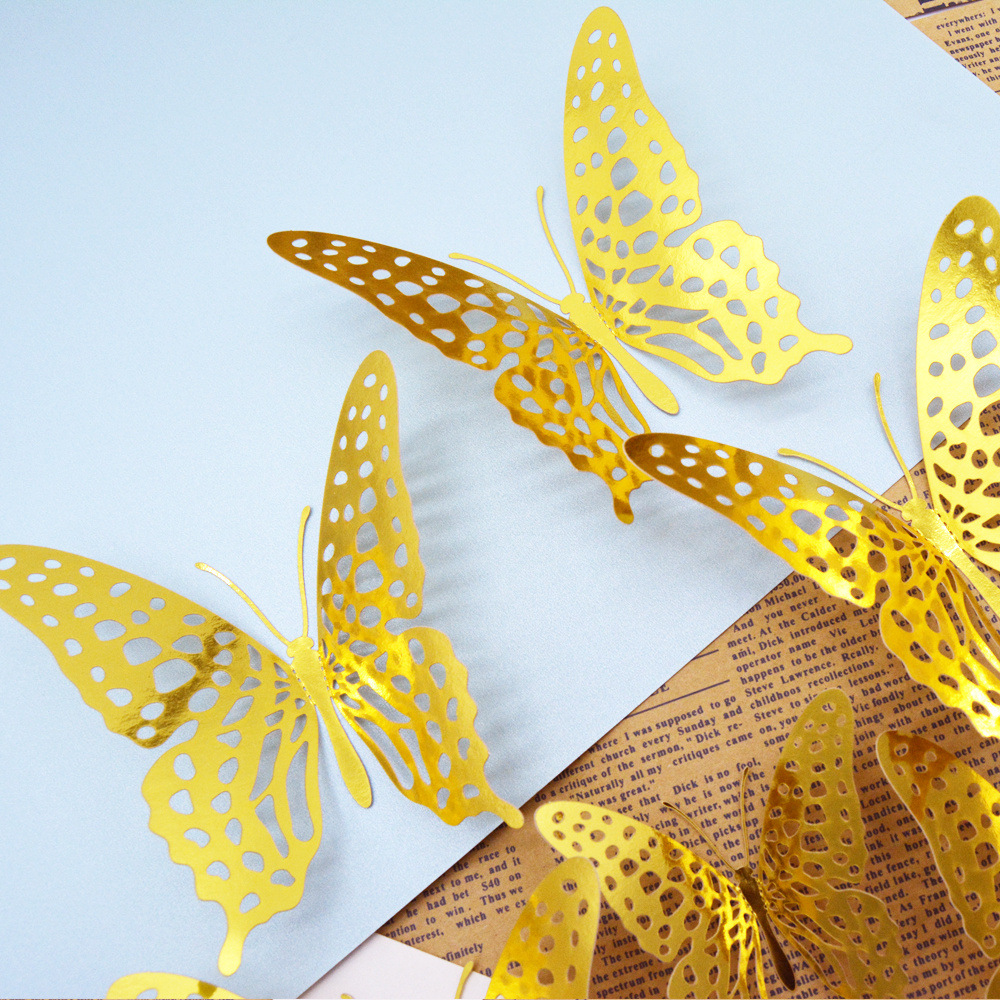 12 pcs 3d metal texture three-dimensional hollow butterfly wall stickers cross-border amazon wedding festival home decoration