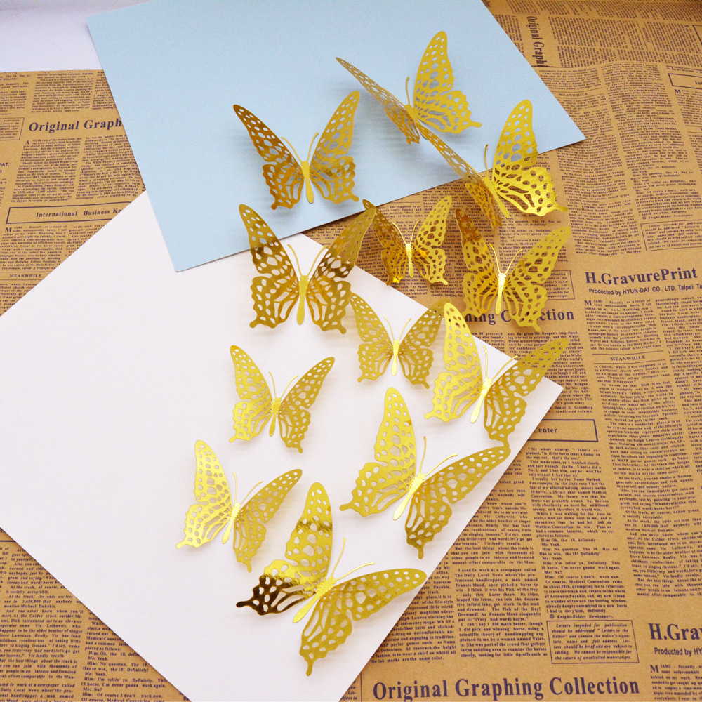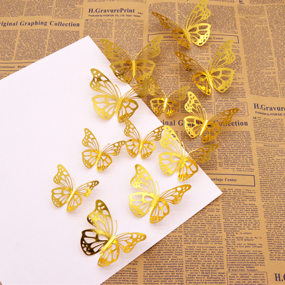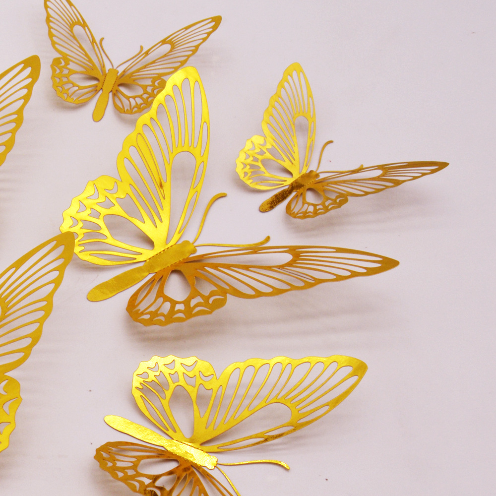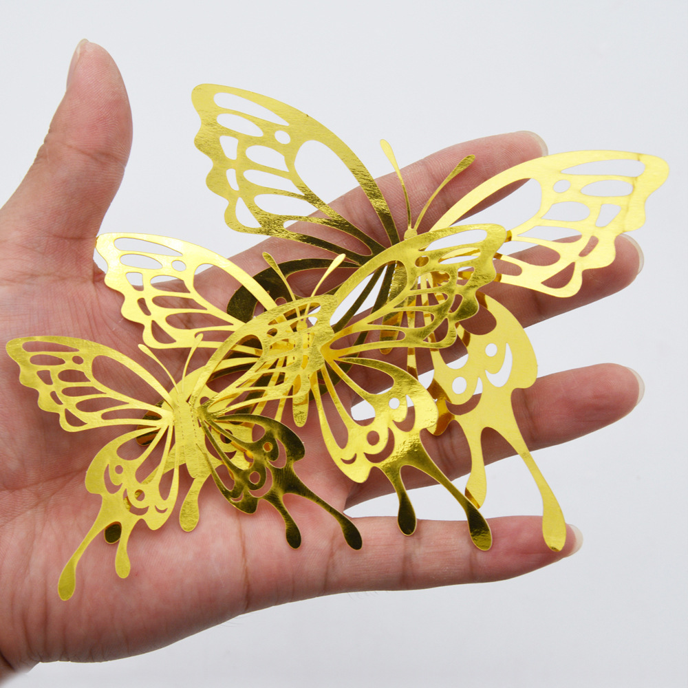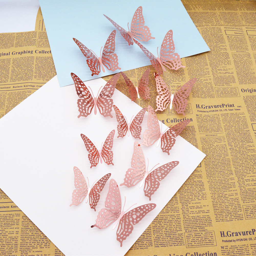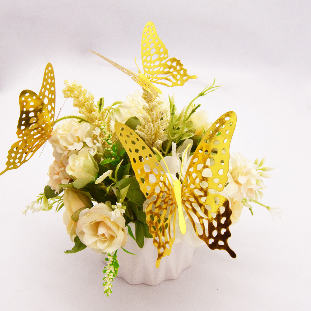 12 pcs 3d metal texture three-dimensional hollow butterfly wall stickers cross-border amazon wedding festival home decoration