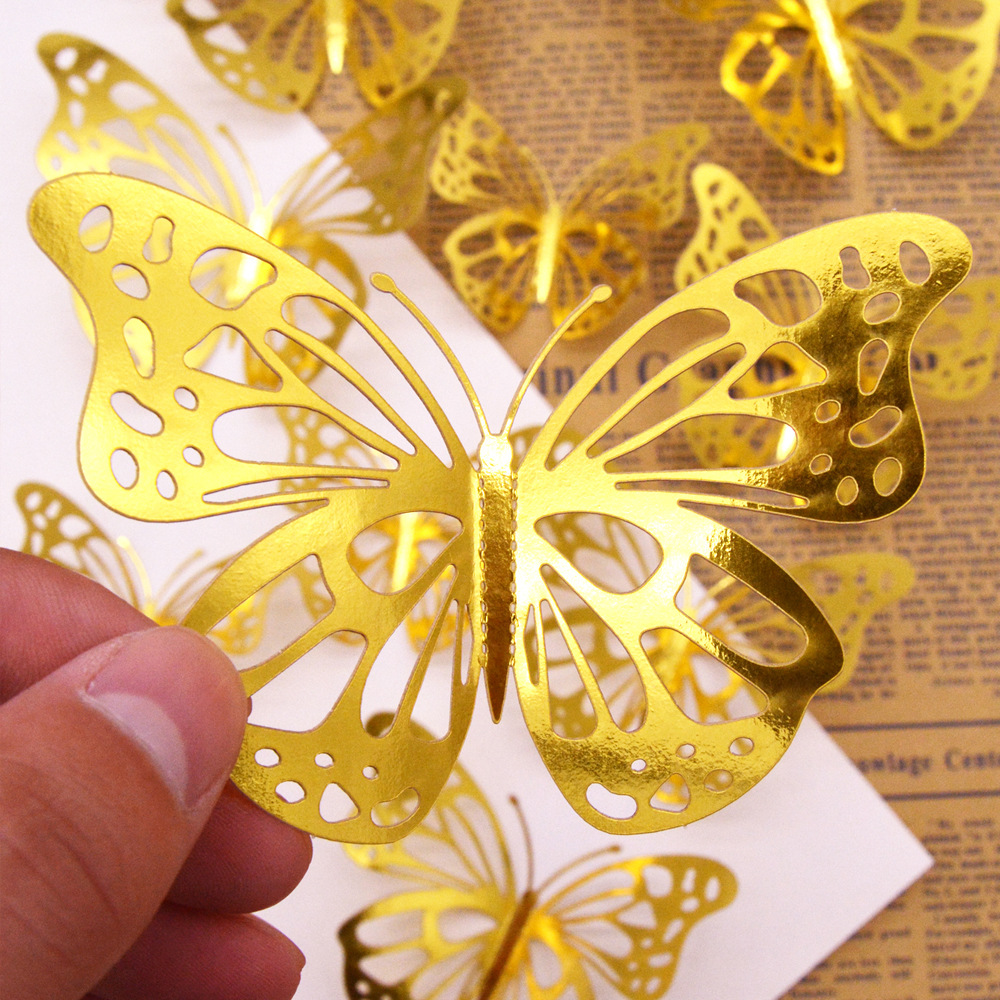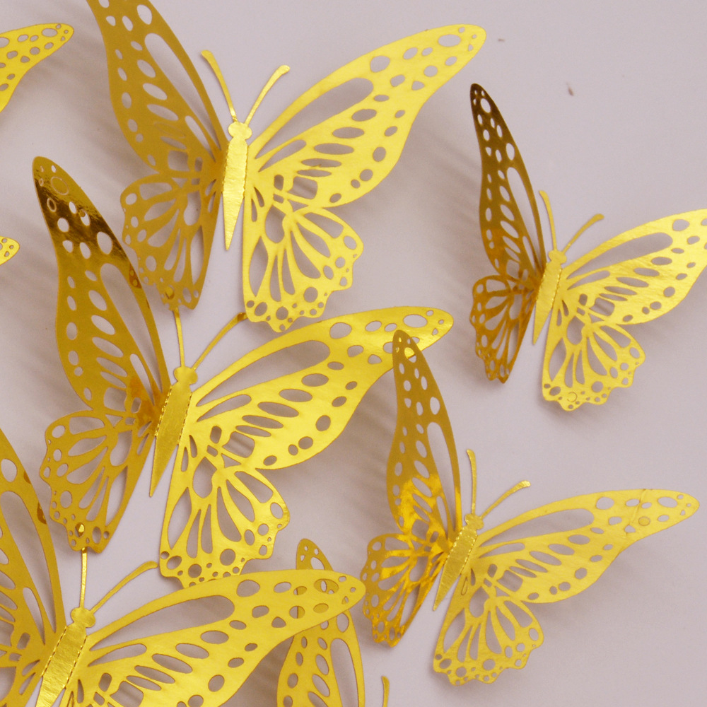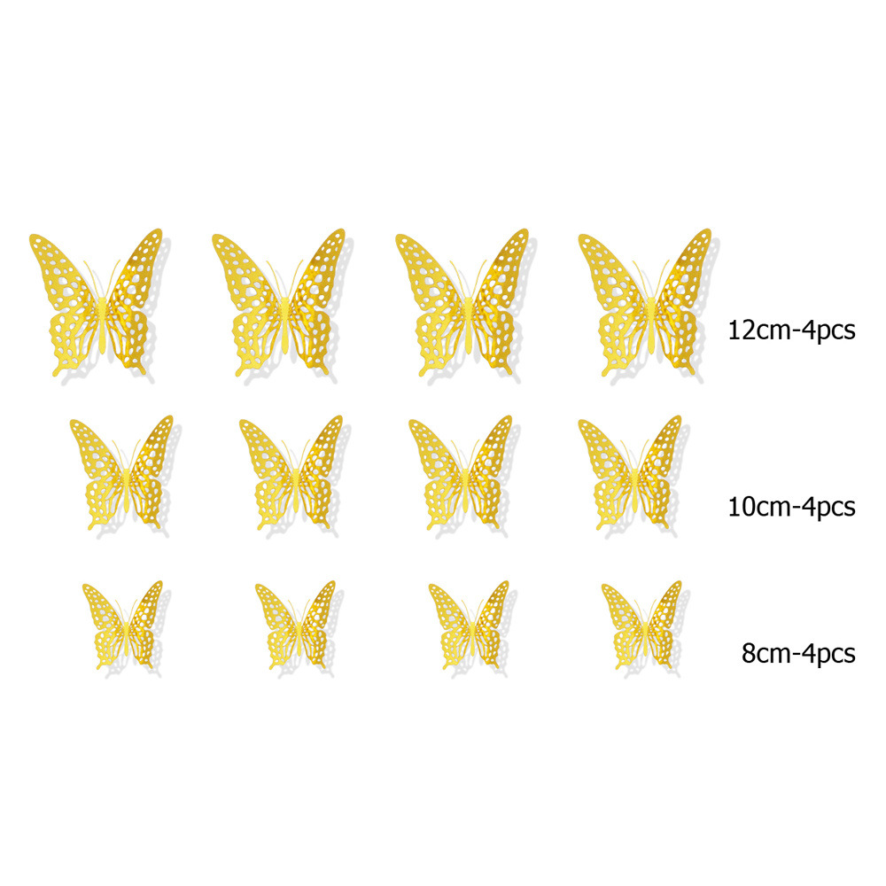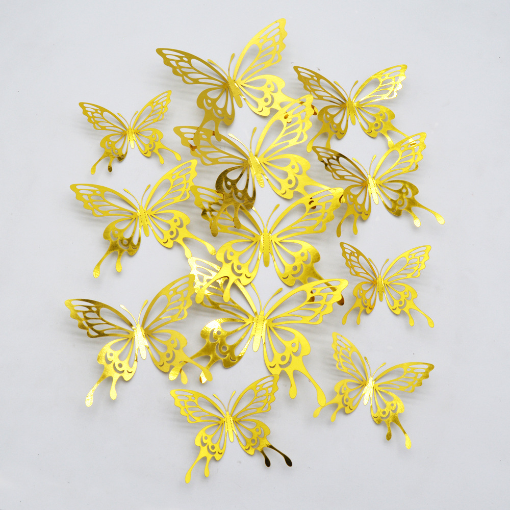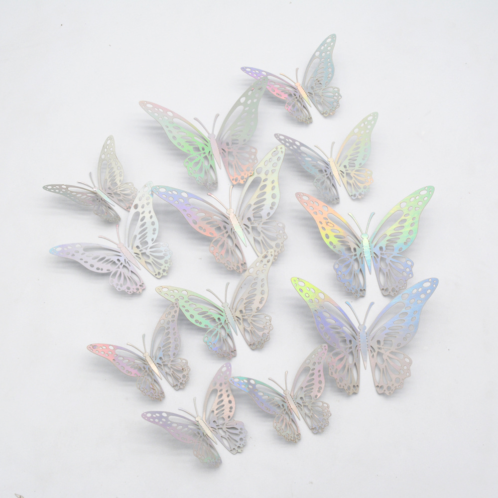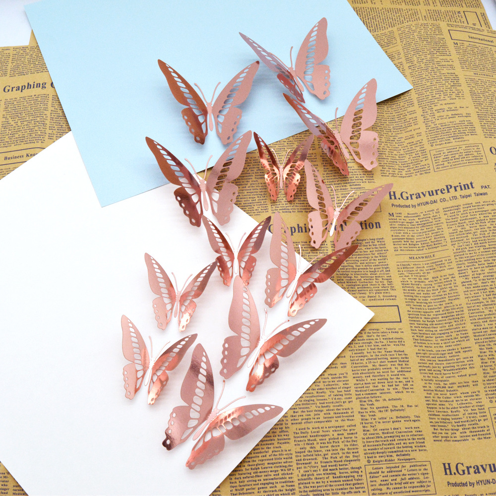 12 pcs 3d metal texture three-dimensional hollow butterfly wall stickers cross-border amazon wedding festival home decoration
