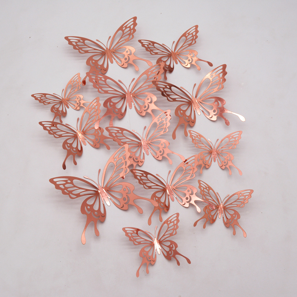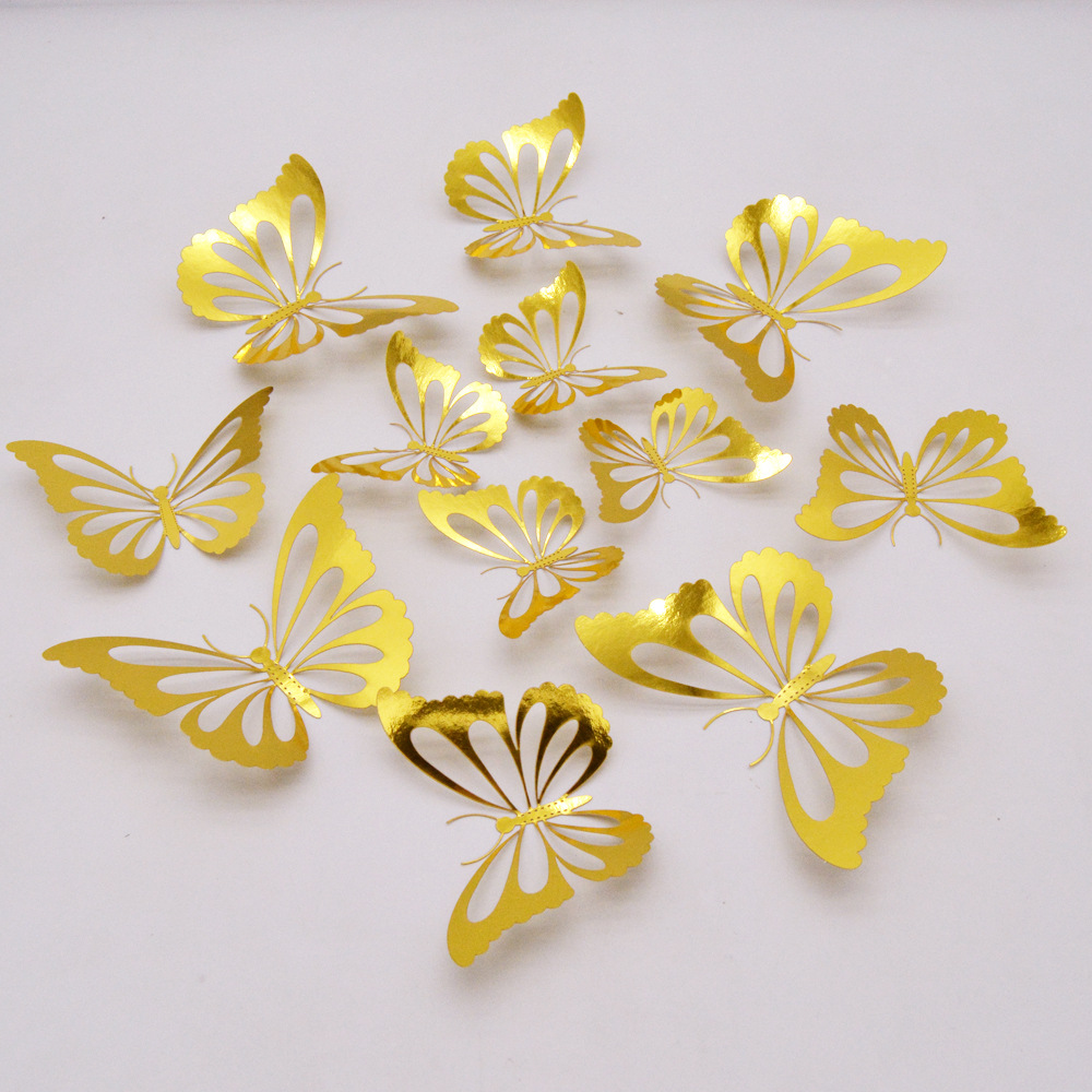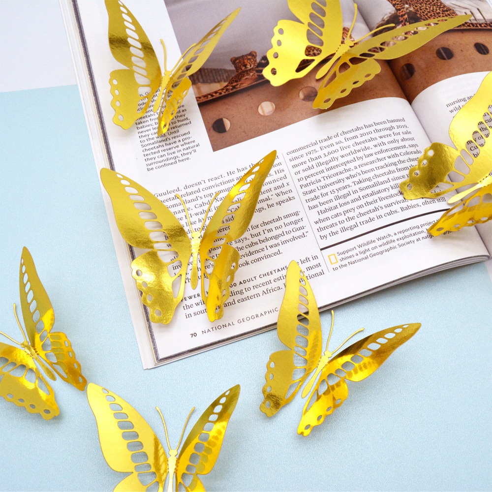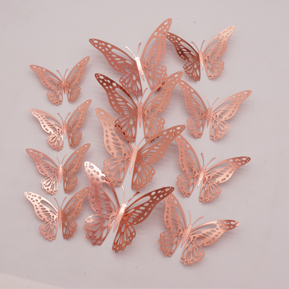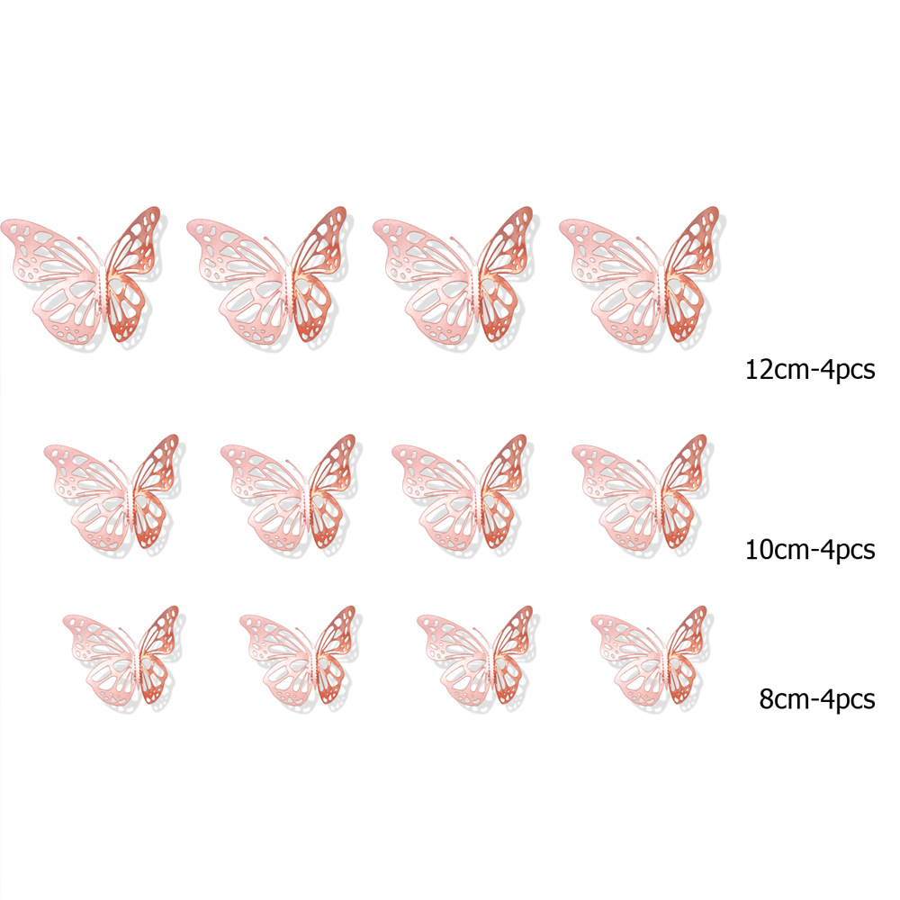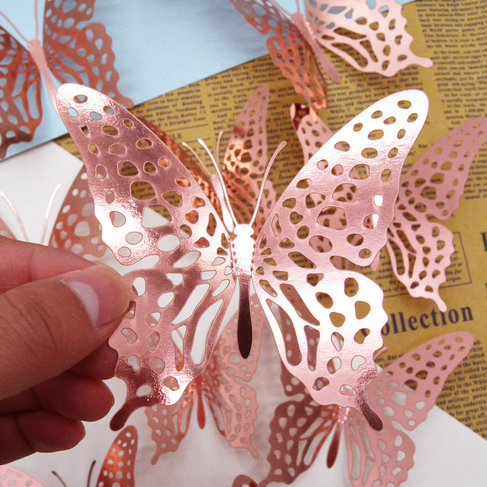 12 pcs 3d metal texture three-dimensional hollow butterfly wall stickers cross-border amazon wedding festival home decoration