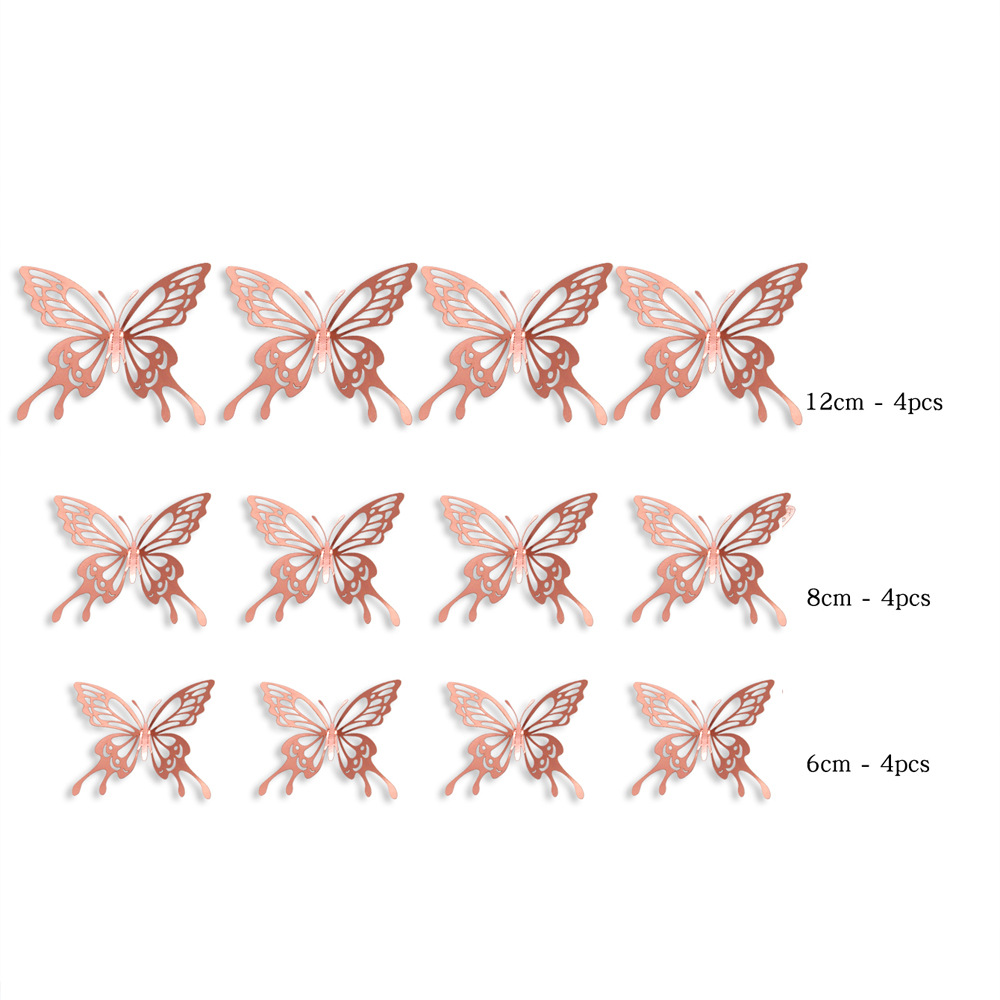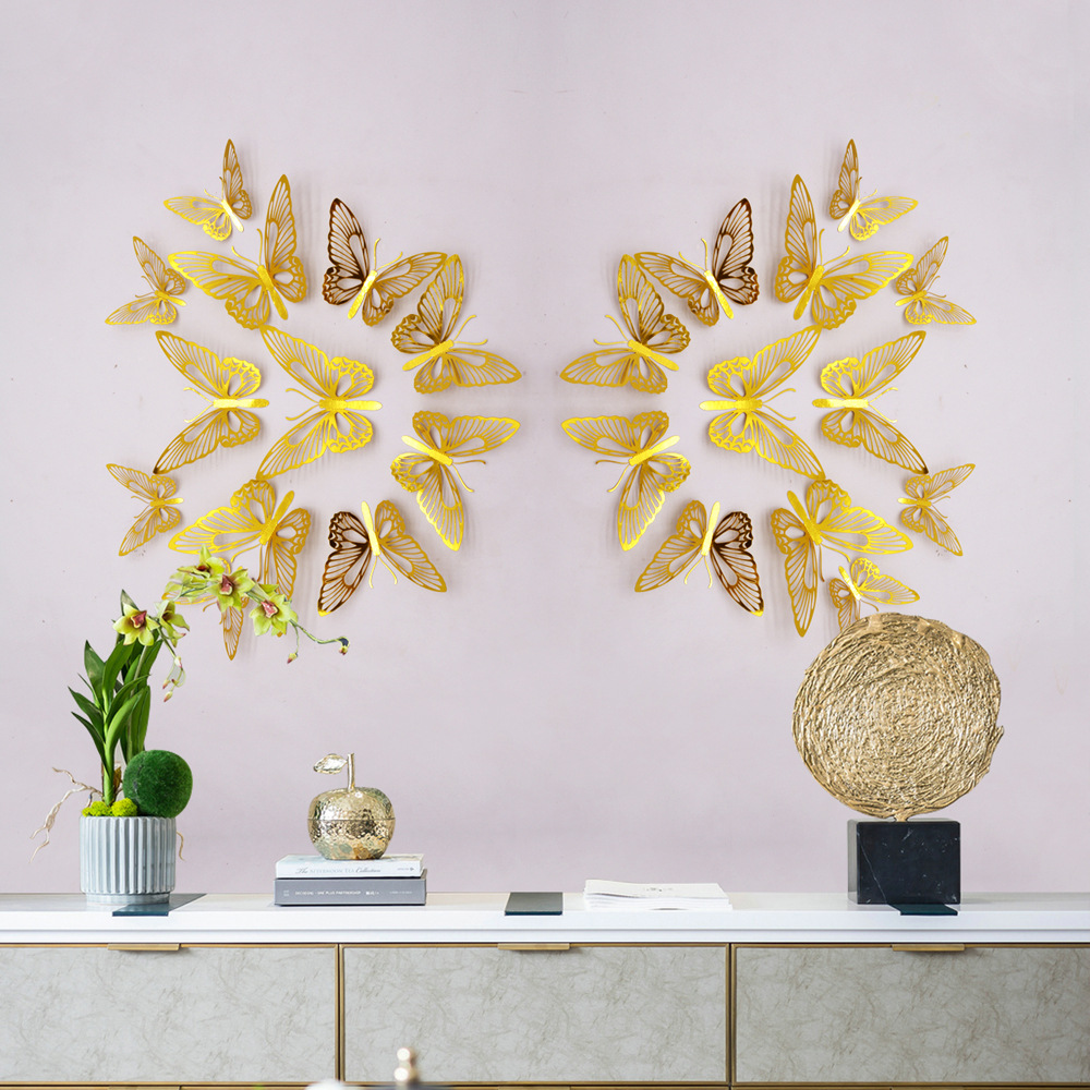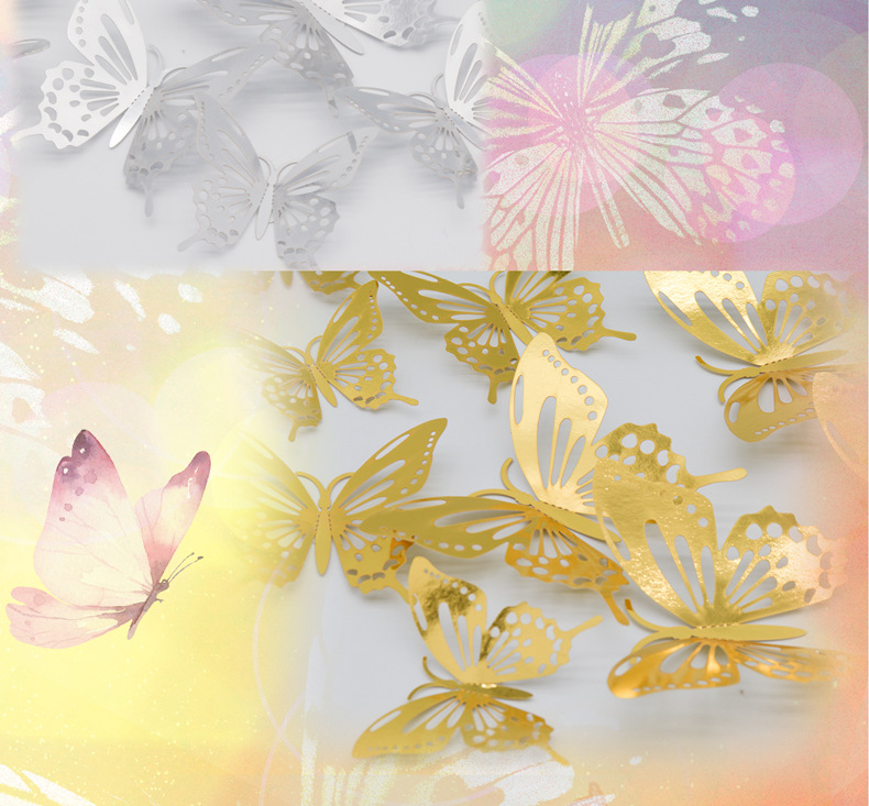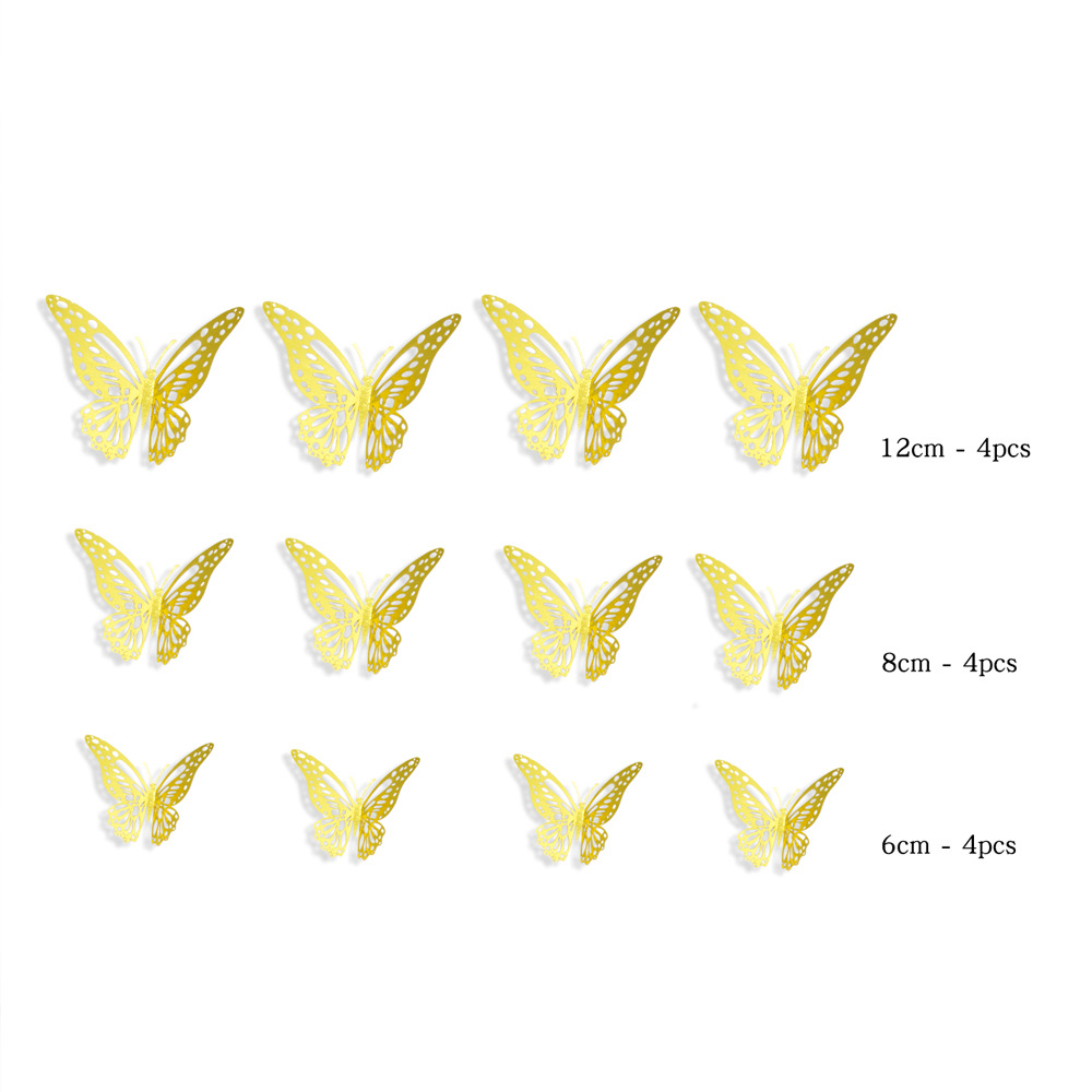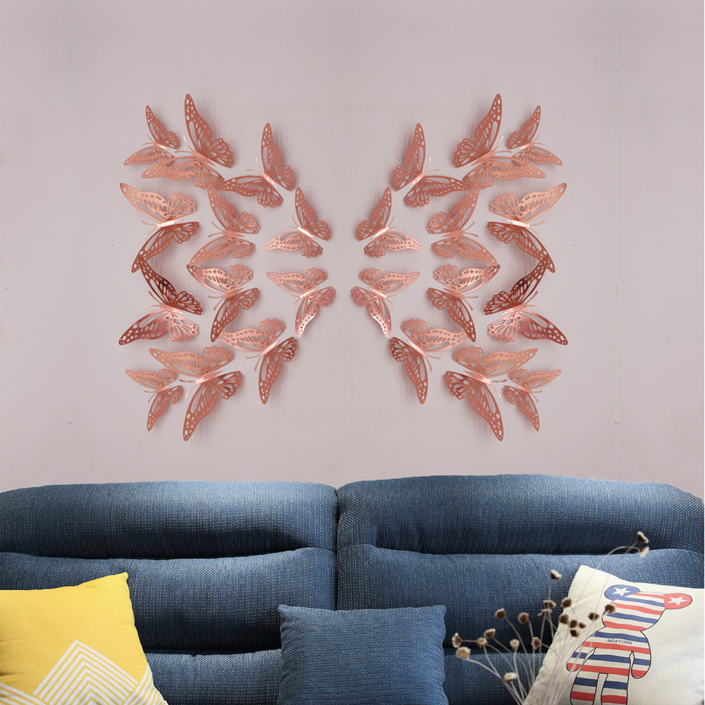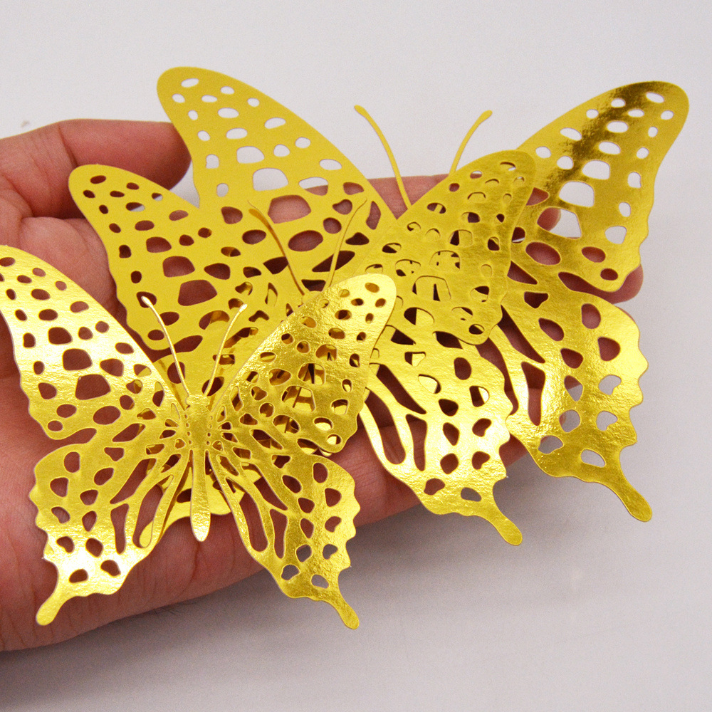 12 pcs 3d metal texture three-dimensional hollow butterfly wall stickers cross-border amazon wedding festival home decoration