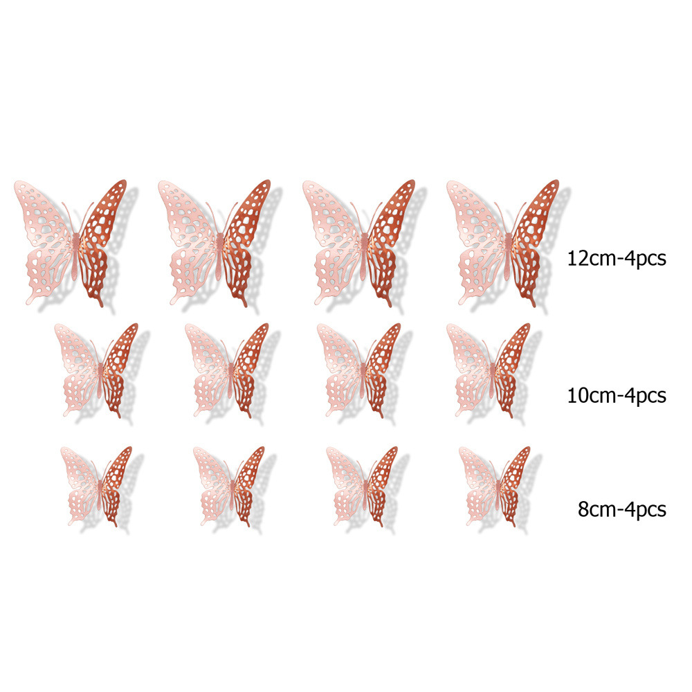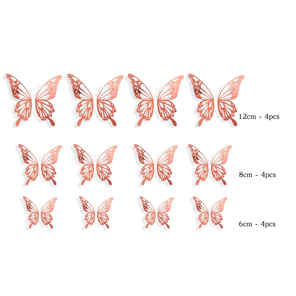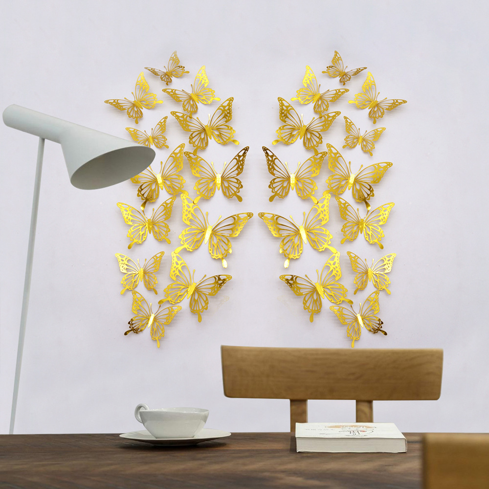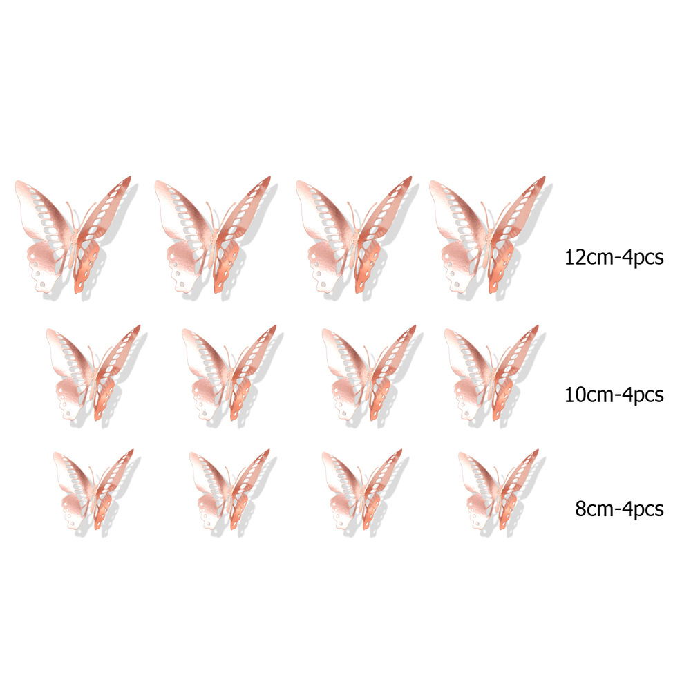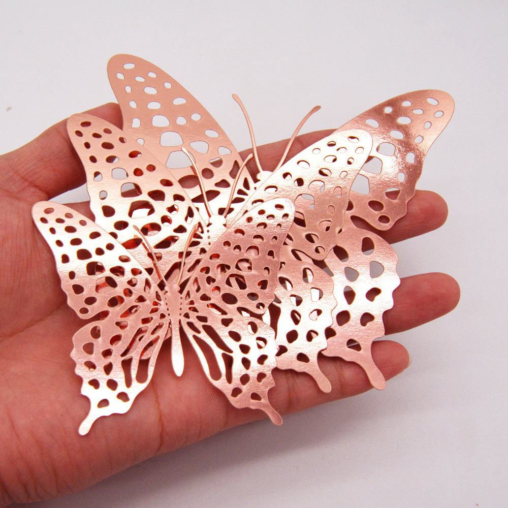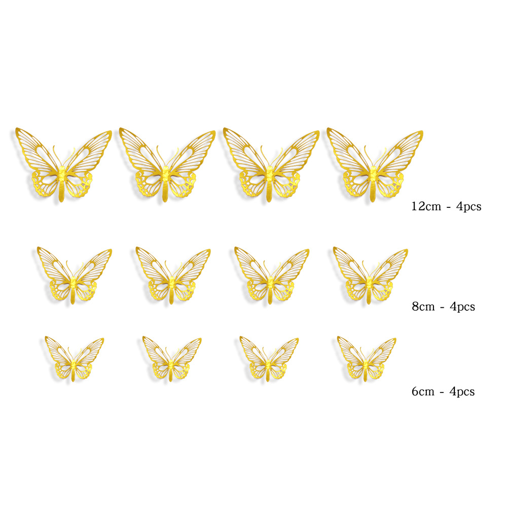 12 pcs 3d metal texture three-dimensional hollow butterfly wall stickers cross-border amazon wedding festival home decoration