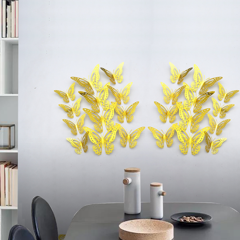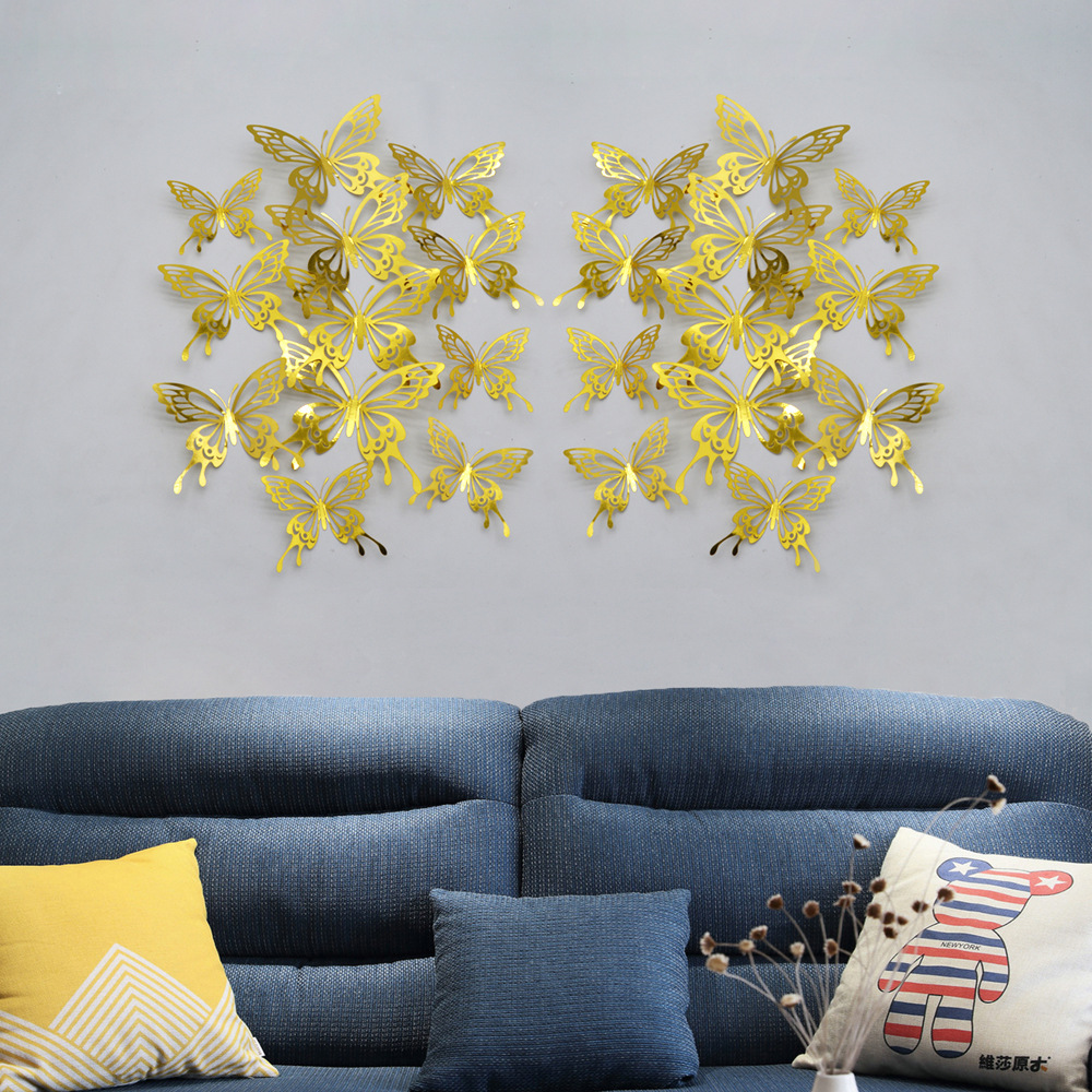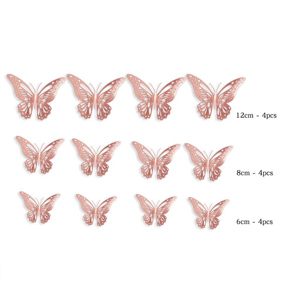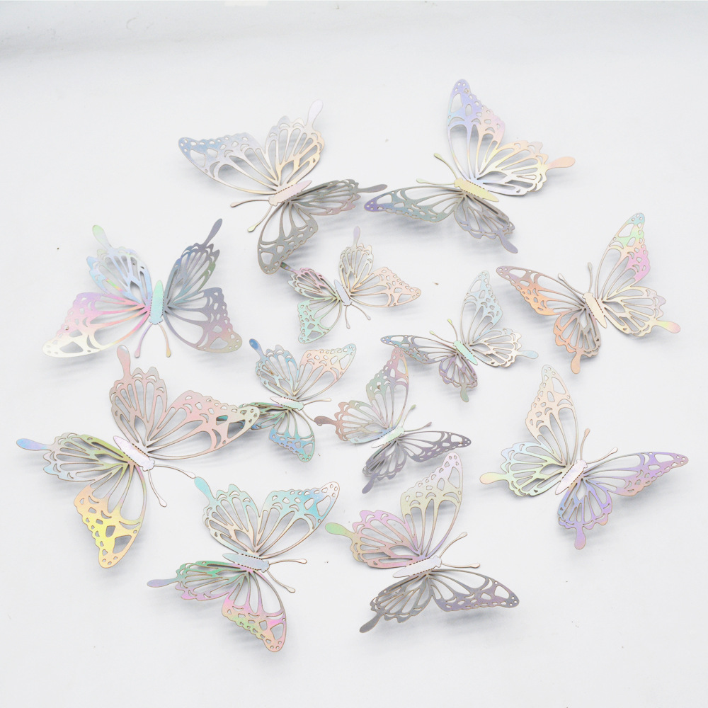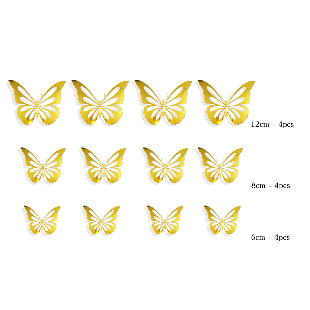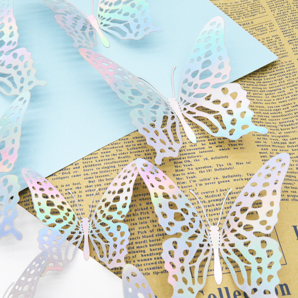12 pcs 3d metal texture three-dimensional hollow butterfly wall stickers cross-border amazon wedding festival home decoration