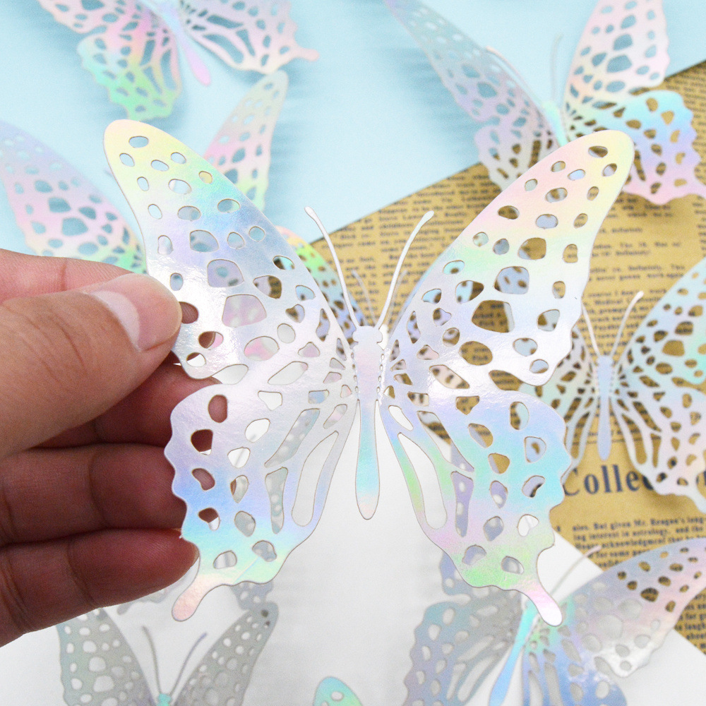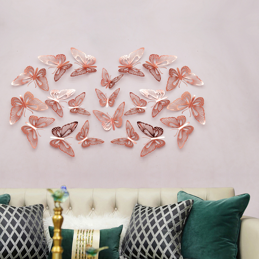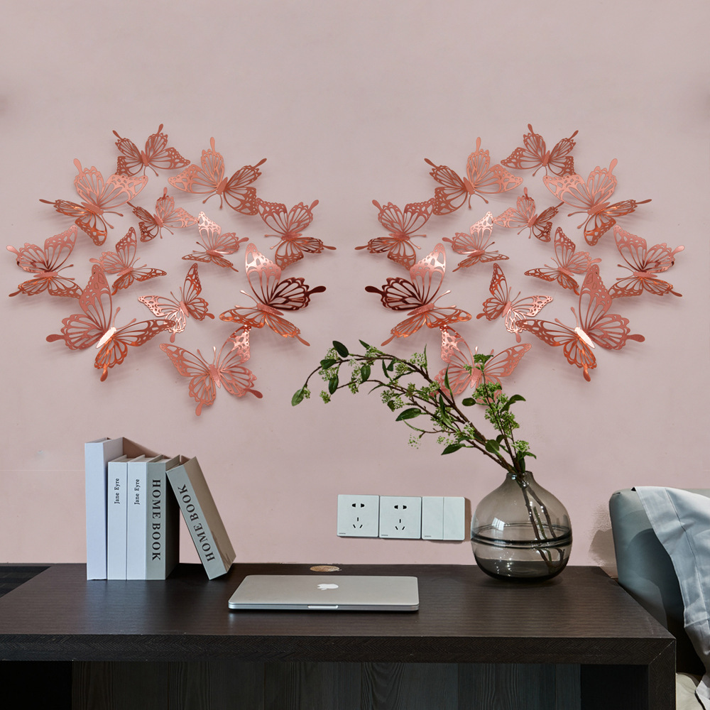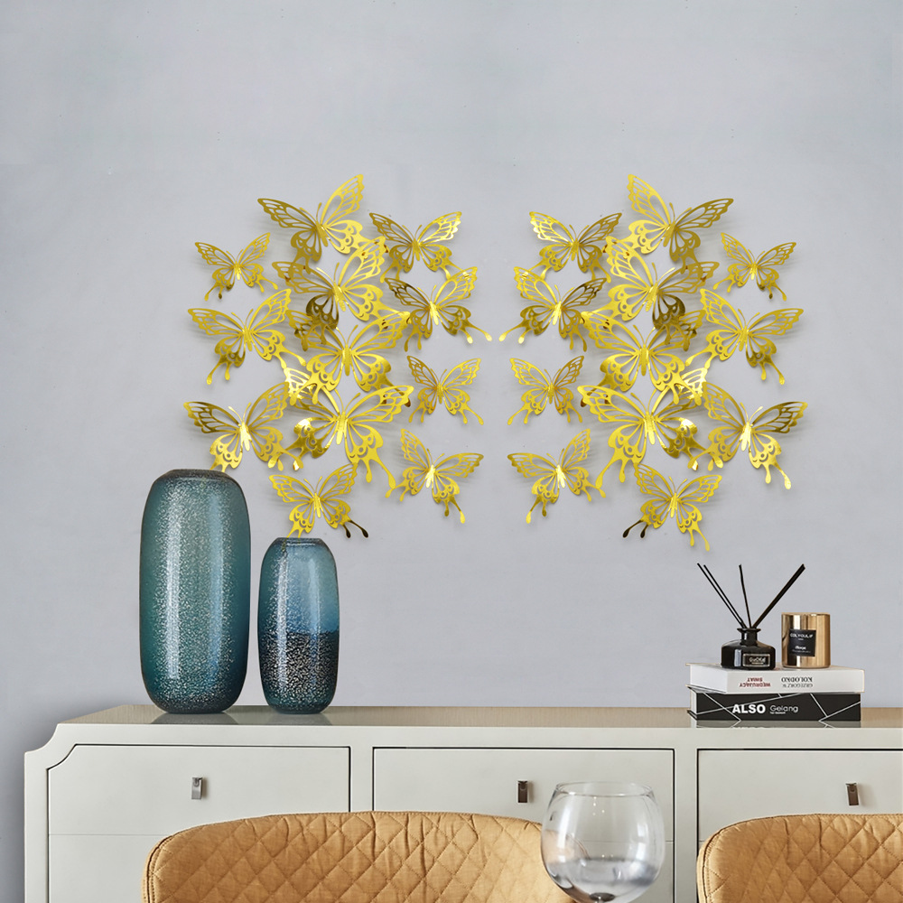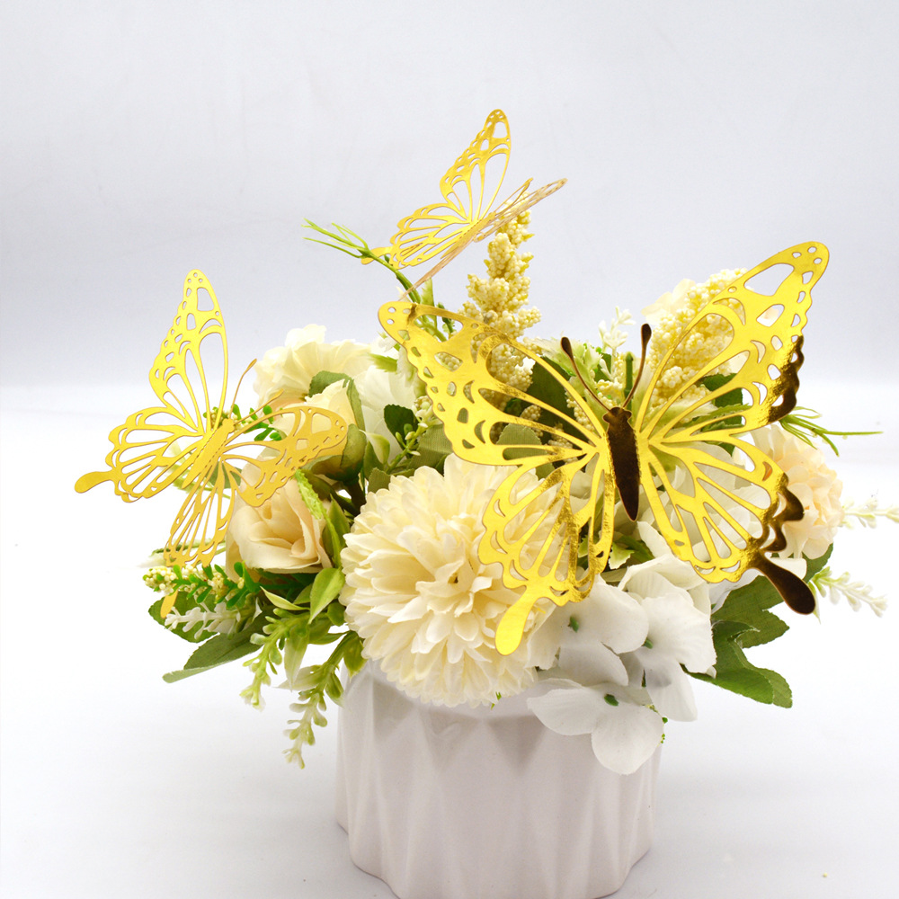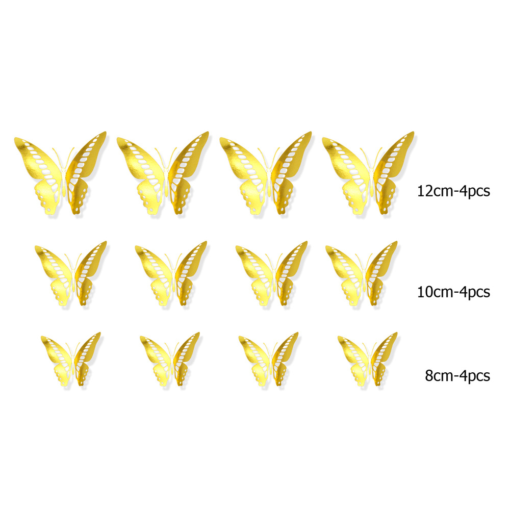 12 pcs 3d metal texture three-dimensional hollow butterfly wall stickers cross-border amazon wedding festival home decoration