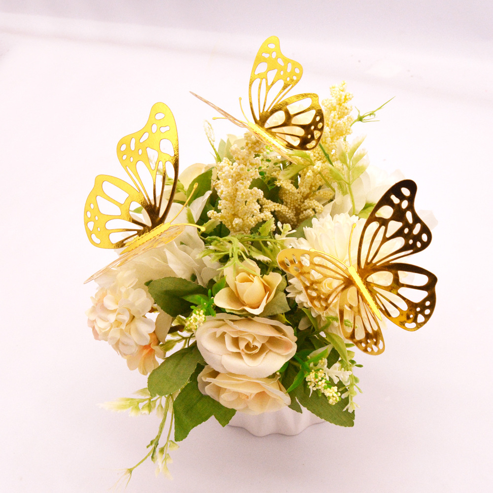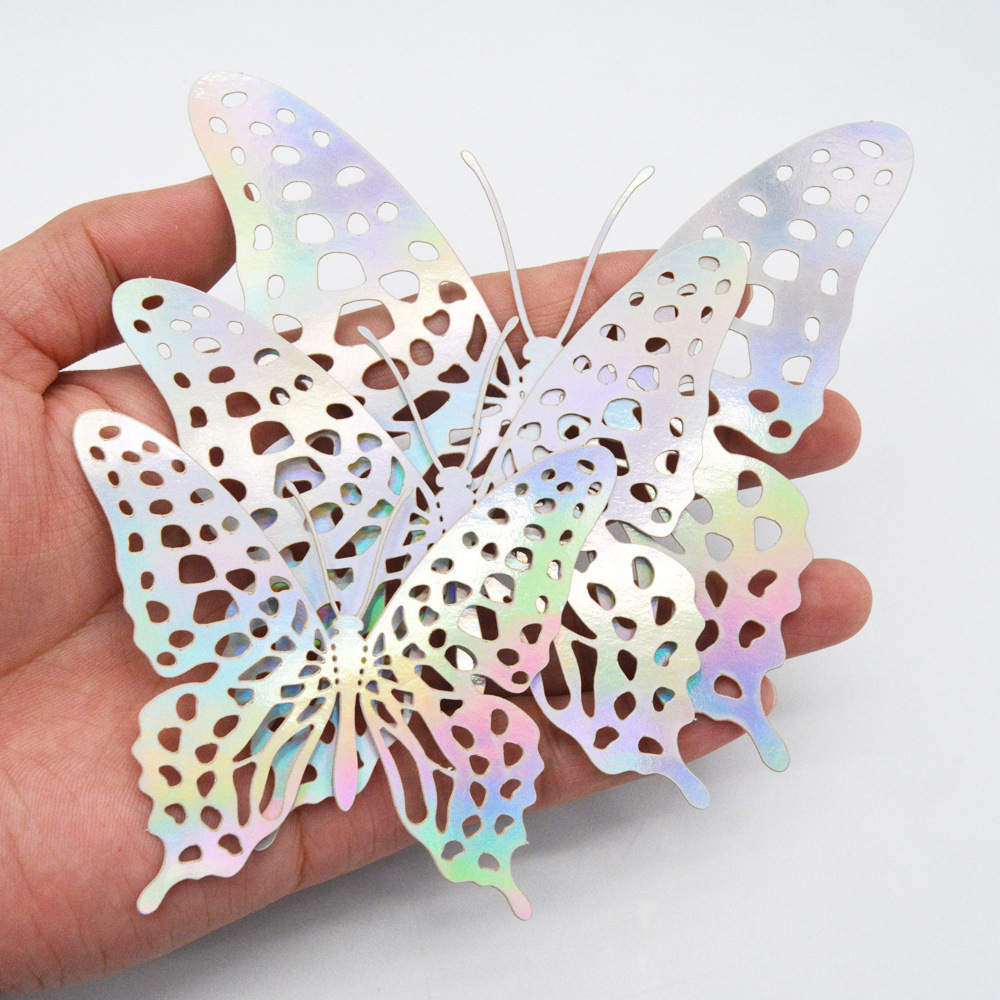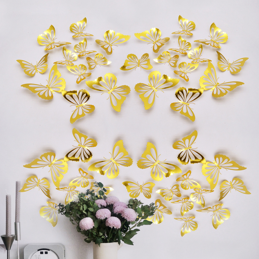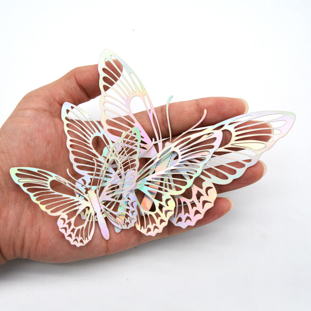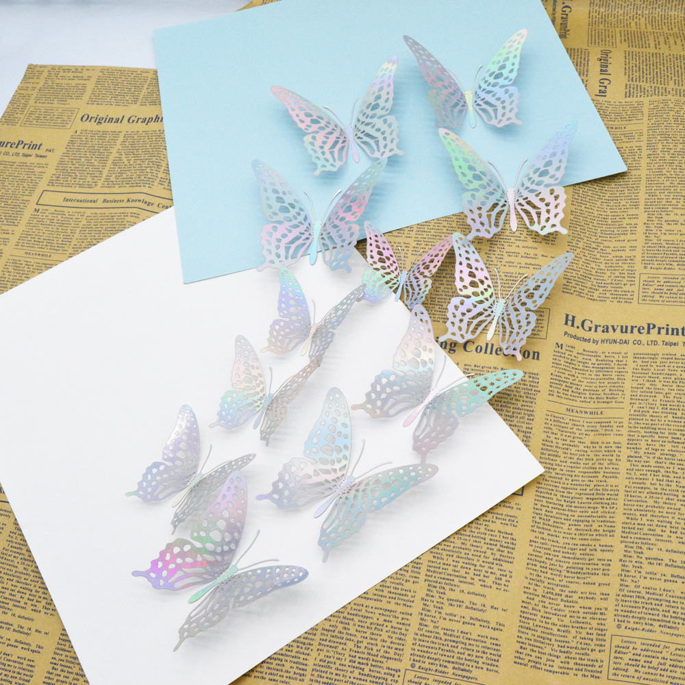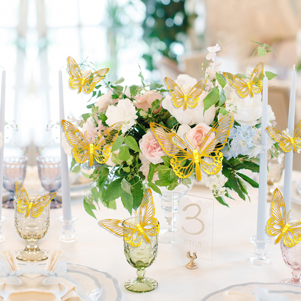 12 pcs 3d metal texture three-dimensional hollow butterfly wall stickers cross-border amazon wedding festival home decoration