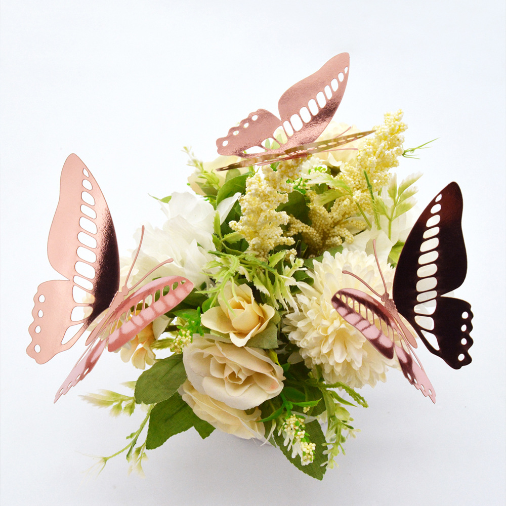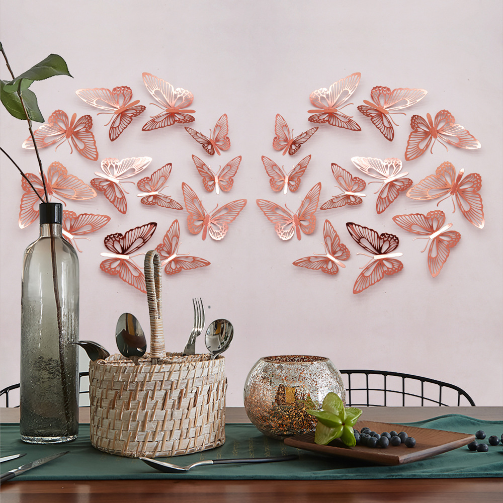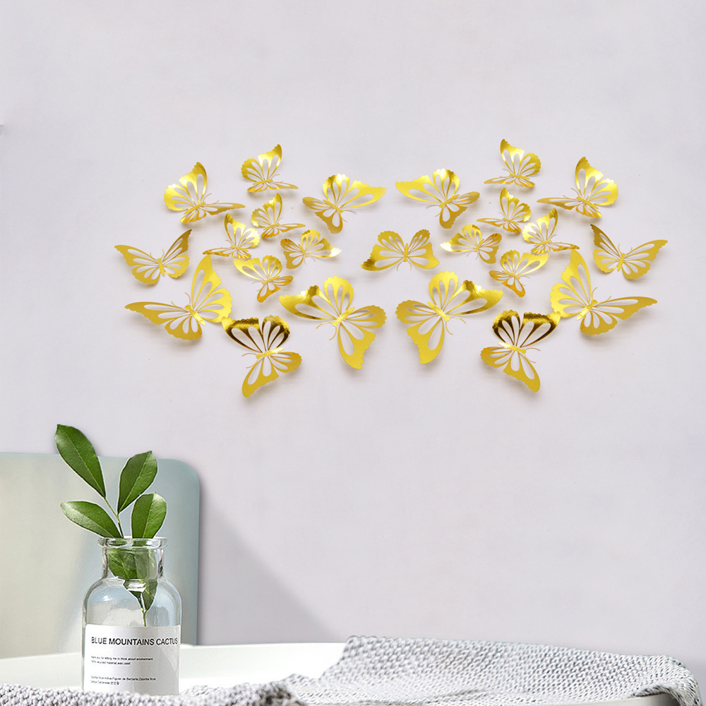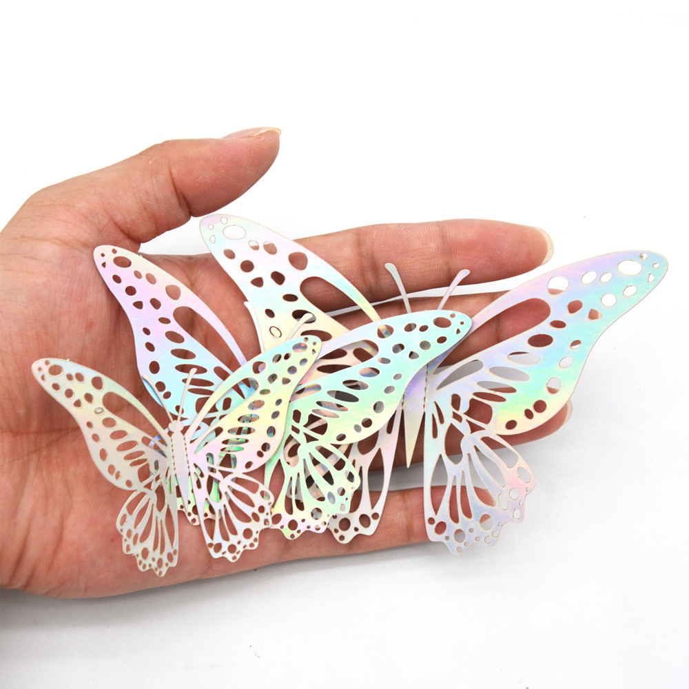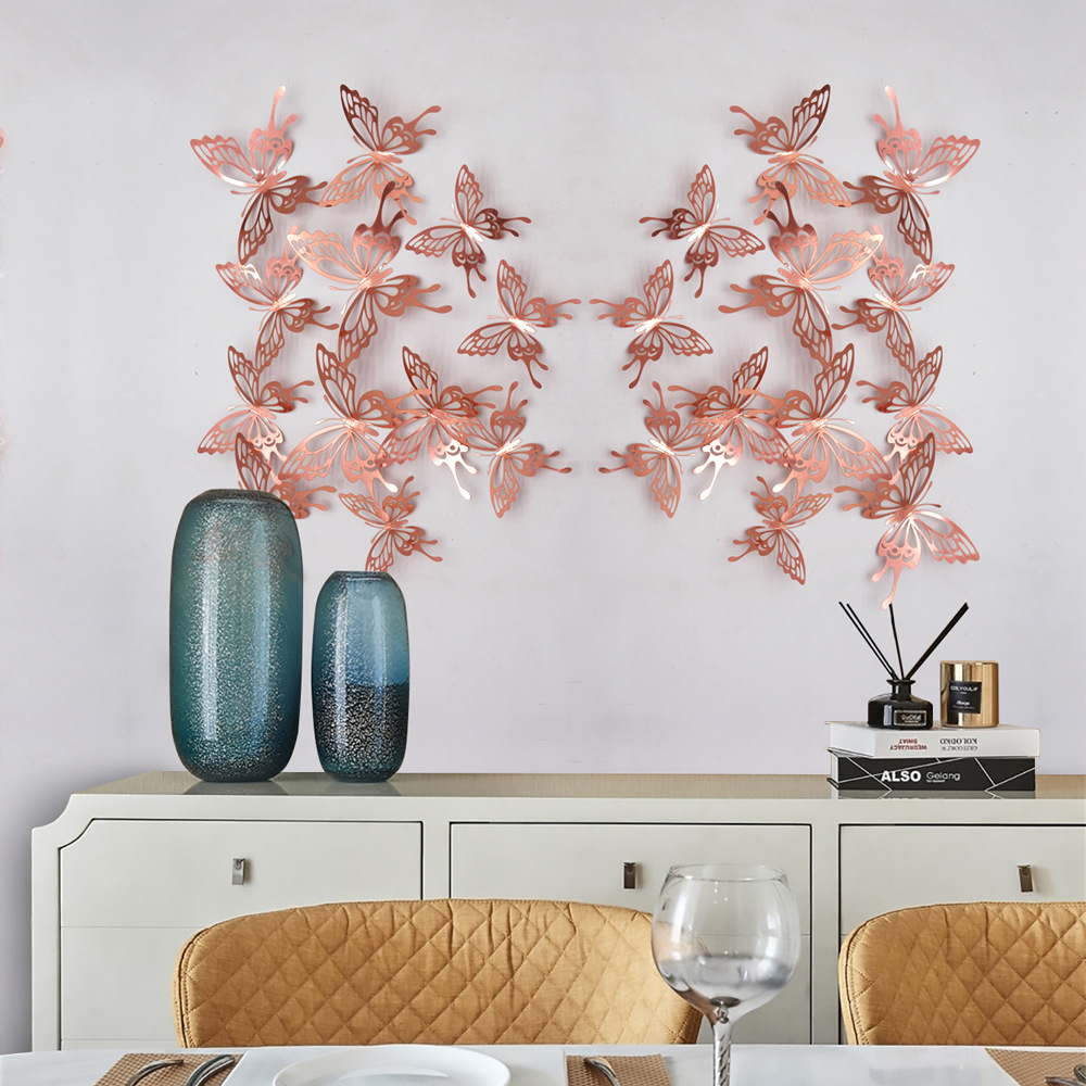 12 pcs 3d metal texture three-dimensional hollow butterfly wall stickers cross-border amazon wedding festival home decoration