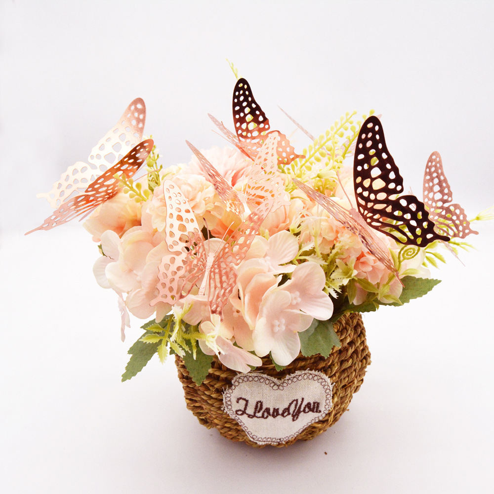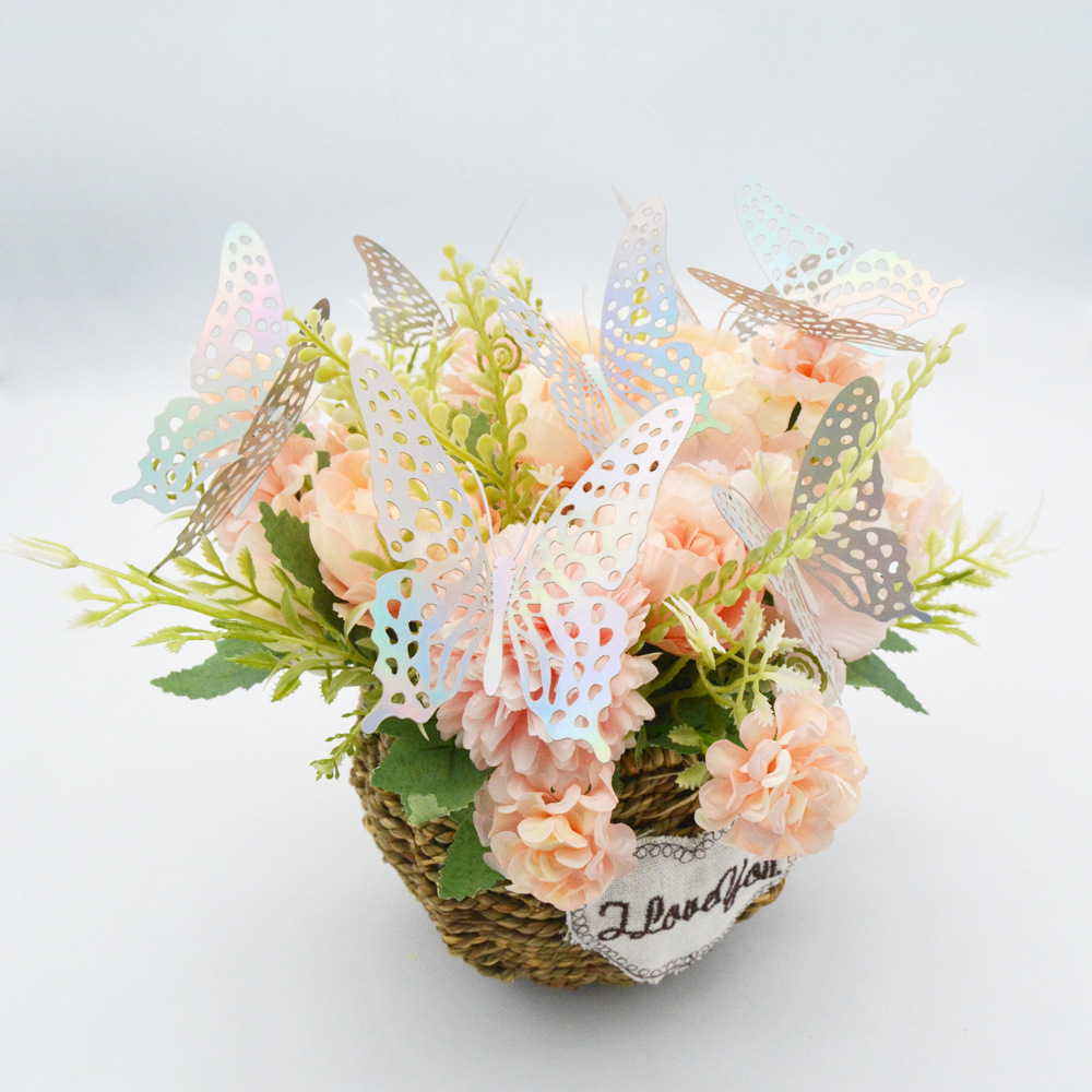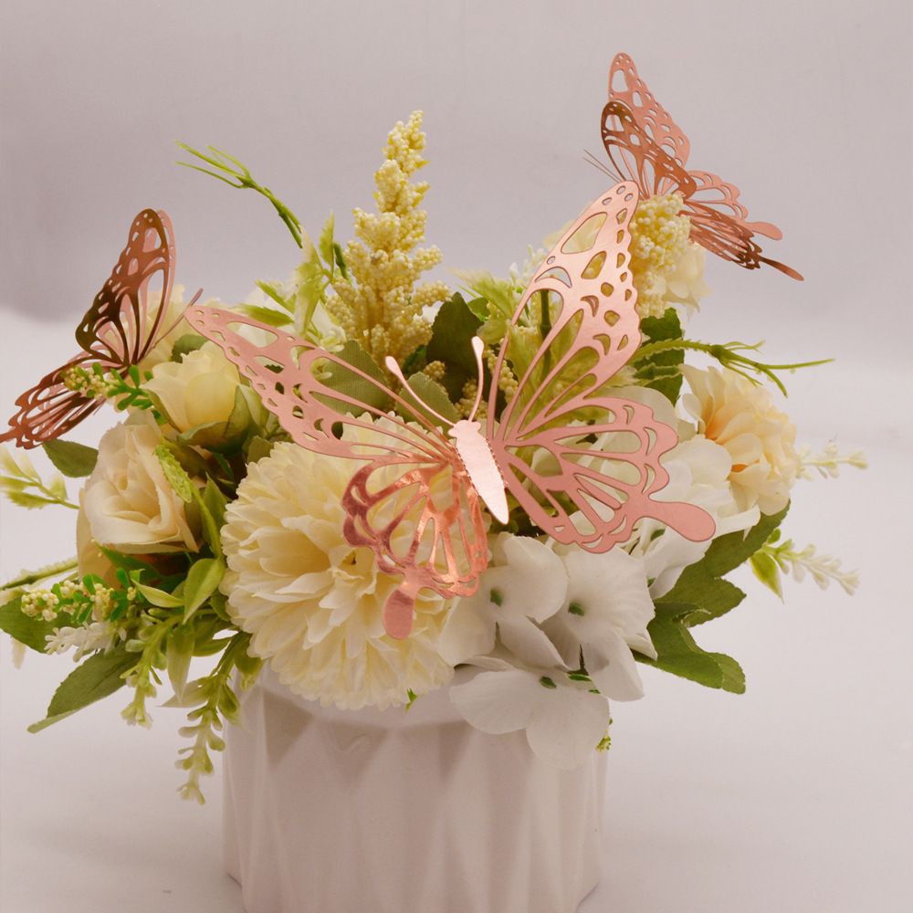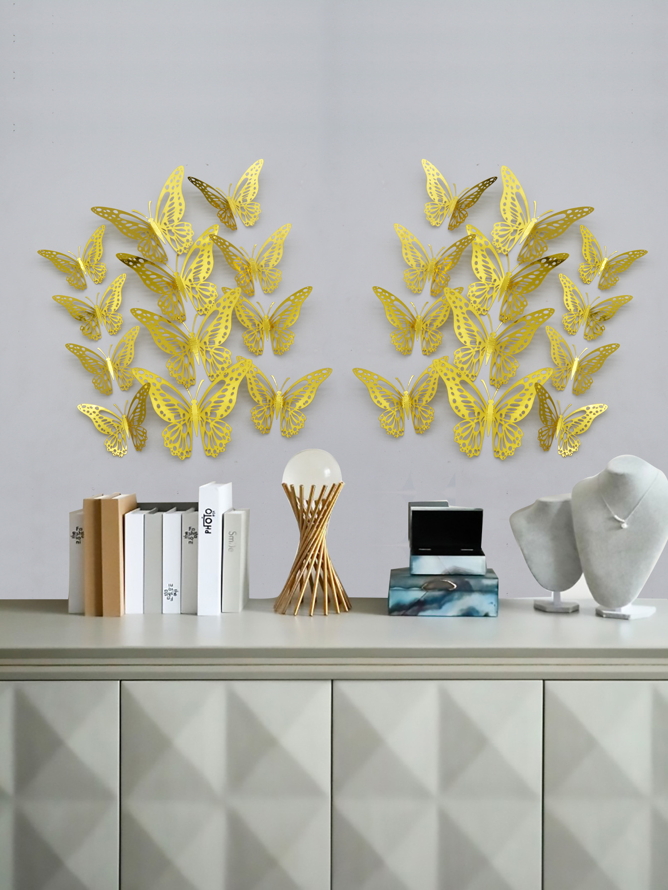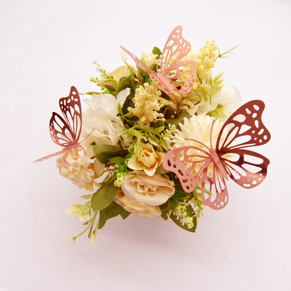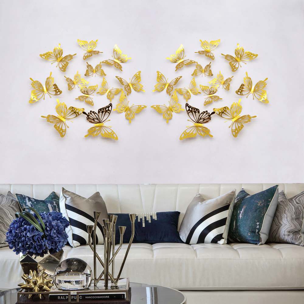 12 pcs 3d metal texture three-dimensional hollow butterfly wall stickers cross-border amazon wedding festival home decoration