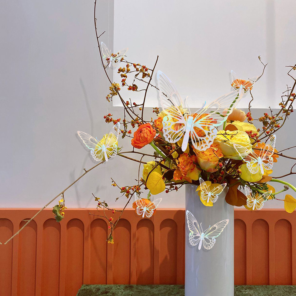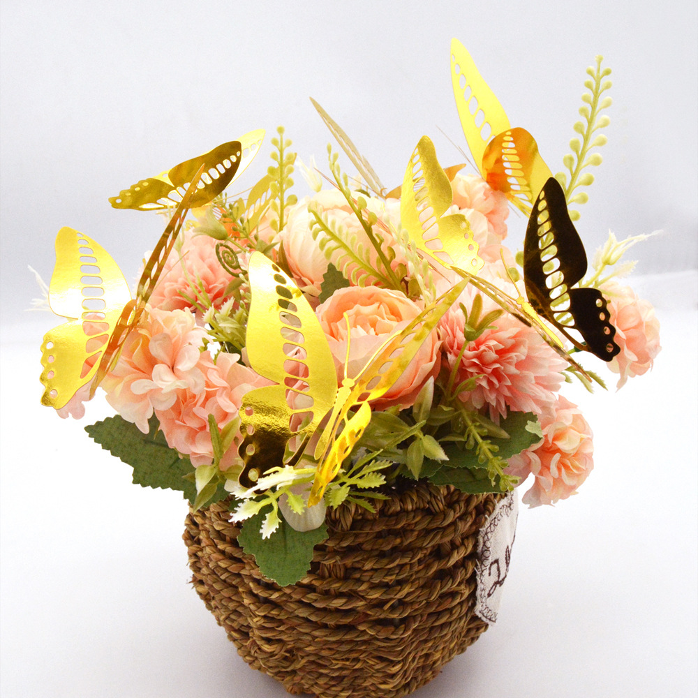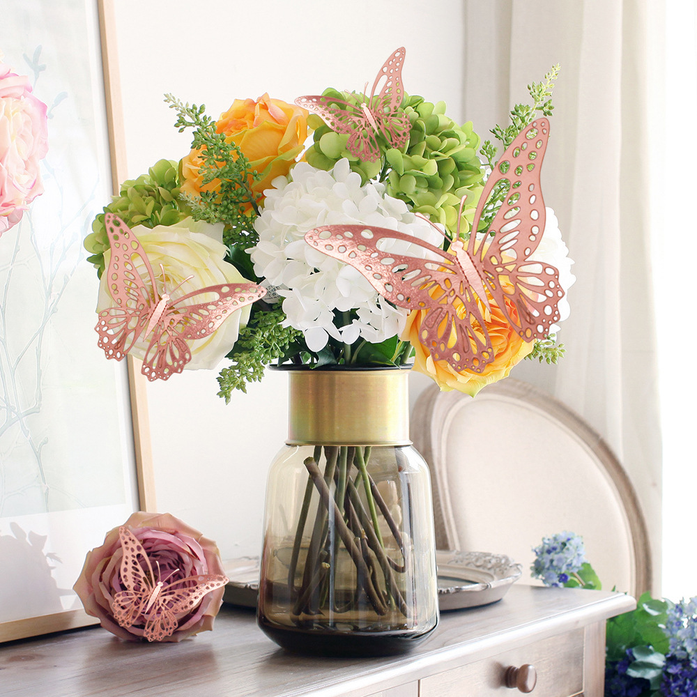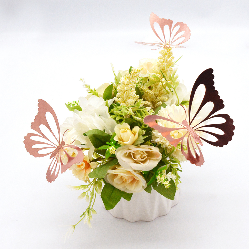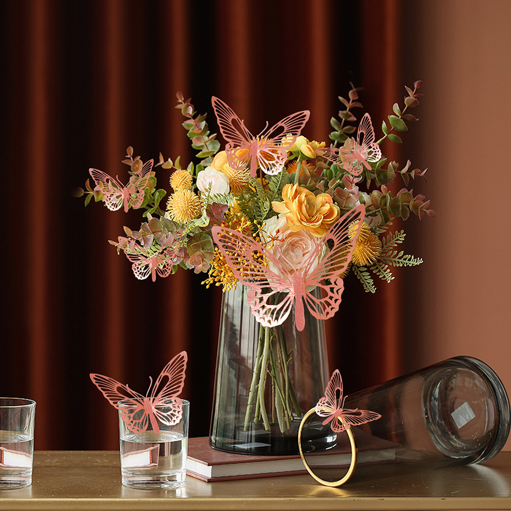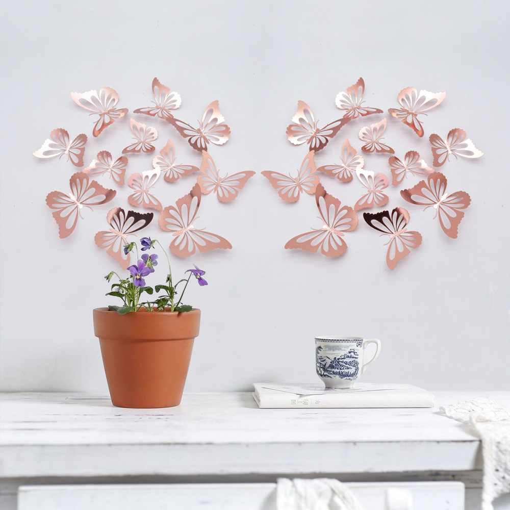 12 pcs 3d metal texture three-dimensional hollow butterfly wall stickers cross-border amazon wedding festival home decoration