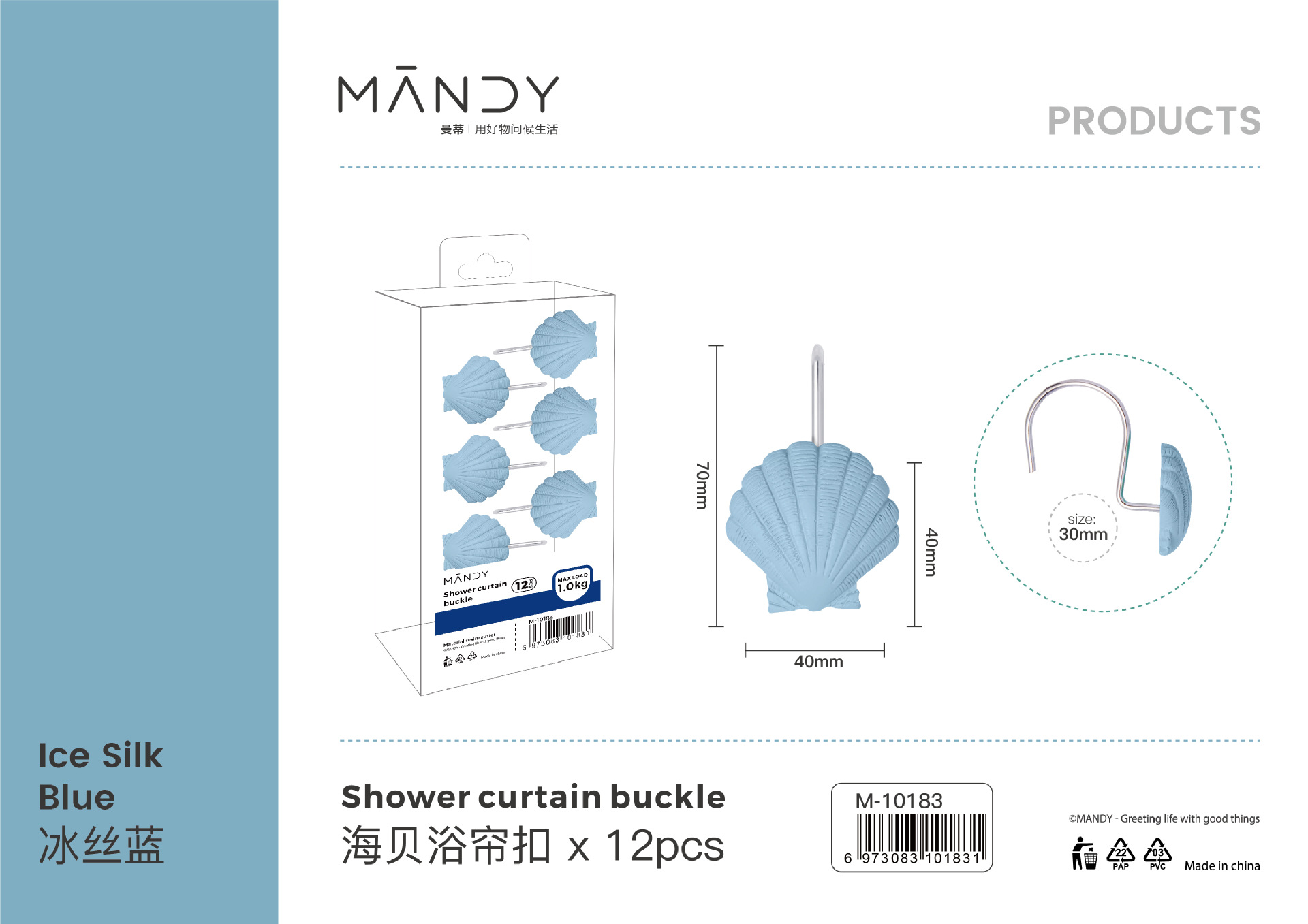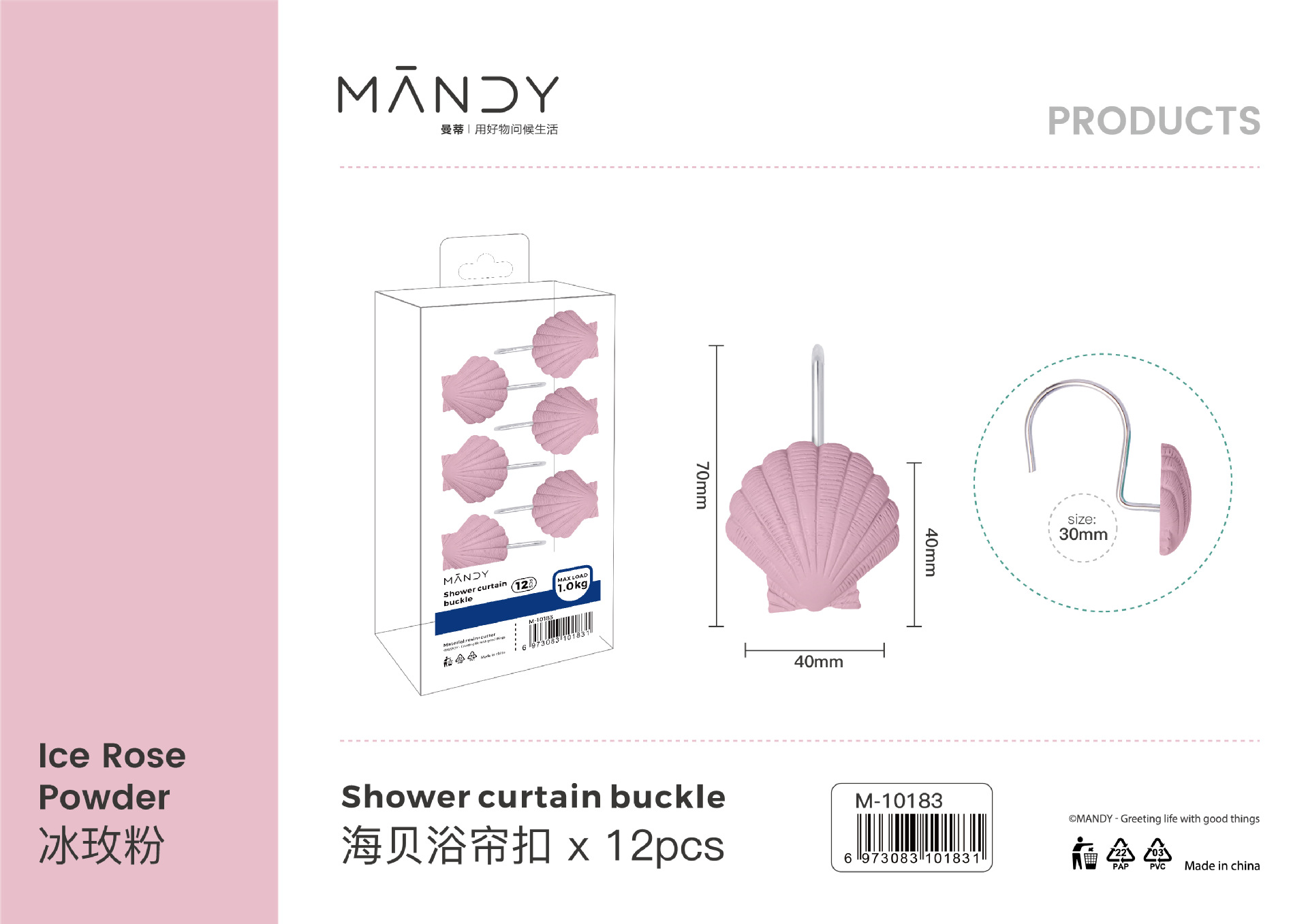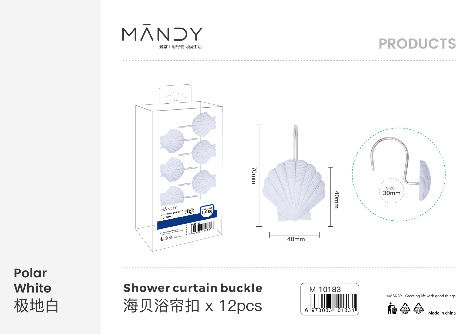 亚马逊跨境专供海贝壳浴帘钩树脂浴帘挂钩窗帘环浴室配件金属粘钩