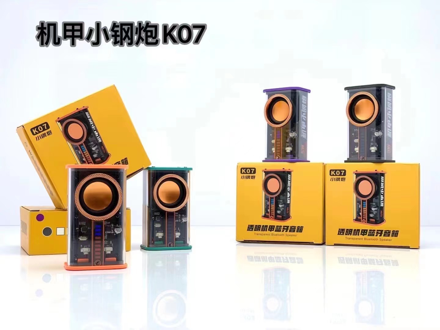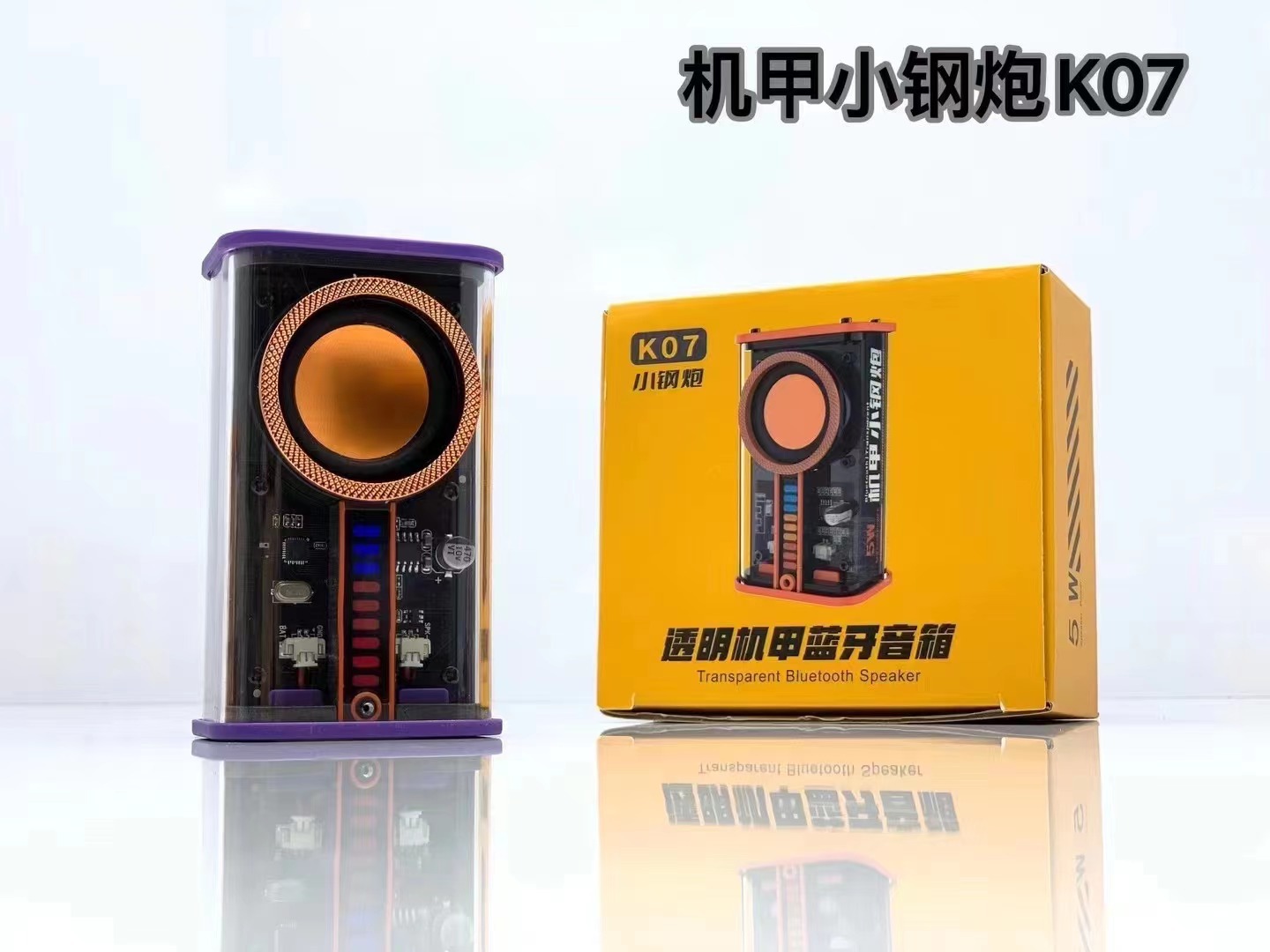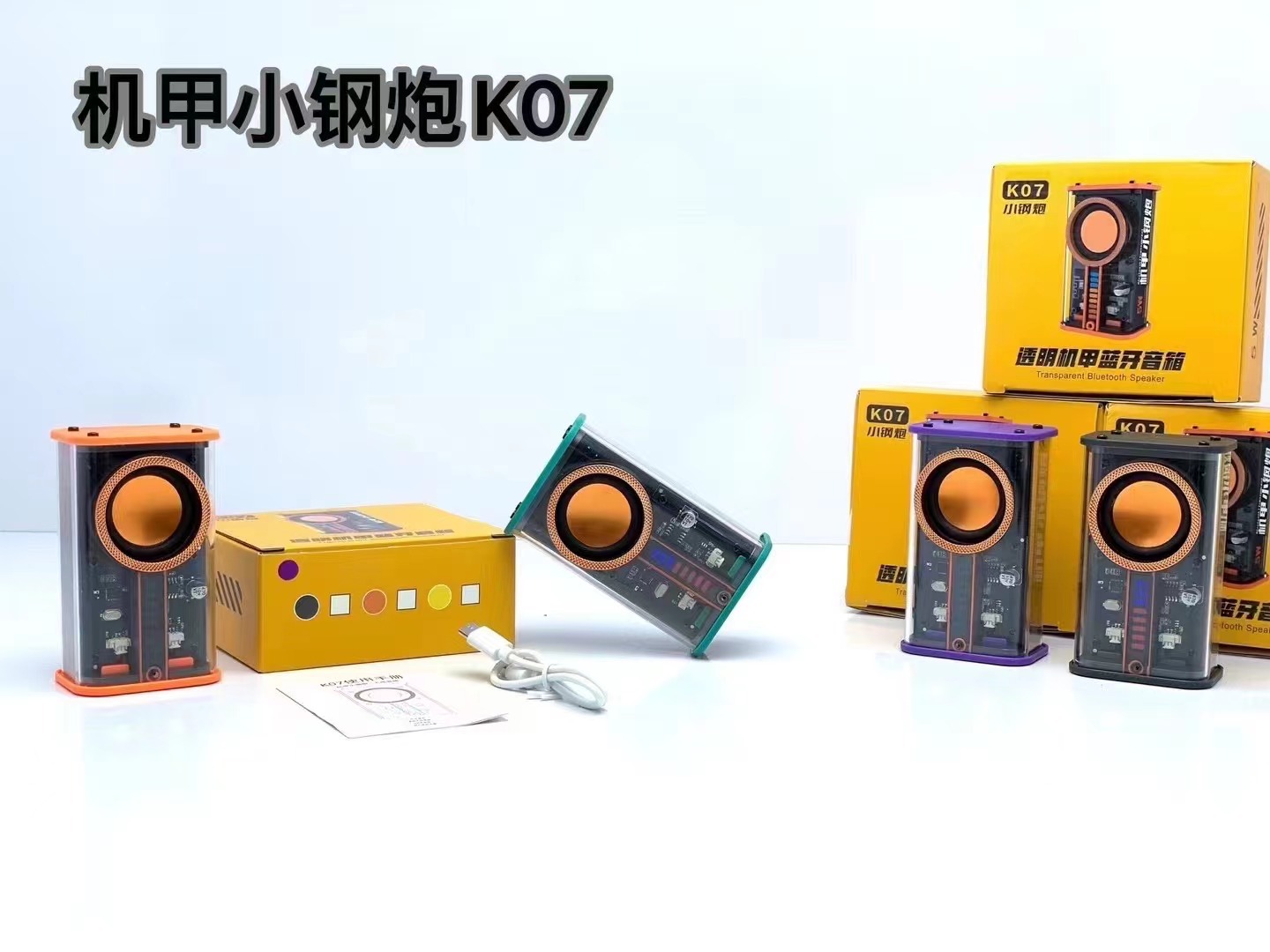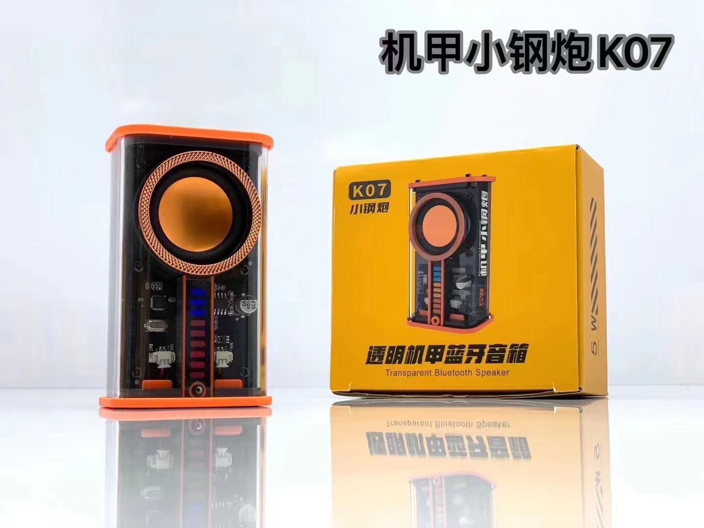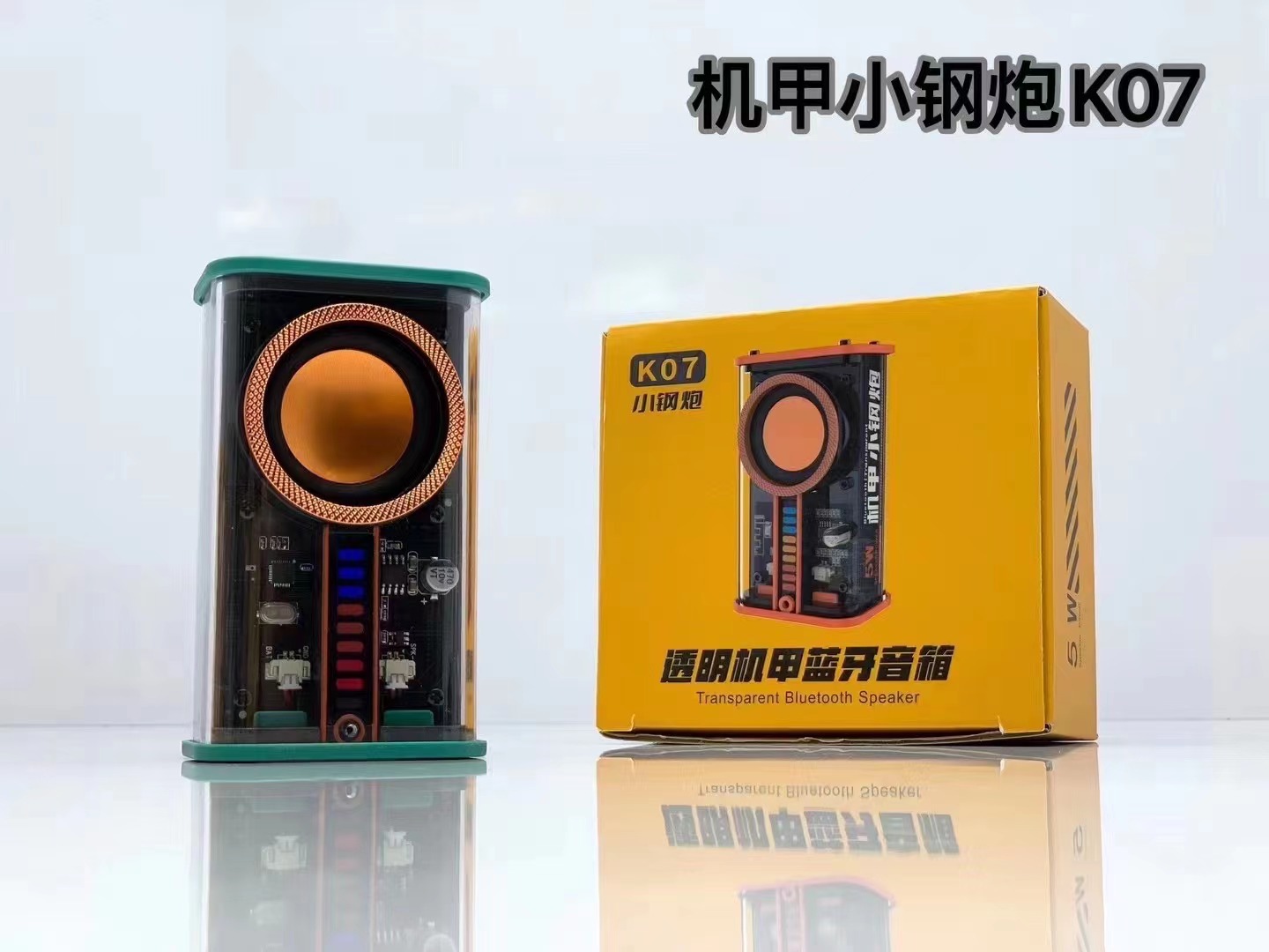跨境新款透明机甲小钢炮K07声光律动低音炮TWS串联蓝牙5.0重低音