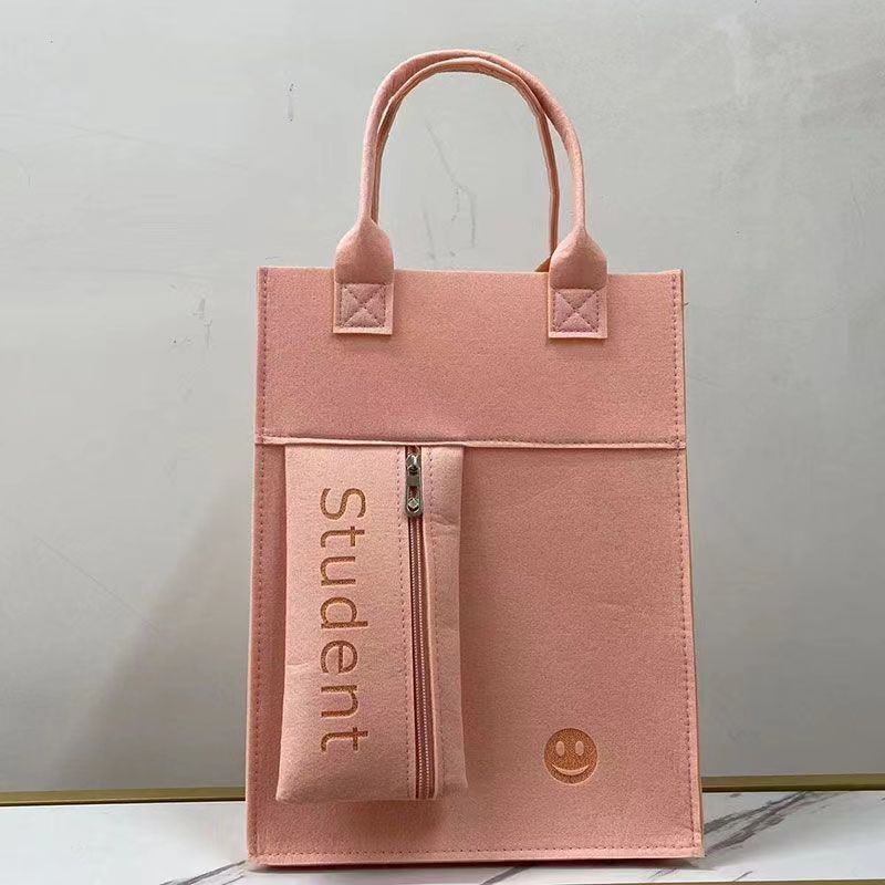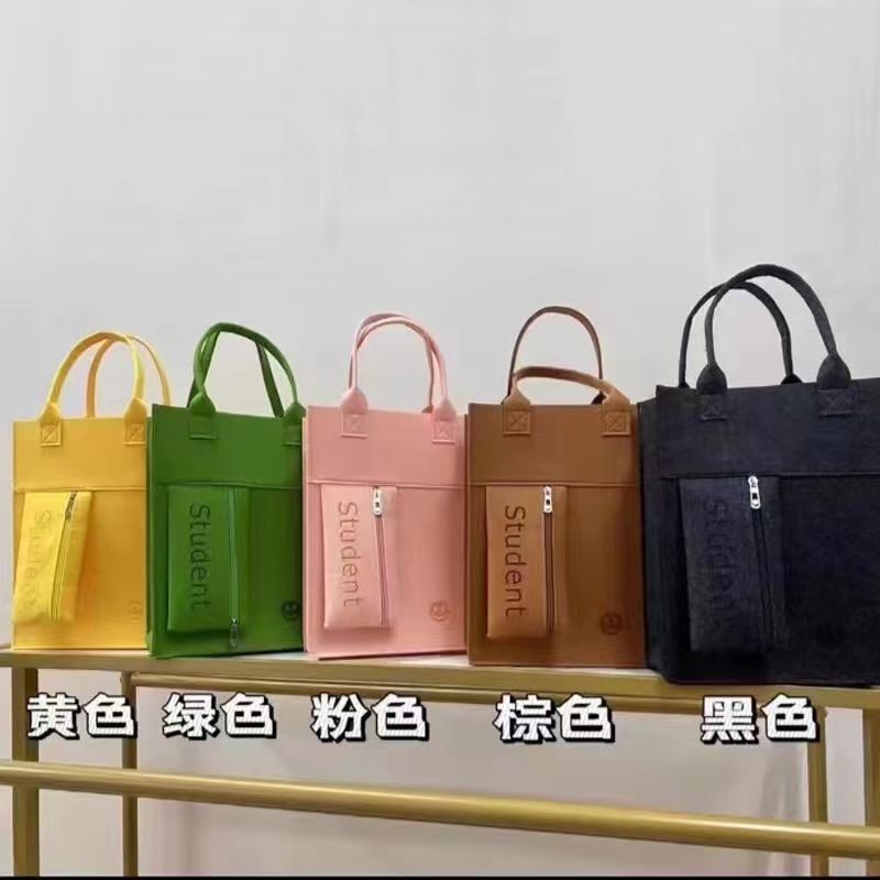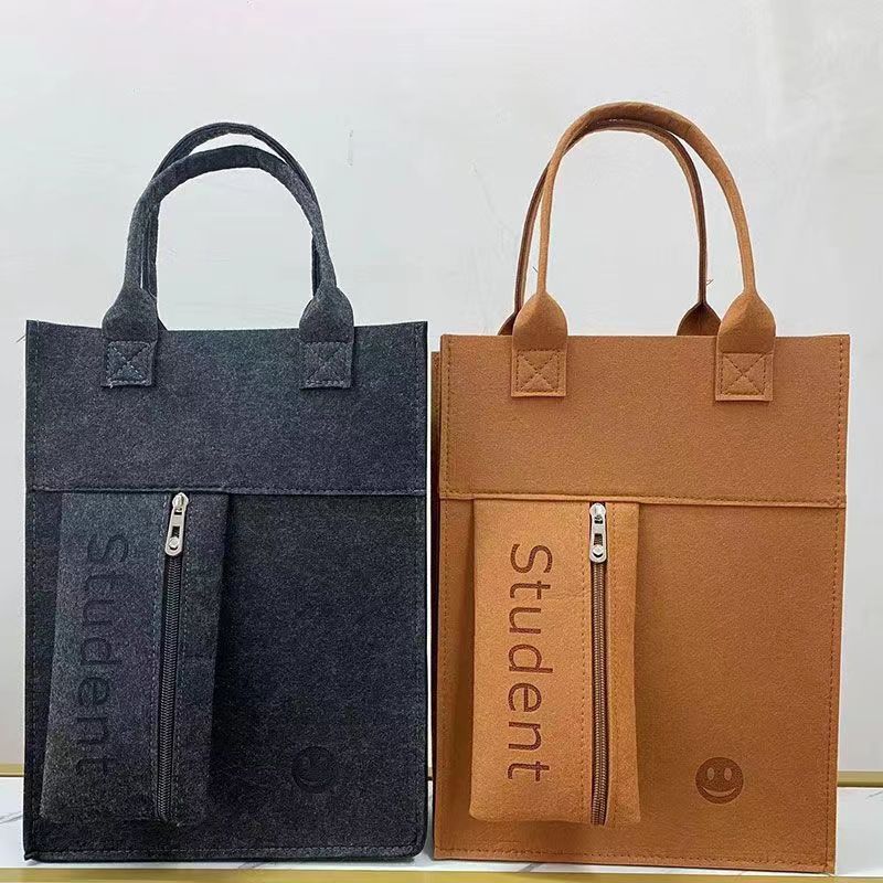 新款毛毡学生补课包拉链笔袋手提袋小学生补习袋网红时尚加厚LOGO