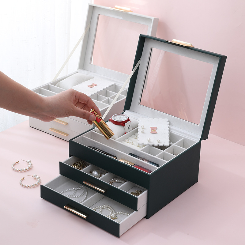2023新款珠宝首饰盒收纳大容量手镯戒指项链耳环耳饰品收纳盒家用