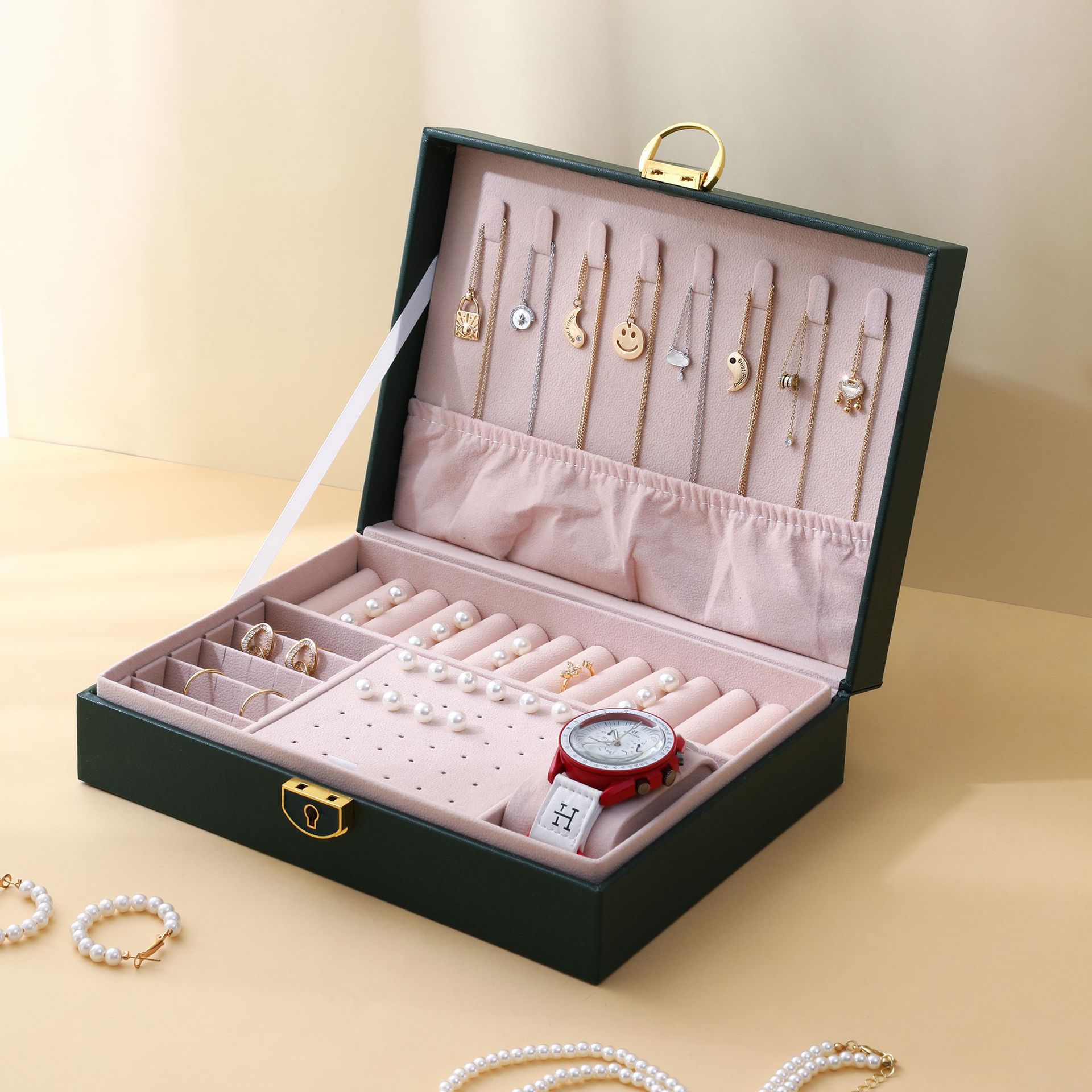 新款网红首饰盒收纳穿戴甲戒指手链项链耳环耳钉耳饰品收纳盒批发