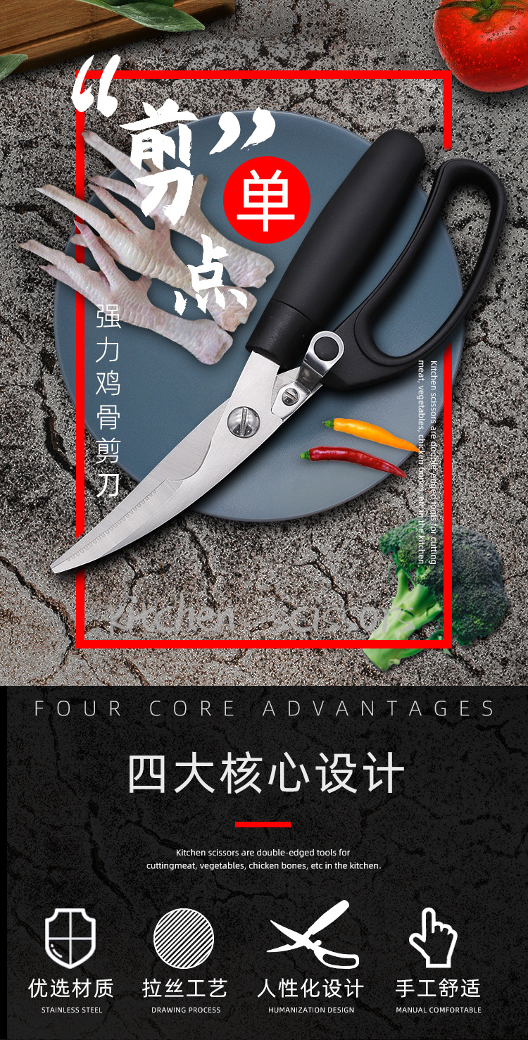 工厂批发鸡骨剪 不锈钢食物剪 创意厨房料理剪刀