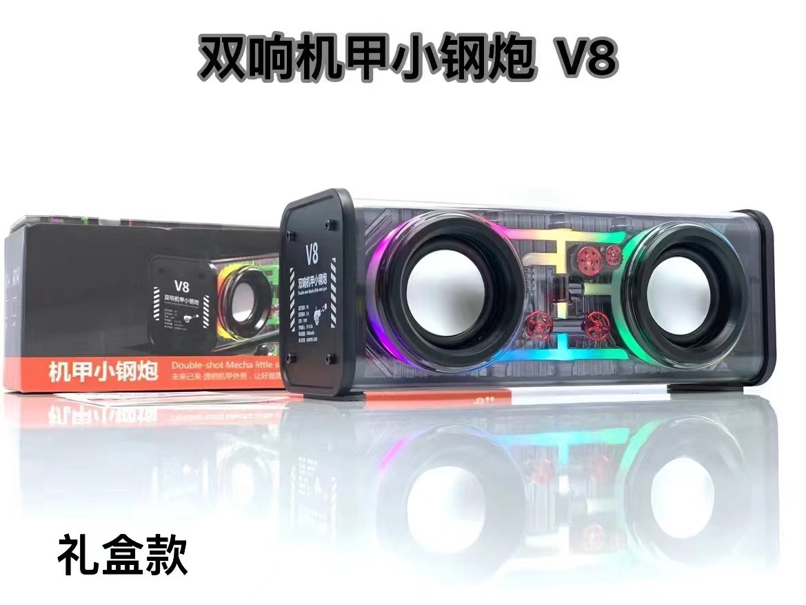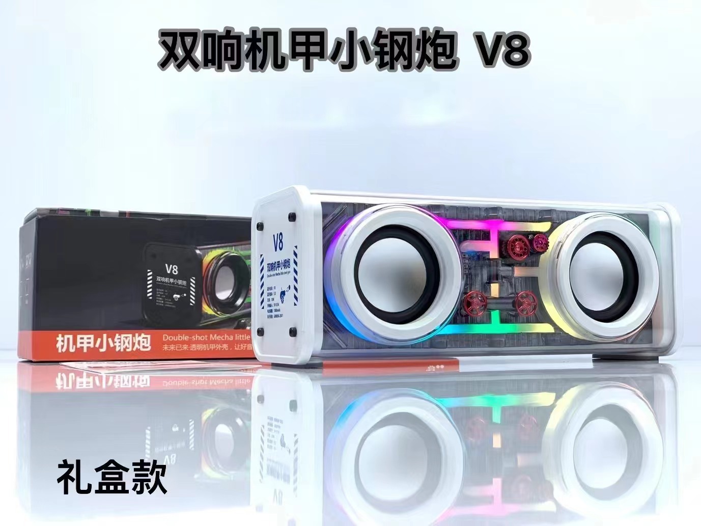 新款V8机甲风迷你小钢炮透明无线蓝牙音箱便携式户外手提低音炮