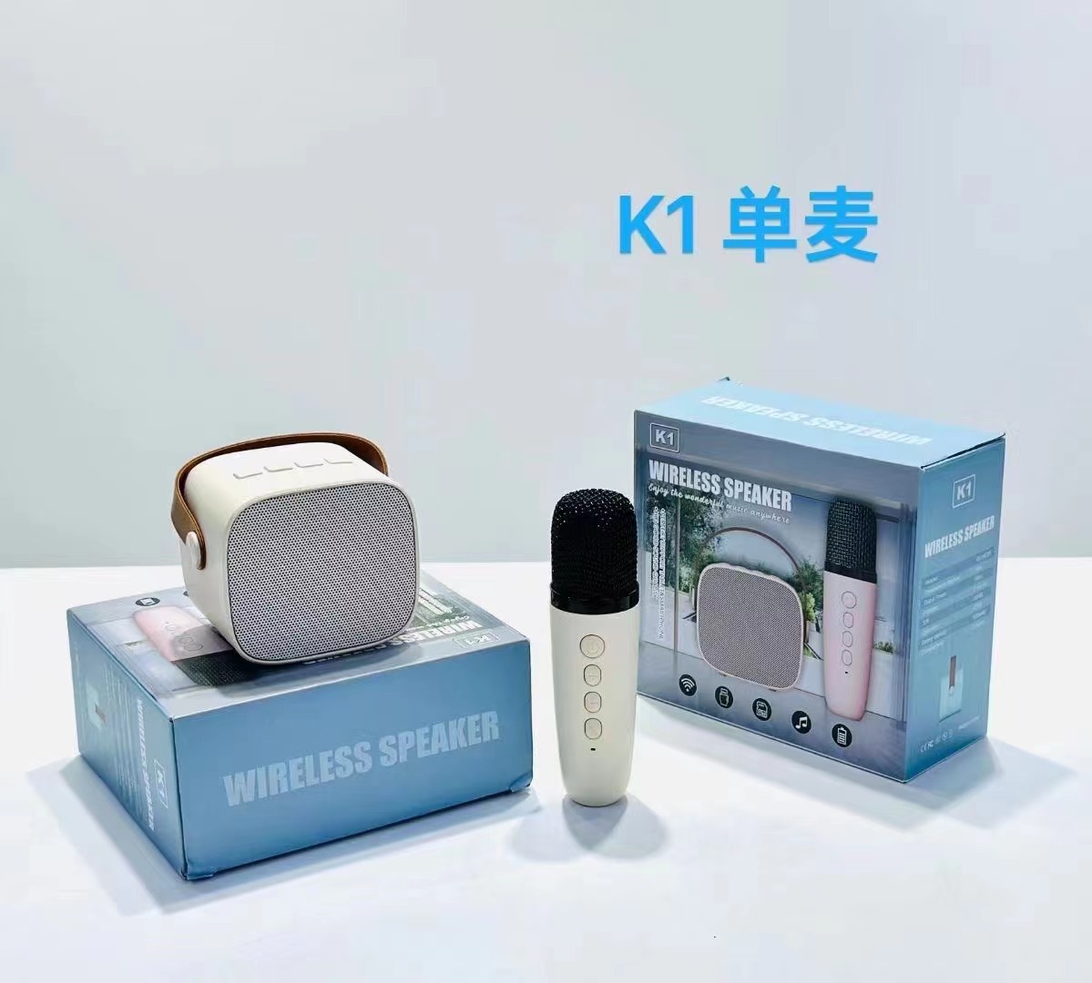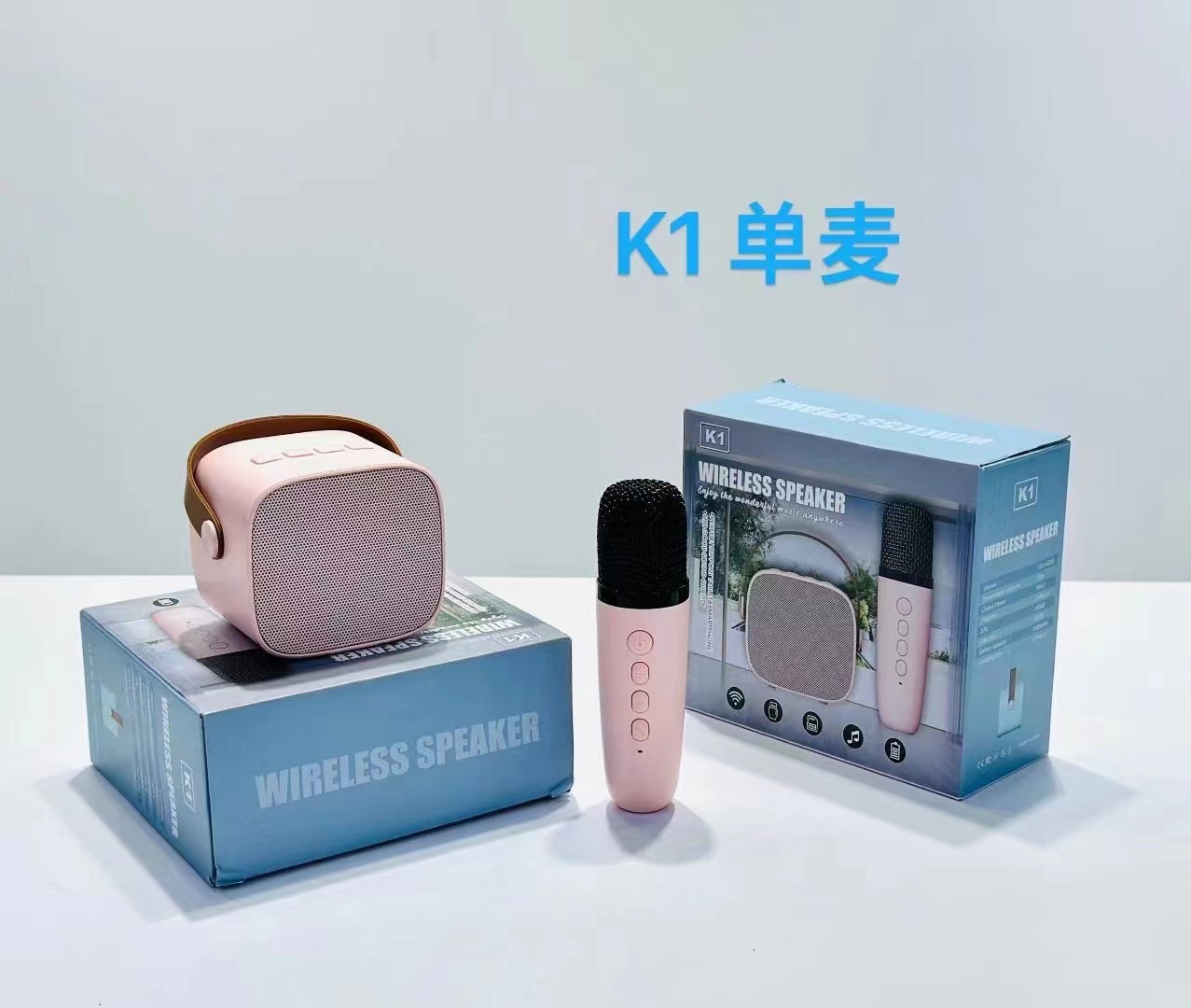 新款K1蓝牙音箱小型家用KTV便携手提单麦无线话筒多功能K歌音响